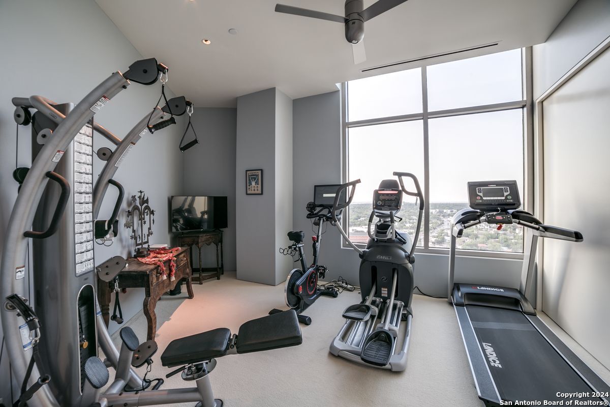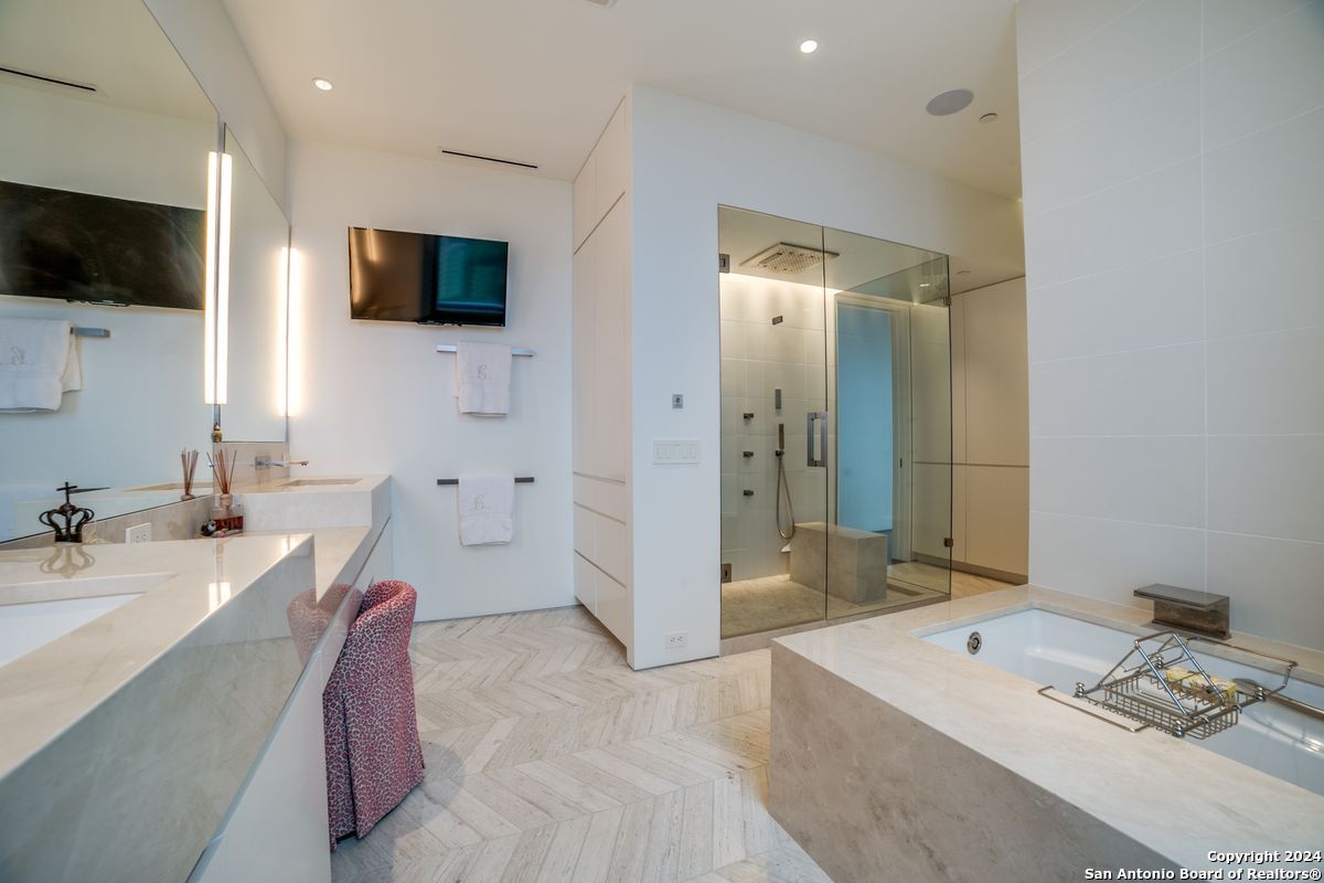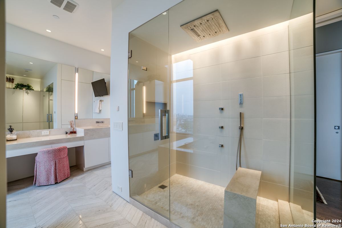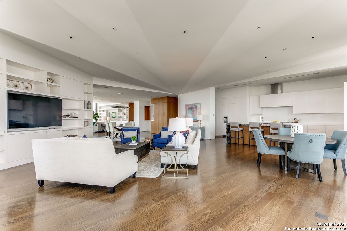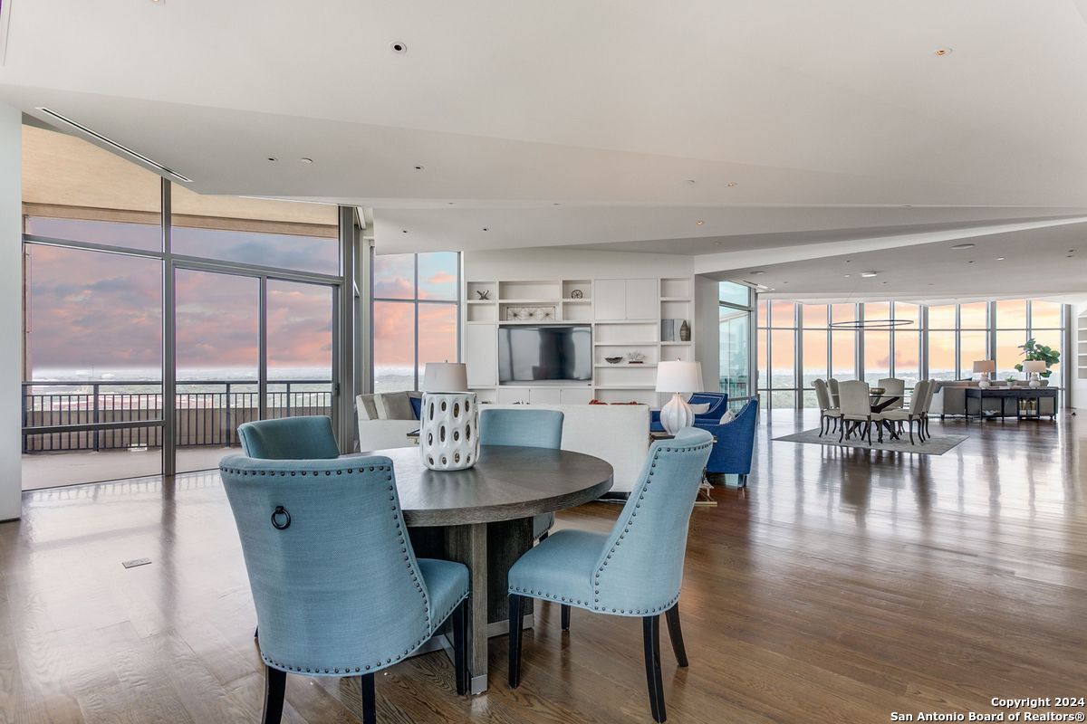 Nestled on the 20th floor of The Broadway San Antonio, this impeccable unit offers a panoramic view stretching from the city skyline to the hill country. With a private elevator entrance, you can step inside and discover an expansive and inviting entertaining area, seamlessly merging with two private balconies to enhance the sense of space and connection to the stunning surroundings. Custom designer kitchen with top-of-the-line features, Blue Louise stone countertops and waterfall island, alongside deluxe Miele appliances such as dual dishwashers, an ice maker, gas range, convection microwave, and espresso maker. Flexibility abounds for tailoring living, dining, and entertaining spaces to suit personal preferences. Revel in the convenience of a wet bar with hidden storage and player piano hook-ups, perfect for hosting unforgettable gatherings. The primary suite is a sanctuary of luxury, featuring a study, two additional private balconies, and an elevated en suite bath complete with a multi-head shower, dual sinks, and a garden airtub. An expansive primary closet includes additional washer/dryer hook-ups for added convenience. Across the unit, two secondary bedrooms each with en suite bathrooms, accompanied by a shared open office space and secret storage room, catering to every need. Experience the convenience and luxury living at The Broadway with 24-hr concierge and valet service plus a staff of 20 to take care of your every need.