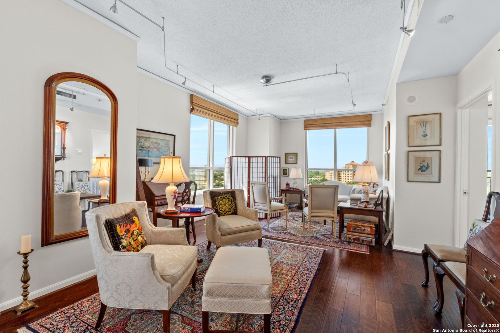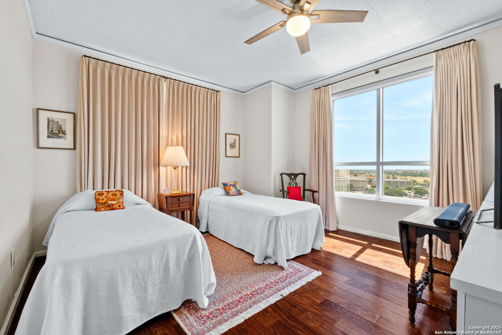 Incredible "G" floor plan with spectacular Downtown San Antonio Skyline views! Discover a sophisticated 2-bedroom, 2-bath condominium that offers the perfect balance of comfort, style, and convenience. With an open layout, rich wood floors, and walls of natural light, this residence feels warm and inviting from the moment you arrive. The kitchen and bathrooms feature gorgeous natural stone counters. In-unit washer and dryer connections bring added ease to your daily routine. Nestled near Alamo Heights, The Towers is San Antonio's premier full-service high-rise community for active 55+ residents. Here, everyday living is elevated with amenities designed for both relaxation and connection: Concierge & Valet Services for worry-free convenience, Wellness Center & Personal Training to support an active lifestyle, Resort-Style Pool & Spa for relaxation at your doorstep, Two On-Site Restaurants offering dining just steps away, Weekly Housekeeping for simplicity and peace of mind, Cultural & Social Activities that keep the community vibrant and engaging, 24-Hour Security for complete confidence and comfort. At The Towers, you'll find more than just a home-you'll discover a community. Surrounded by neighbors who share your zest for life, this is where luxury, convenience, and connection come together.