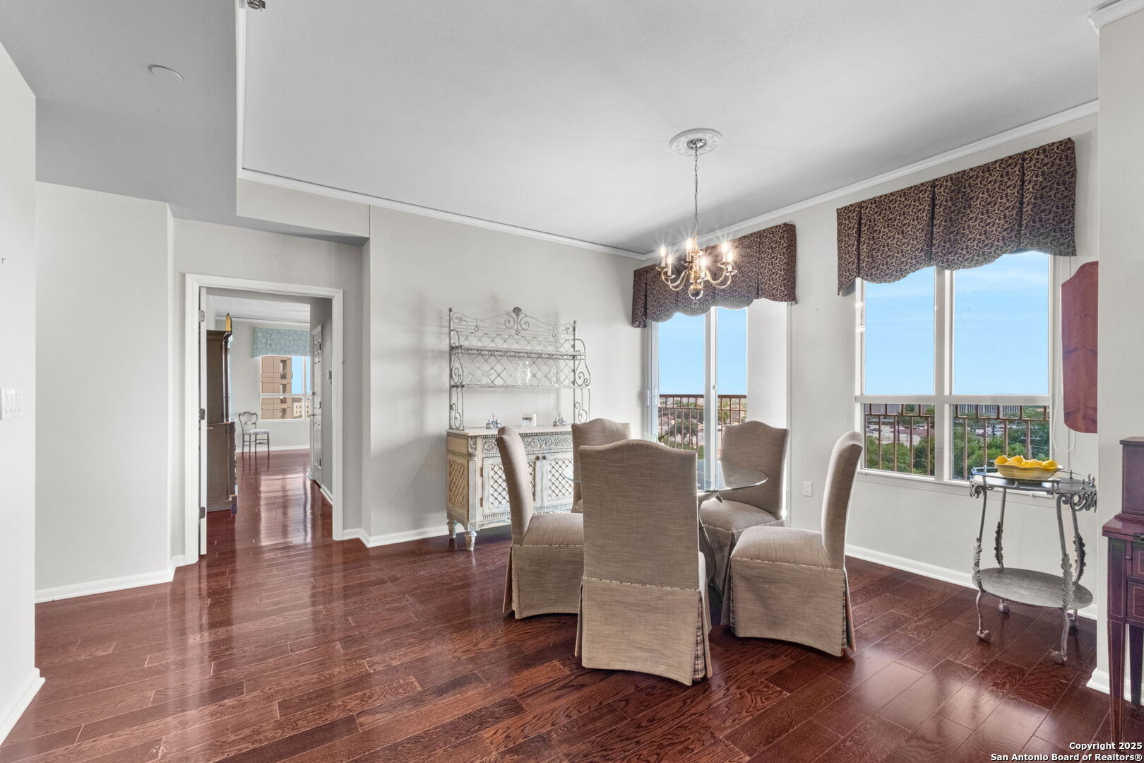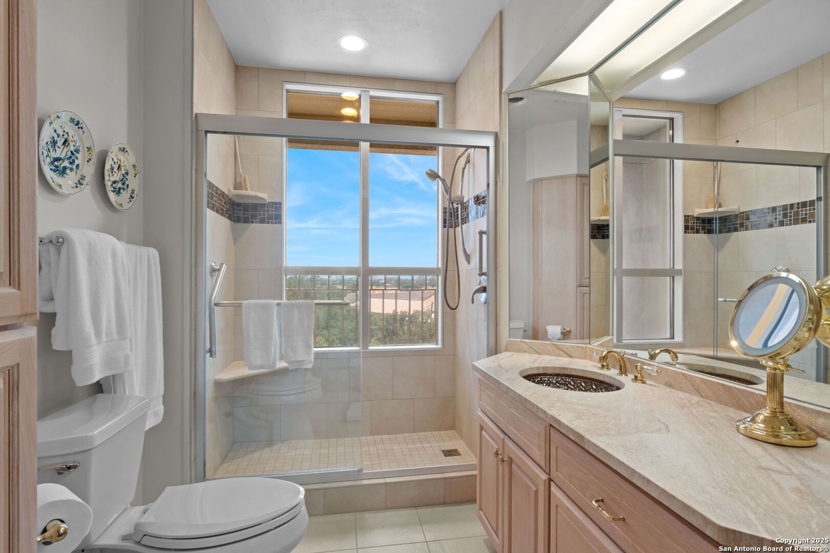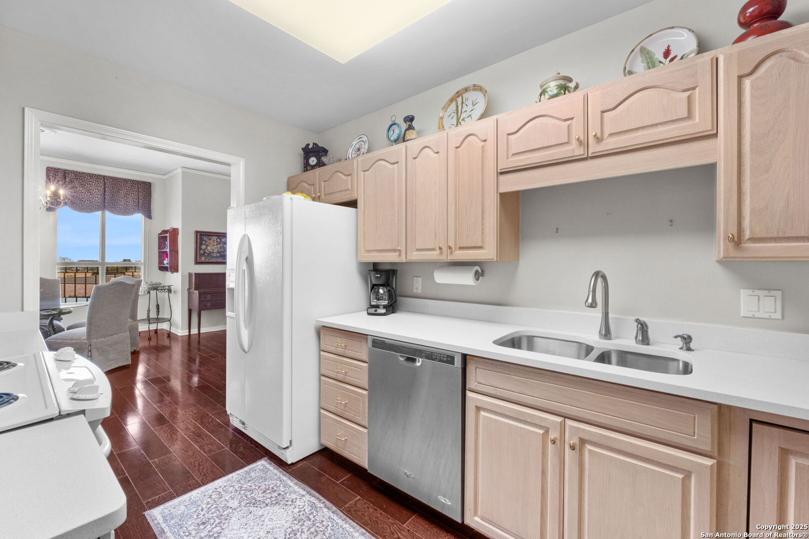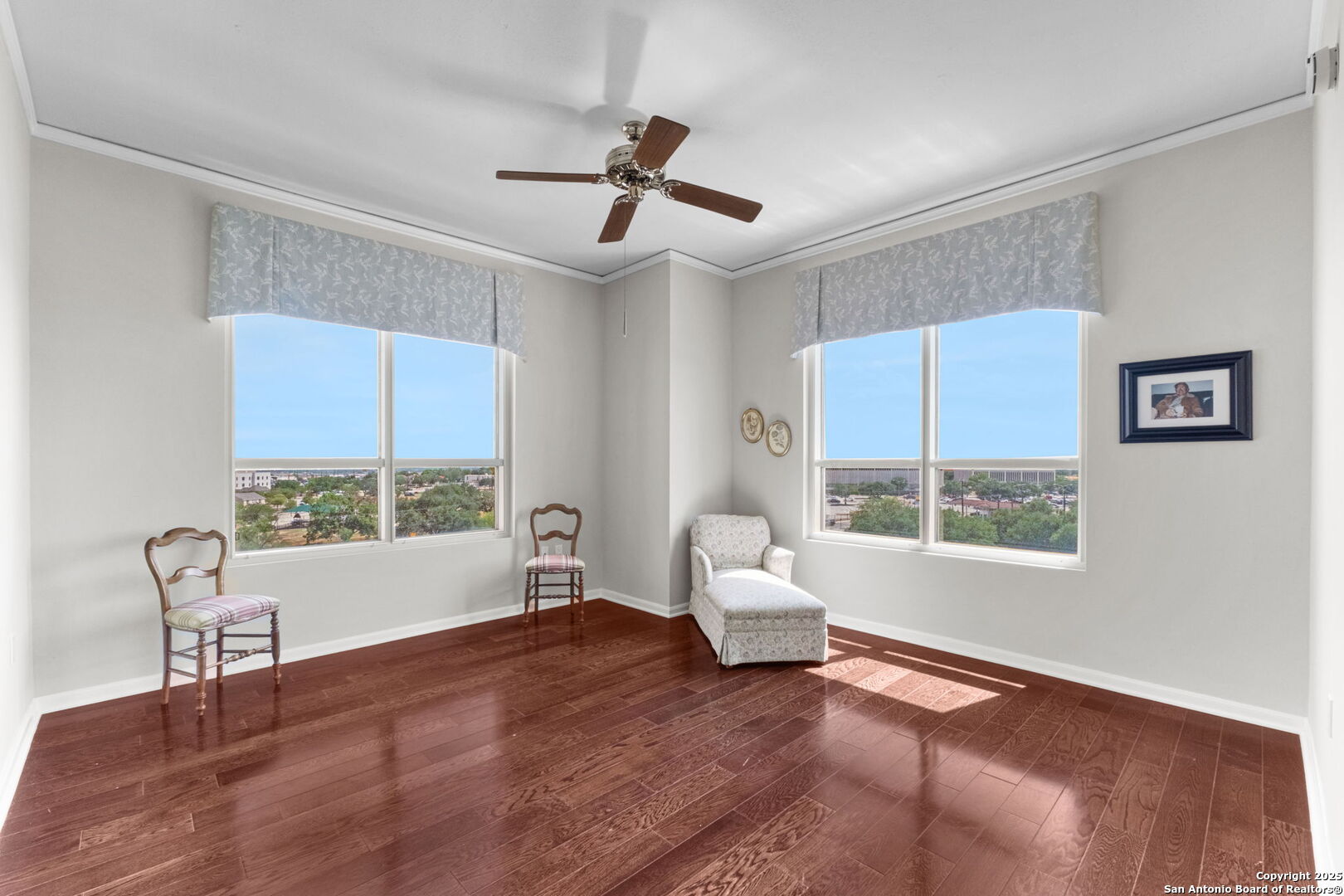 Welcome to your new home in the sky! This 2-bedroom, 2-bath unit has everything you need for comfortable luxury living. The open layout features beautiful wood floors and plenty of natural light, making it feel warm and inviting from the moment you walk in. You'll love the designer solid surface counters in the kitchen and bathrooms, along with the custom window treatments that give the space a polished touch. The primary suite comes with a luxurious step-in shower with custom tilework, perfect for relaxing after a busy day. Enjoy the convenience of in-unit washer and dryer connections and soak in the stunning views of downtown San Antonio right from your windows. This condo combines style, comfort, and convenience-all near Alamo Heights, in the heart of our beloved city. The Towers offers the perfect blend of modern style and comfort, with the added benefit of living in a full-service, high-rise community featuring concierge and valet, wellness center, personal training, pool/spa, lounge, two restaurants, 24 hour security, weekly housekeeping, a packed calendar of cultural activities and much more. Life at The Towers is a vibrant community of active 55+ residents who enjoy the luxury, convenience and simplicity of living in a full-service residence.
