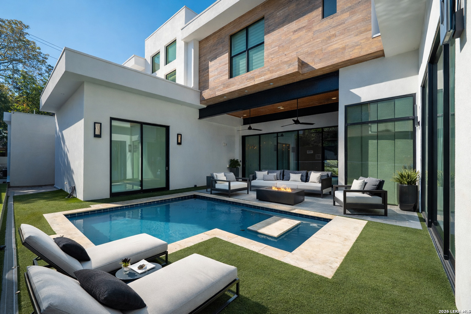 This EXQUISITE contemporary ESTATE in the prestigious TERRELL HILLS community brings you all the modern conveniences that you desire. Located on the corner lot with easy access to shopping, the airport, and major highways you are minutes away from all your needs. This Custom energy efficient home is built using CMU ( concrete ) exterior walls and features a chef's kitchen with profesional grade appliances. The spacious main suite gives you access to the beautiful pool area in the back yard and the main bath features a system shower and additional outdoor shower.There is a second bedroom on the main level with full bath. A modern spiral staircase takes you to the underground temperature controlled wine cellar. Three additional bedrooms and game-room complete the second level. The rear outdoor living area features a large covered patio and refreshing in-ground pool to enjoy. No need to mow the yard since it features artificial turf for low maintenance. The three car side entry garage offers ample space for your vehicles. This one of kind modern estate home is ready for you to live the life of luxury.