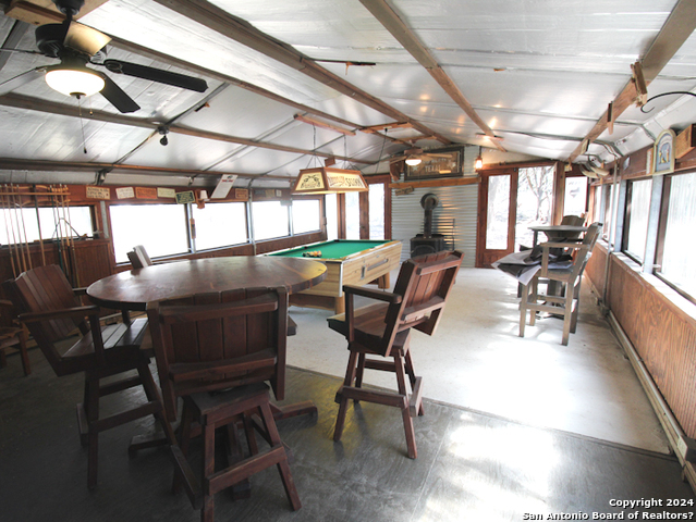 ENTERTAINER'S PARADISE! Beautiful setting for this spacious 3 bedroom 2 bathroom mobile home. Huge, open living room with vaulted ceilings, tons of natural light and a traditional wood burning stove. Large kitchen featuring custom cabinetry throughout. Propane stove, microwave, refrigerator included. Remote primary with en suite and TWO walk-in closets. Second and third bedrooms are spacious and have vaulted ceilings to add to the space. Guest bathroom is convenient to the second and third bedrooms. Property features an amazing game/party building with pool table, kitchen, wood-burning stove and much more!