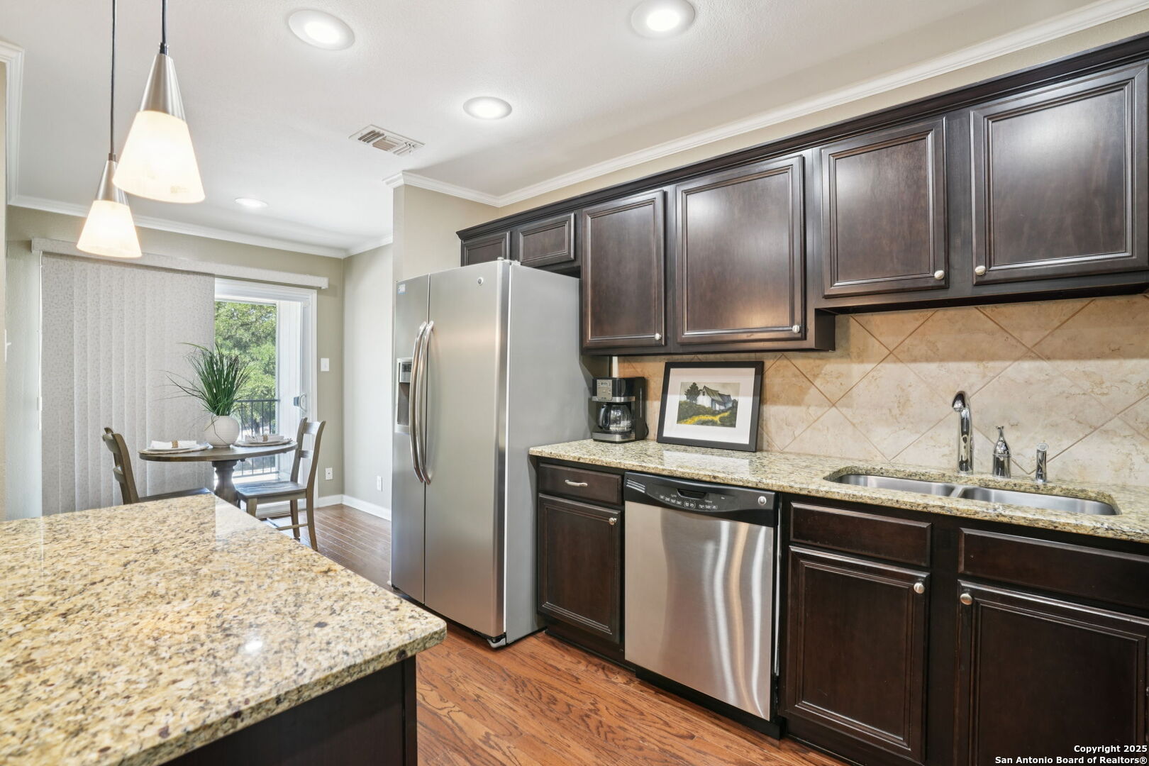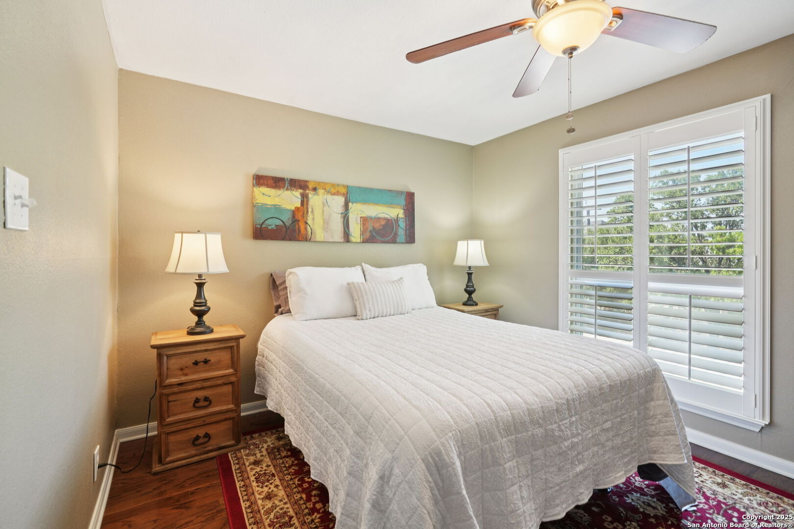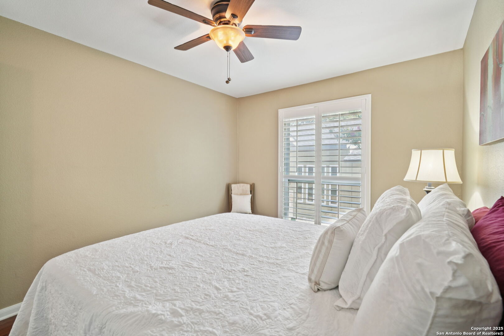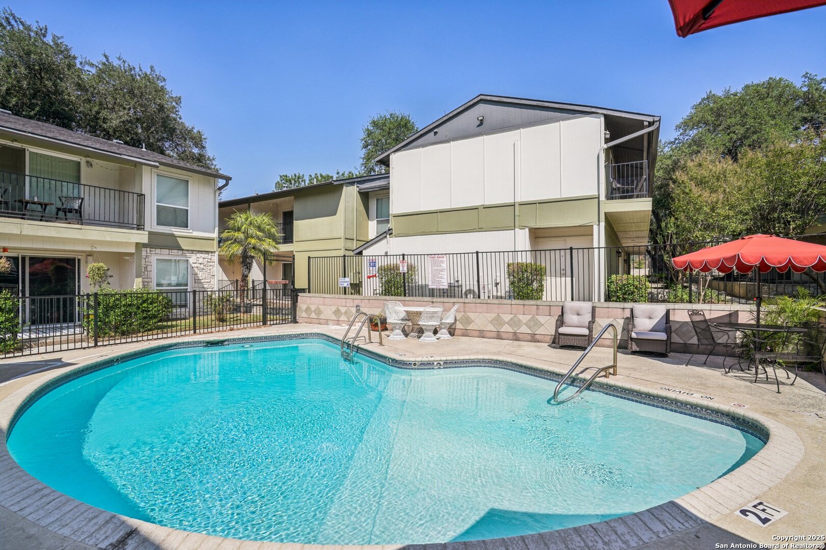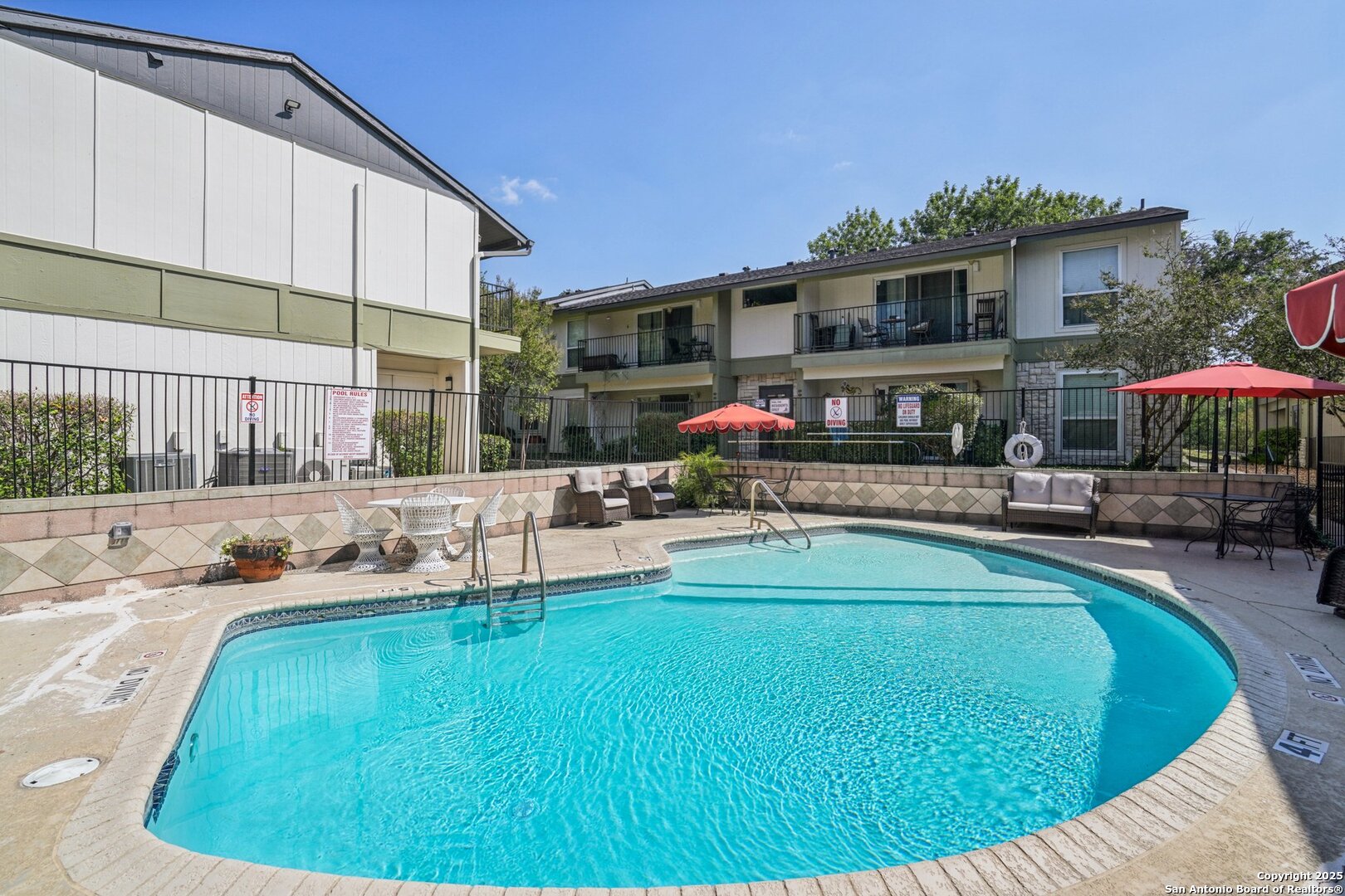 Beautifully maintained 2 bed, 2 bath condo in the gated Villa Dijon community, located in the highly desirable Alamo Heights ISD. This spacious second-floor unit features an open living and dining area, two private balconies, in-unit laundry, and a walk-in closet in the primary suite. The functional layout offers natural light, ample storage, and comfortable living spaces. Community amenities include a pool, hot tub, covered parking, and controlled access. Conveniently located near the Quarry Market, Lincoln Heights, The Pearl, and minutes from Downtown San Antonio. HOA covers exterior maintenance, trash, water, and common areas. Ideal for first-time buyers, downsizers, or those seeking a low-maintenance lifestyle in a prime central location.