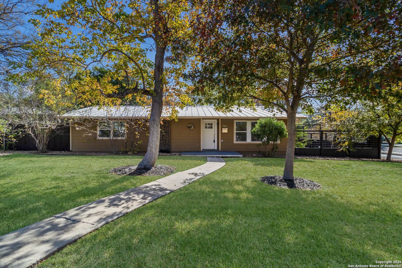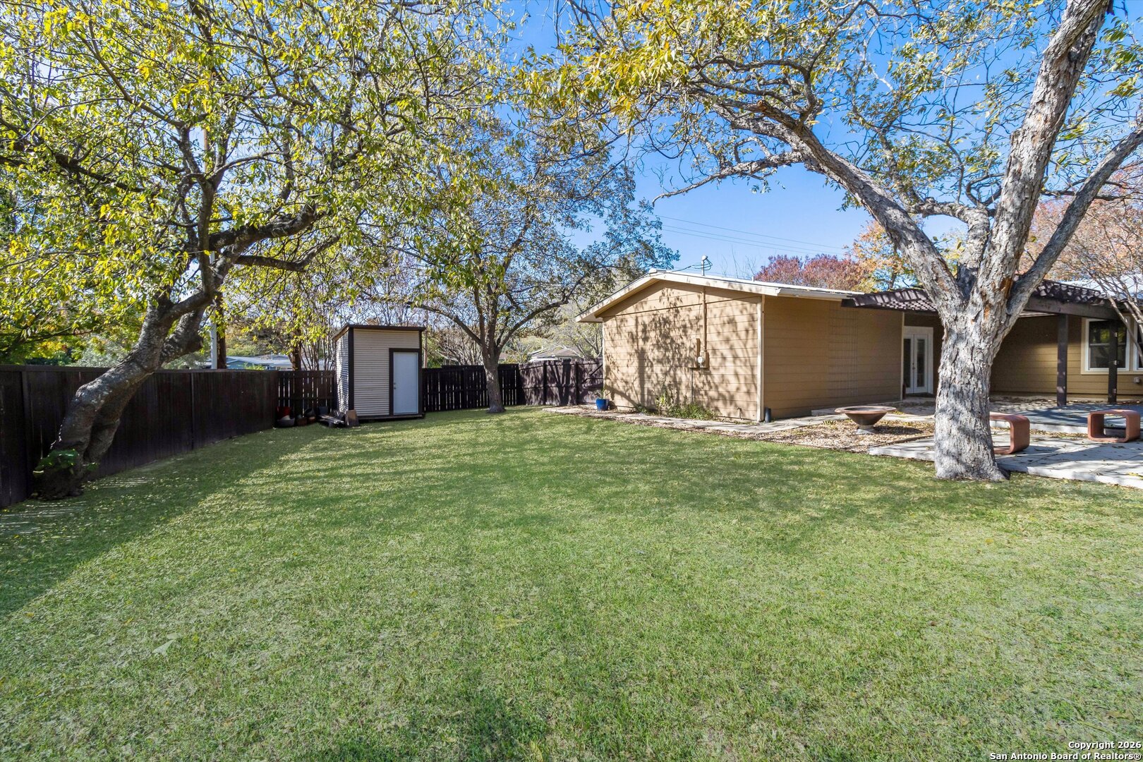 **OPEN HOUSE 3/20 4PM-6PM ; 3/21 11AM-2PM**This beautifully renovated one-story home has been recently fully painted and offers three distinct outdoor areas to enjoy. Featuring 3 bedrooms and 2 full bathrooms, the home showcases a modern kitchen with gas cooking, stainless steel appliances, granite countertops, a stylish backsplash, and elegant tile flooring. With no carpet throughout, the space feels clean, cohesive, and easy to maintain. Exterior highlights include a covered patio, additional patio slab, mature trees, a privacy fence, sprinkler system, and a storage shed, creating both comfort and functionality outdoors. Located in a neighborhood with a park and playground, this home blends updated interiors with inviting outdoor living spaces.