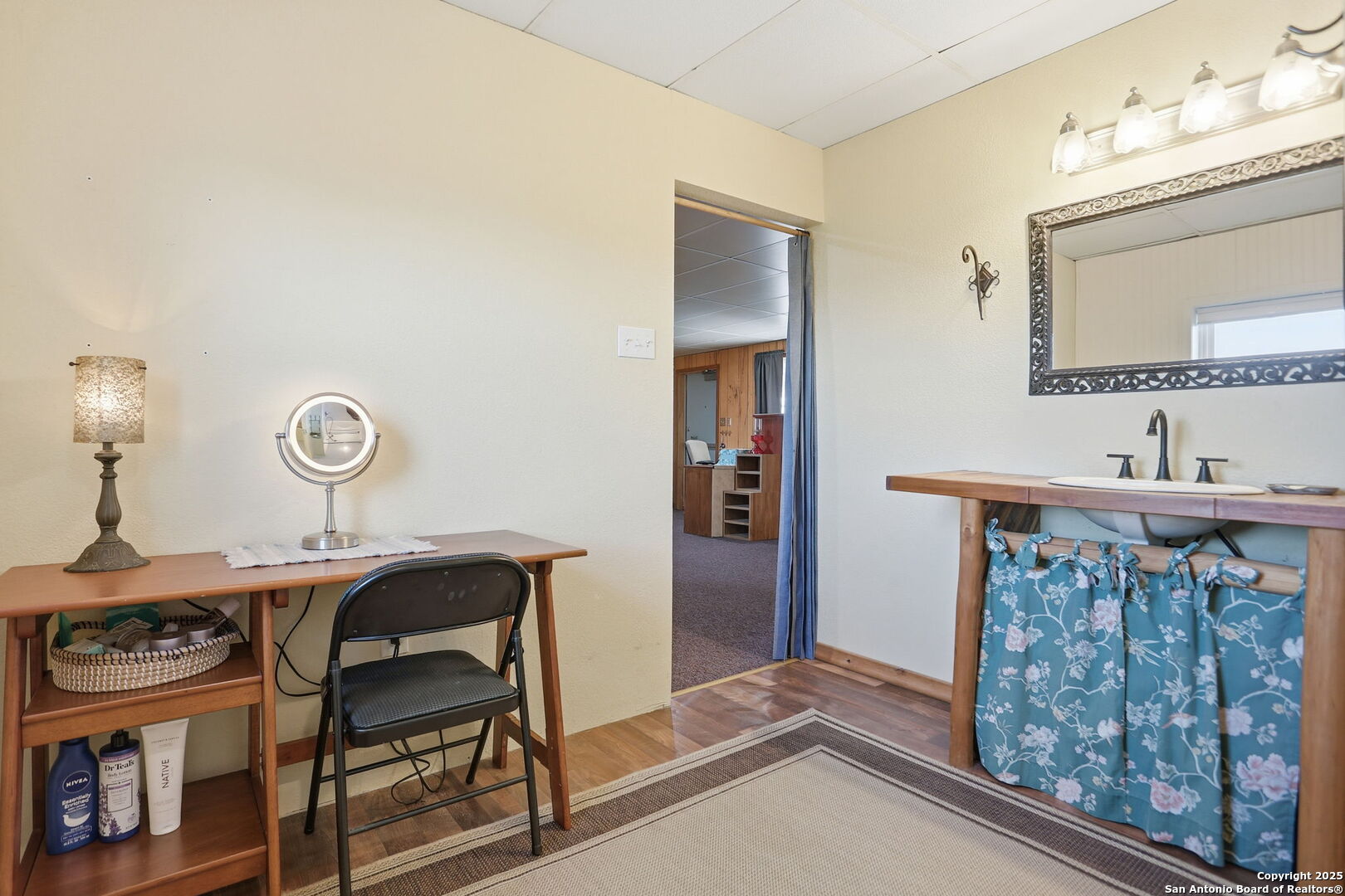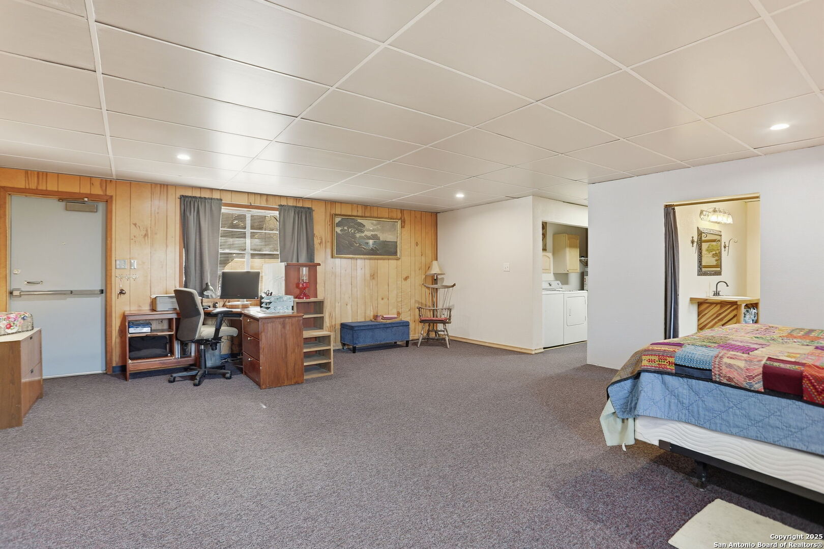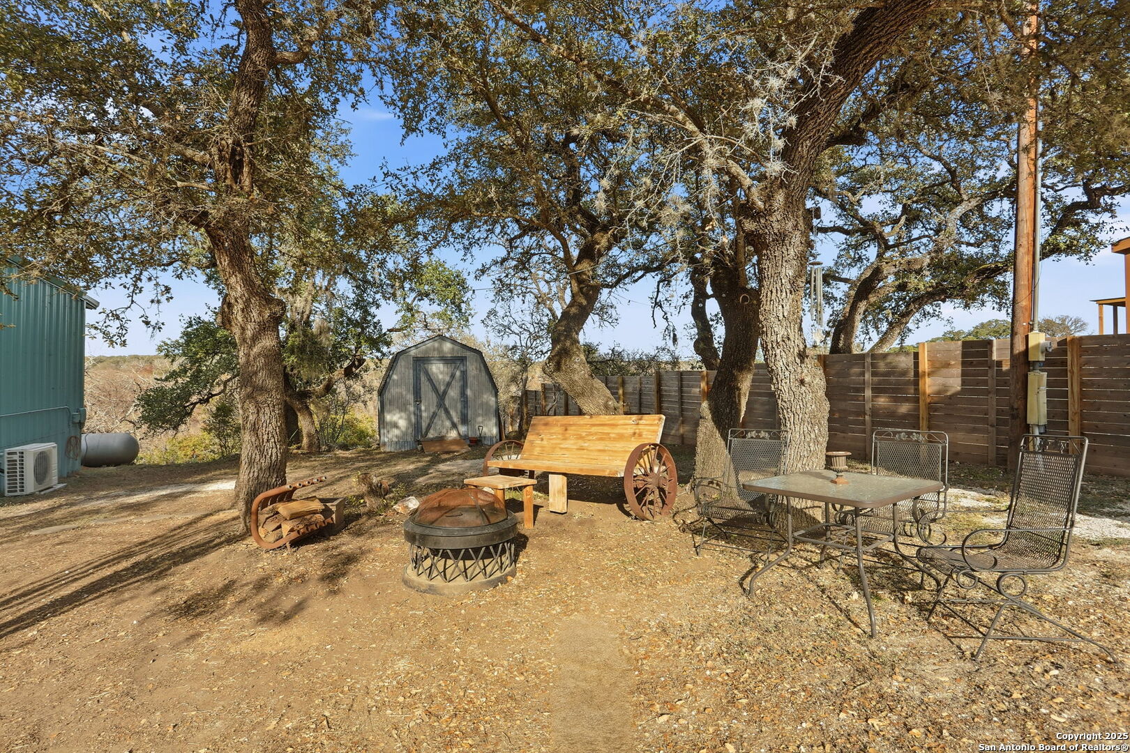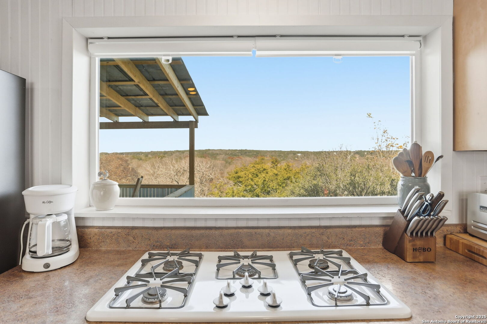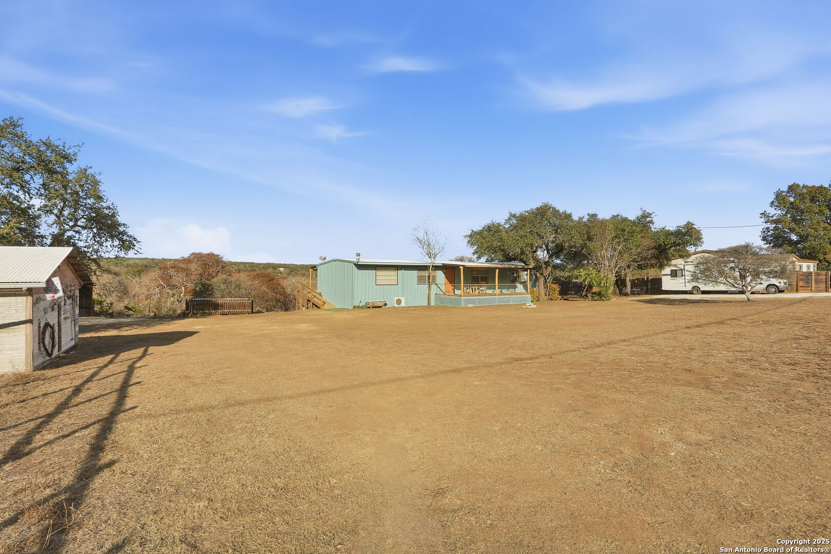 One of a kind property with million-dollar views, with the potential to be converted into a multiple bedroom layout or expanded further to suit future needs. At the front of the home, a covered porch creates an inviting space to sit back and enjoy unforgettable Texas sunsets while taking in the peaceful surroundings. Set on a serene greenbelt on two lots with one neighbor in front and none behind, this home delivers a truly private setting paired with breathtaking surroundings that feel endless. Inside, a fully remodeled vintage Schoolhouse that has been thoughtfully transformed into a comfortable and charming home. The living area features an antique wood-burning stove made by "The Earth Stove", creating a cozy atmosphere during cooler months. The kitchen is designed to impress, featuring a propane stove fueled by a 500-gallon propane tank that allows you to cook while enjoying scenic hill country views, an antique 1956 Frigidaire Imperial stove, and a Samsung Bespoke 30 cu. ft. French Door refrigerator. A large kitchen island and breakfast bar create an inviting space ideal for hosting and everyday living. Additional highlights include three mini split systems for efficient climate control and low energy costs, double insulation, moisture and fire-resistant ceiling panels, and a water osmosis filtration system. The bathroom is already plumbed to accommodate the addition of a bathtub, offering future customization potential. A covered back patio provides another ideal setting to relax and take in the remarkable scenery and open skies. A 2 car Quonset Hut with plenty or room for extra shop supplies. The property includes a fully equipped chicken coop with water and electricity, previously used as part of a small farm operation that produced fresh vegetables, eggs, chickens, and rabbits, presenting a unique opportunity for a hobby farm or secondary income stream. A dedicated garden area and solar room with solar panels further enhance the self-sufficient lifestyle. Located near the Rebecca Creek Golf Course Club with Clubhouse, Grill, and Public Pool. Three miles away is Boat Ramp #11 on the Guadalupe River that meanders to Canyon Lake. This property blends peaceful hill country living with convenient access to outdoor recreation. This distinctive Spring Branch, TX property offers unmatched character, flexibility, and views that truly set it apart from anything else on the market. It is truly an open concept homestead.