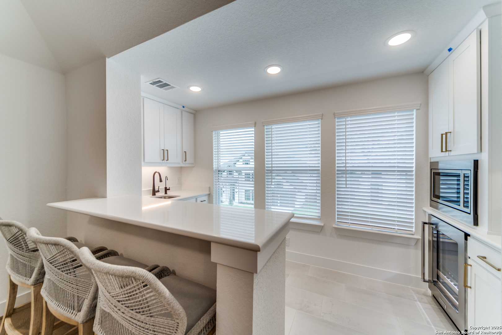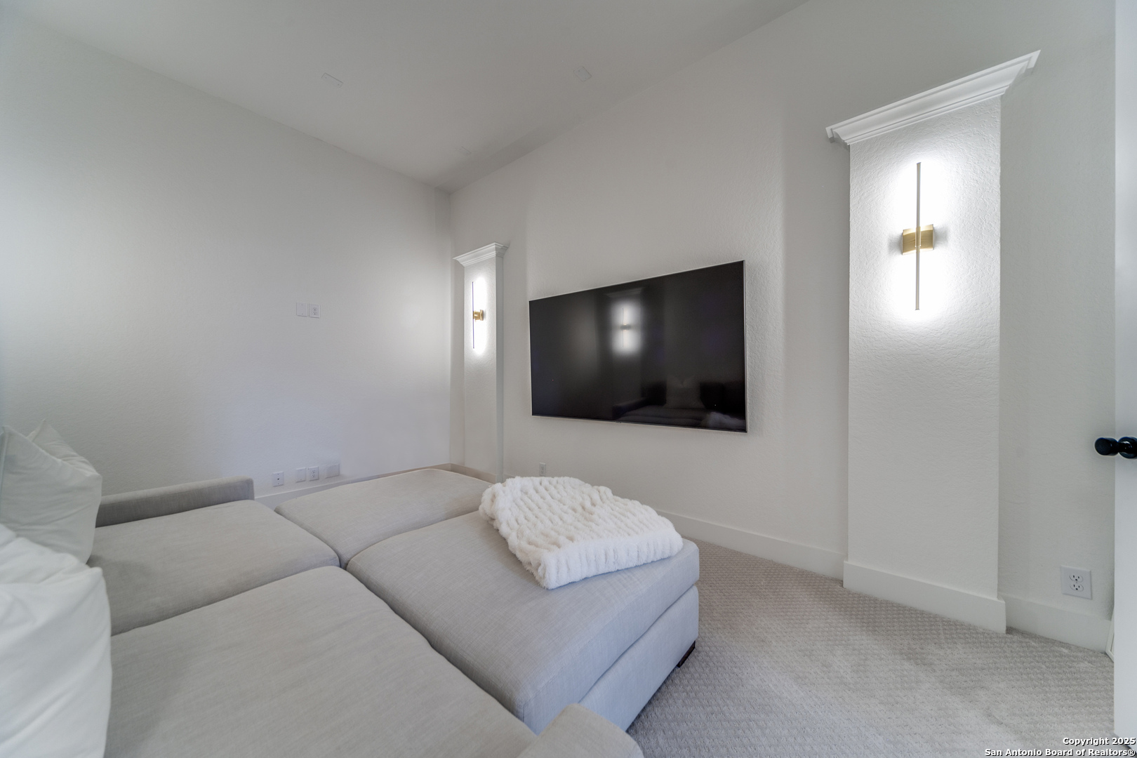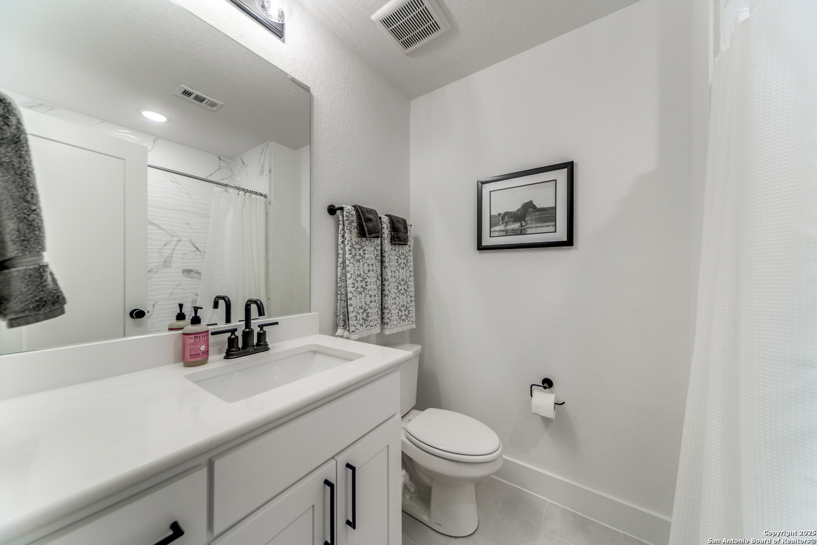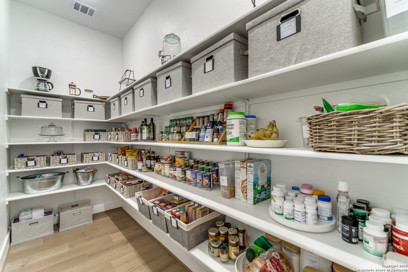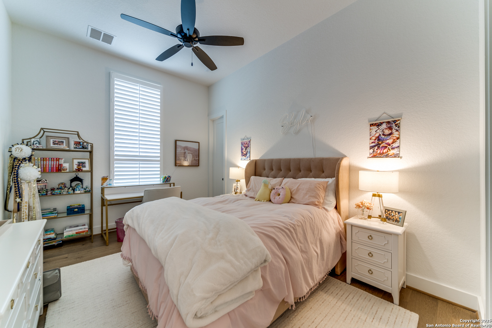 Step into refined living in this beautifully appointed 5-bedroom, 4 full bath, 2 half bath home by Highland Homes, nestled in the sought-after Balcones Creek community. Positioned on a spacious corner lot, this residence blends elegance, comfort, and thoughtful upgrades throughout. From the moment you enter, you're welcomed by soaring ceilings, abundant natural light, and an inviting open floor plan. To the right, a home office offers a quiet retreat for work or study, while a striking staircase draws the eye upward with architectural grace. The main living space features custom wooden ceiling beams and flows effortlessly into the formal dining room, enhanced with built-in shelving and upgraded light fixtures that carry throughout the home-inside and out. The adjacent living room boasts additional built-ins, a cozy gas fireplace, and electric blinds for added ease and comfort. At the heart of the home is the island kitchen, equipped with granite countertops, double ovens, gas cooking, a walk-in pantry, and updated hardware that gives the space a sleek, modern edge. Just off the kitchen, a separate breakfast area offers relaxed dining. Between the kitchen and living area is a media room, complete with upgraded wall sconces, setting the stage for unforgettable movie nights or game days. The primary suite is a serene retreat with generous space and style. The en-suite bathroom has been beautifully updated with new mirrors, modern lighting, dual vanities, a garden tub, and a walk-in shower. The custom walk-in closet features built-in shelving and tailored organization done by "Inspired Closets by Maxwells", to fit all your wardrobe needs. A second bedroom and full bath on the main level offer comfort and flexibility for guests or multi-generational living. Upstairs, a spacious game room awaits, complete with a full wet bar, sink, wine fridge, and microwave-perfect for entertaining. Three additional bedrooms, each with their own private bathrooms, ensure everyone has their own space. Outside, enjoy the large covered patio and expansive corner-lot backyard, offering privacy and room to play or garden. The 3-car garage includes added rafters for storage, providing both practicality and organization. This home is the perfect blend of luxury and functionality in one of the area's most desirable neighborhoods. Don't miss the opportunity to make this showstopper yours!