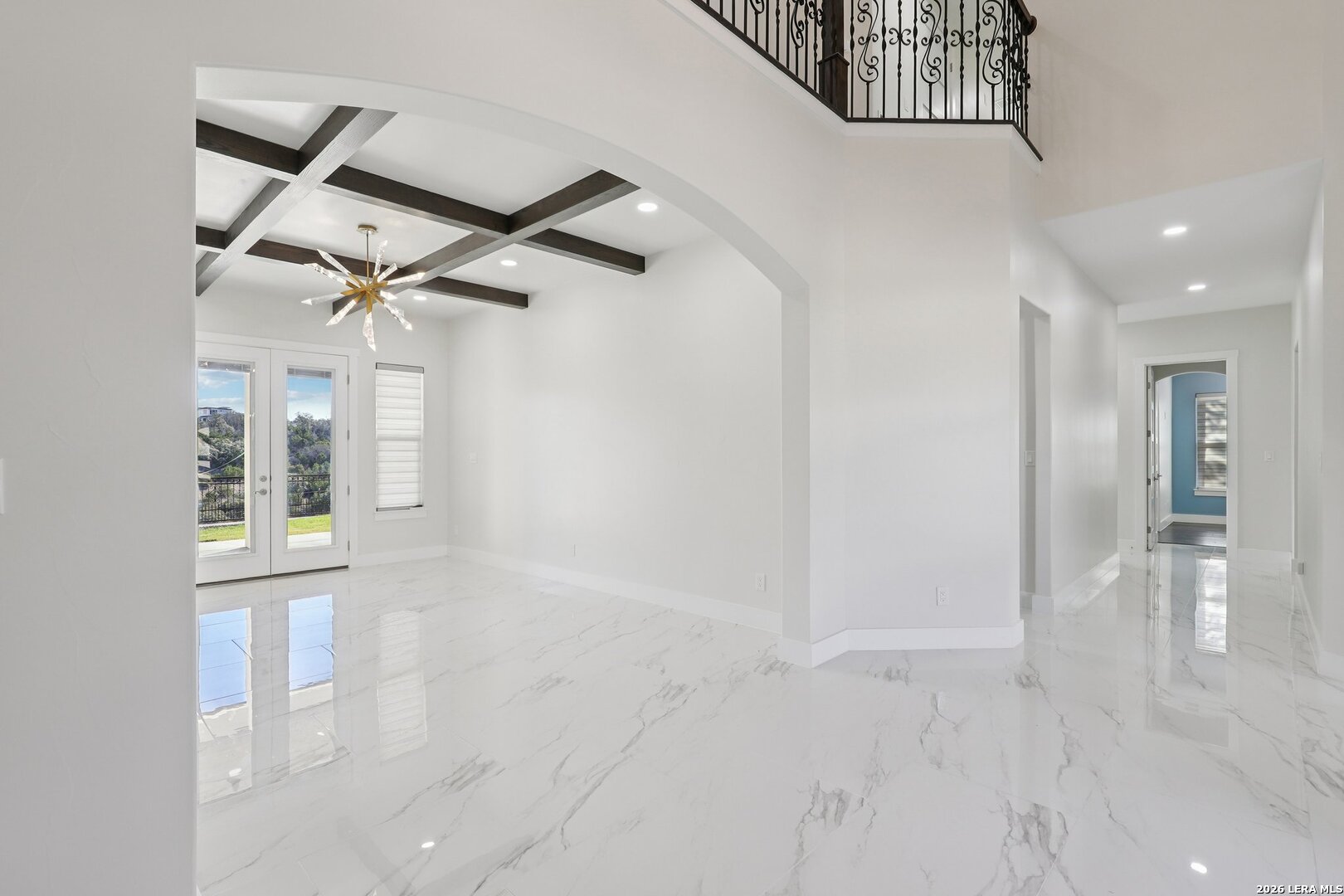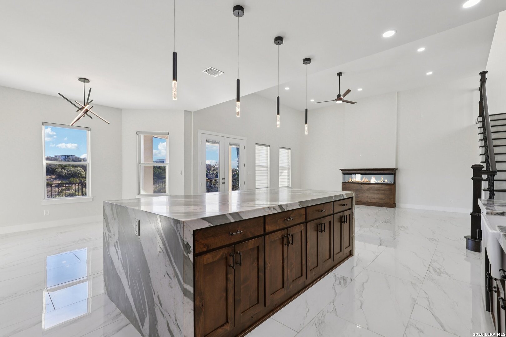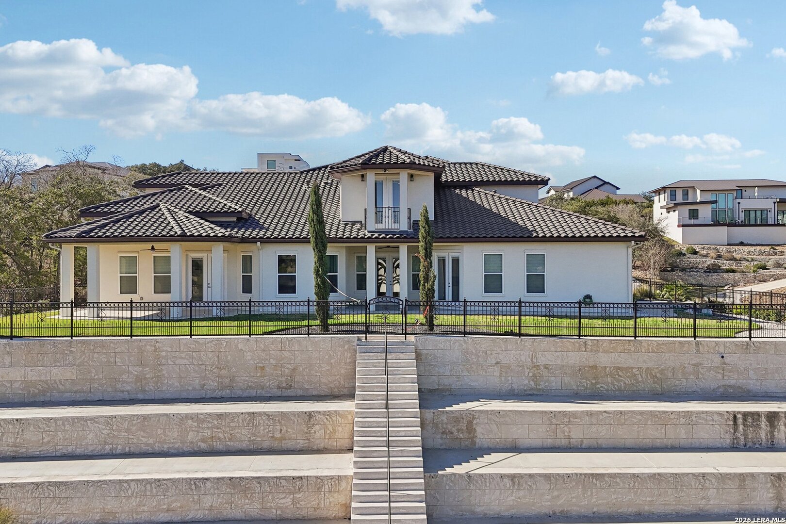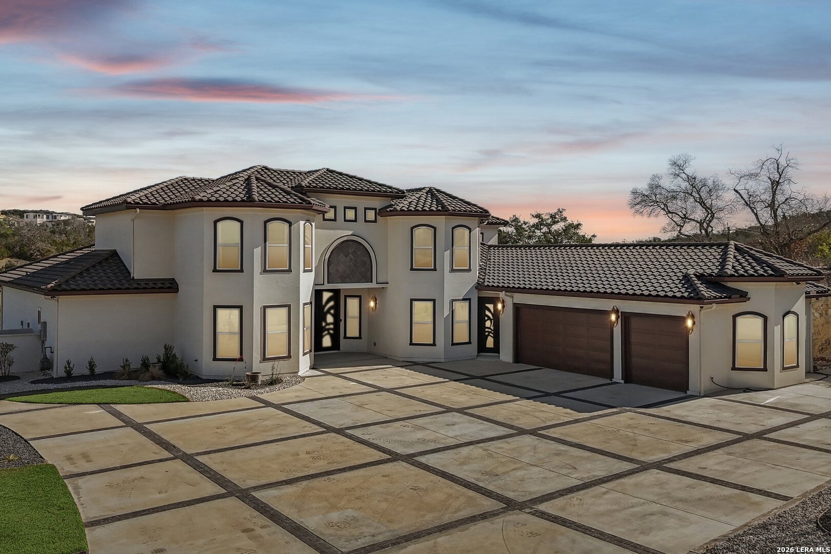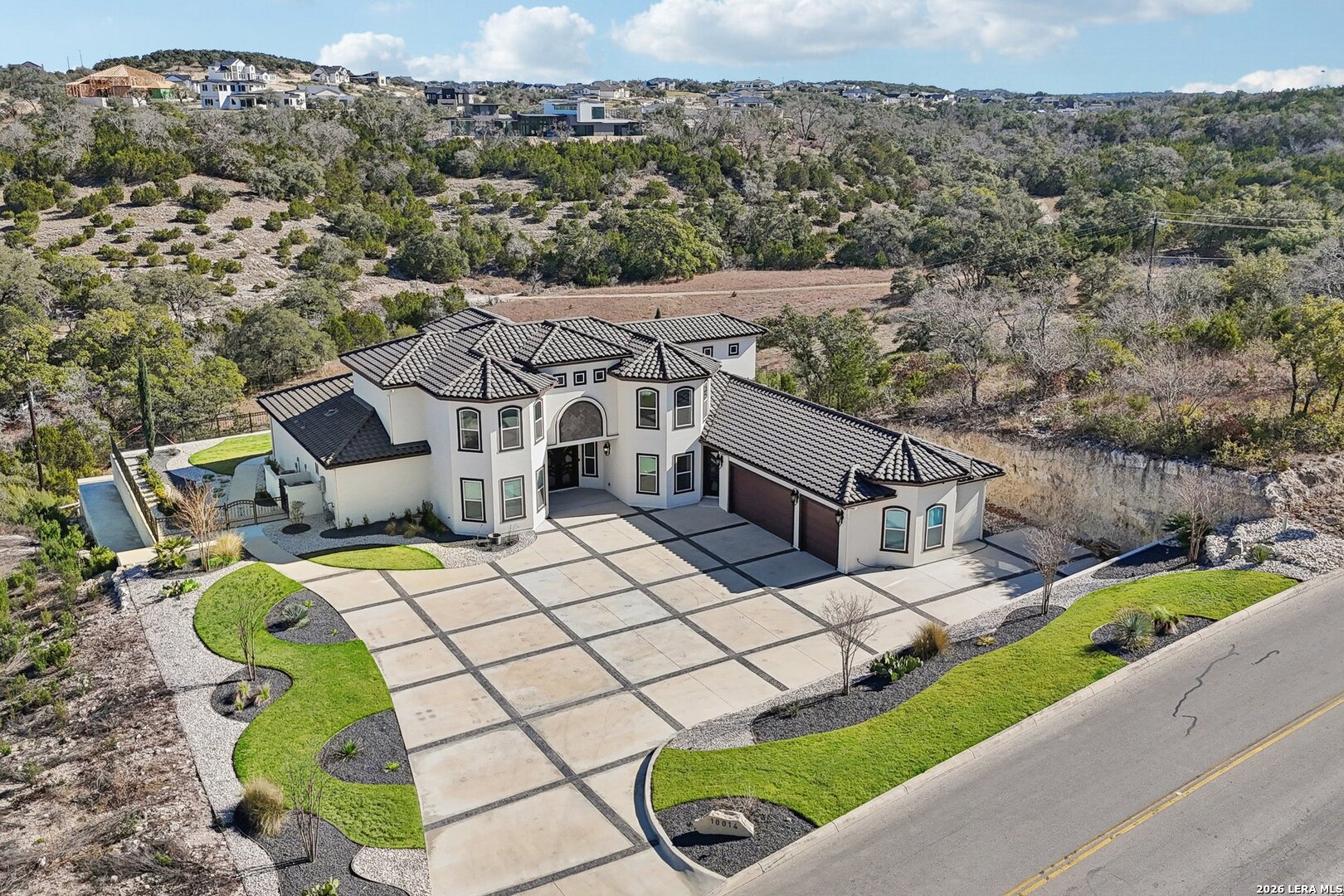 Welcome to luxury living in the prestigious Canyons at Scenic Loop. This stunning 5,456 sq ft modern Mediterranean estate is thoughtfully designed for elegance, comfort, and entertaining - all set against breathtaking hill country views. From the moment you arrive, the grand facade and expansive driveway make a commanding first impression. Inside, soaring ceilings, a sweeping curved staircase, and marble-look flooring create a dramatic yet inviting entry. The open-concept layout flows seamlessly into spacious living and dining areas, anchored by designer lighting and refined architectural details. The chef's kitchen is a showstopper - featuring an oversized waterfall island, custom wood cabinetry, premium appliances, and a statement range hood - perfect for hosting family and guests. Multiple living spaces include a dedicated game room, a private office, and generous common areas designed for modern lifestyles. Retreat to the luxurious primary suite with serene views, spa-inspired bath, and oversized walk-in closet. Three additional bedrooms and three full bathrooms offer comfort and privacy for family or guests. Step outside to enjoy unobstructed hill country views and endless possibilities for outdoor living. The adjacent lot is also available, offering the rare chance to expand your estate or secure added privacy.MLS #: 1908089 Located in one of San Antonio's most desirable gated communities, just minutes from top schools, shopping, and dining - this home delivers sophistication, space, and scenery in perfect harmony. Modern Mediterranean. Hill Country Views. Unmatched Lifestyle.