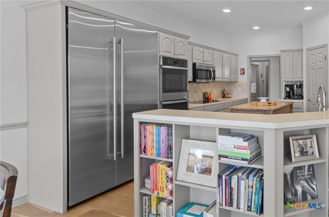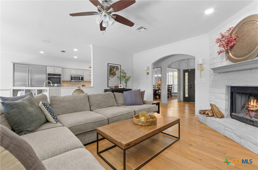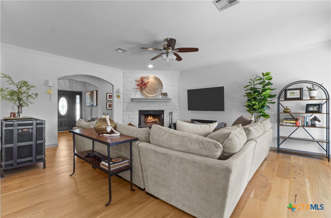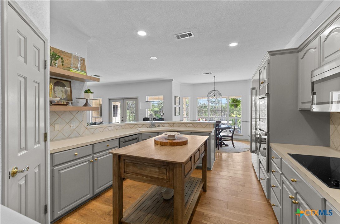 2.6 ACRES with PARTIAL LAKE VIEWS in SALADO Tx! Gorgeous UPDATED home with 4BEDS -3BATHs and MULTILEVEL outdoor decking, 22x34 SHOP and Large Carport for BOAT or TRAILERS! Enjoy lake views from LAKEVIEW SITTING AREA! Kitchen has DOUBLE OVENS, CUSTOM built-in JEN-AIRE REFRIGERATOR and movable ISLAND. Recent FRENCH OAK 7.5 WOOD PLANK FLOORING throughout main areas. Formal Dining and Large Living areas are lined with WINDOWS for tons of NATURAL LIGHT AND VIEWS. Large PRIMARY SUITE has updated tile accents, walk-in shower and jetted tub and FLEX ROOM. Secondary bedrooms 3-4 share JACK-N-JILL bath and bedroom 3 has French door access to back patio. Updates include PLANTATION SHUTTERS throughout, interior paint on both walls and cabinets, wood and porcelian stoneware flooring, hot water heaters and decking. Outdoor features include sod, tree removal, trimming and lot leveling. Minutes from RIVERS BEND PARK for Stillhouse Lake Boat Ramp and Access. 30 Minutes to Georgetown/45 minutes to Austin. NO HOA – LOW TAX RATE. DON’T WAIT ON THIS ONE!!