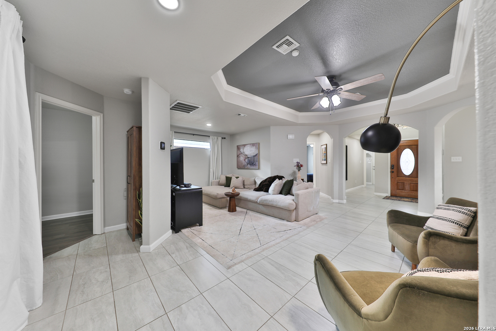 OPEN HOUSE: SAT & SUN, APRIL 11TH & 12TH 1-5PM! Beautifully updated one-story home in the highly sought-after Braunridge community in Helotes! Featuring a beautiful stone-accented exterior with brick on all four sides and a convenient side-entry garage. This well-maintained property offers both style and comfort. Major Upgrades include: New HVAC system (2025), New fence (2025), New kitchen appliances: dishwasher, microwave, stove (2025). Recessed lighting upgrades and new fixtures throughout (2024-2026), Primary bath remodel (2022) and Kitchen remodeled. Step inside to an open and inviting floor plan highlighted by elegant architectural details, including arched entryways, crown molding, tray ceiling, and tall baseboards. The home is tastefully updated with designer interior paint, tile and large plank laminate flooring throughout. The spacious kitchen is perfect for both everyday living and entertaining, complete with recessed lighting, granite countertops, custom cabinetry, and a stylish backsplash. Relax in the serene primary suite, which features a bay window overlooking the peaceful backyard shaded by mature oak trees. The remodeled spa-like bathroom includes a granite vanity, beadboard accent wall, and a generous walk-in tile shower with built-in seating. Enjoy outdoor living at its finest with French doors leading to a covered patio and an expansive concrete entertaining area-ideal for weekend barbecues and gatherings. Additional highlights include concrete walkways on both sides of the home for easy maintenance, freshly mulched beds and the roof was replaced in 2016. Located within walking distance to a dog park and greenspace, and close proximity to shopping, dining, major highways and Lackland AFB. This move-in-ready home offers the perfect blend of convenience and comfort. Schedule a showing today before this one is gone!