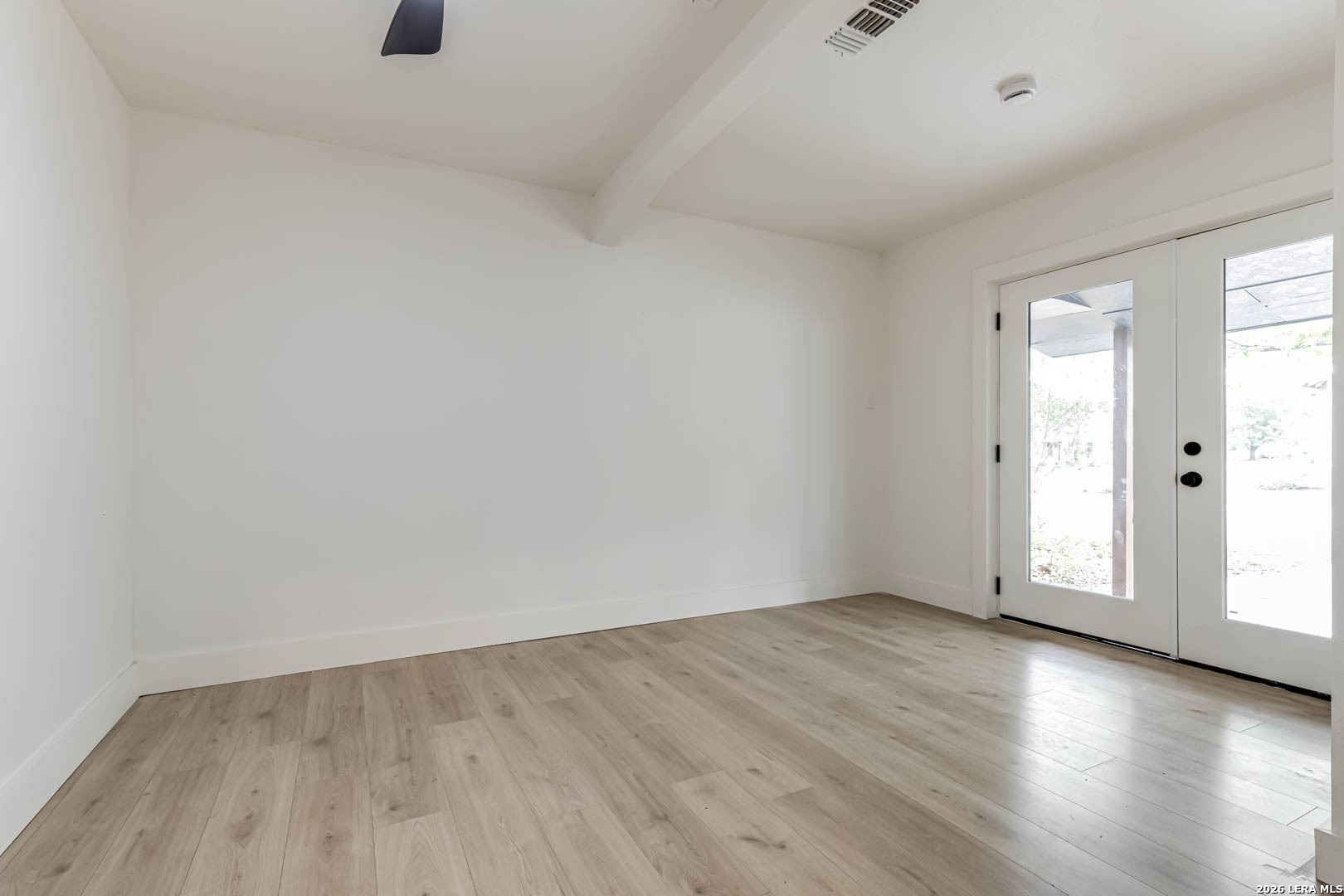 Classic 1936 Craftsman home thoughtfully updated for today's lifestyle, set on a corner homesite in the sought-after Beacon Hill area of north central San Antonio. Inside, you'll find a bright, open layout with 3 bedrooms, 2 full baths, and multiple living spaces designed for comfort and functionality. Two of the bedrooms feature French doors that open to private terraces, while a fireplace adds a welcoming touch to the main living area. The home sits on two lots, offering extra room to spread out, along with a covered carport and a detached shed for additional storage or workspace. The interior layout transitions smoothly to a covered patio, creating an easy indoor-outdoor flow for relaxing or entertaining. The yard is enhanced by established fruit trees and mature landscaping. Positioned close to parks, local dining, shopping, entertainment, major roadways, downtown, and nearby universities, this property combines character, updates, and a highly convenient location.