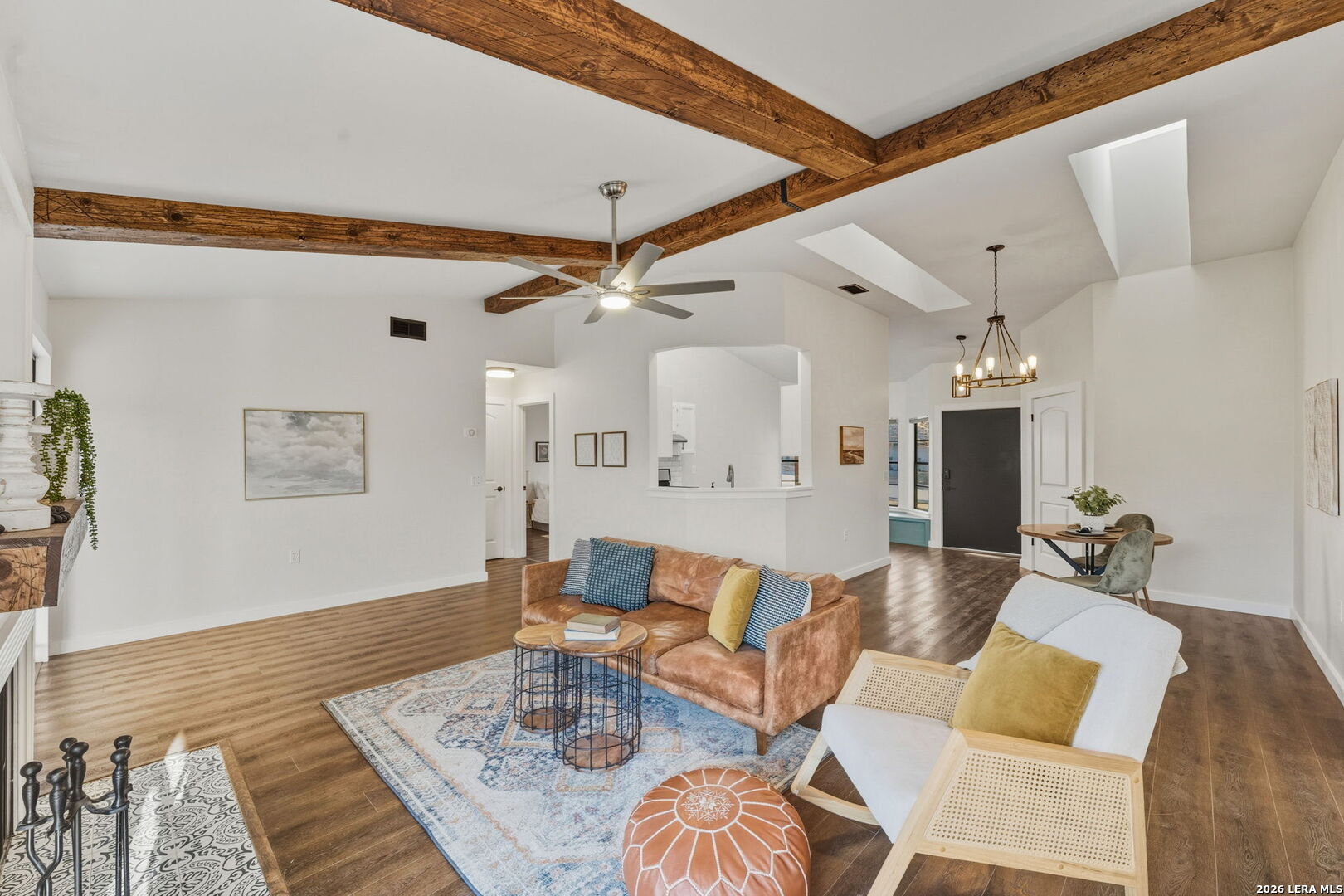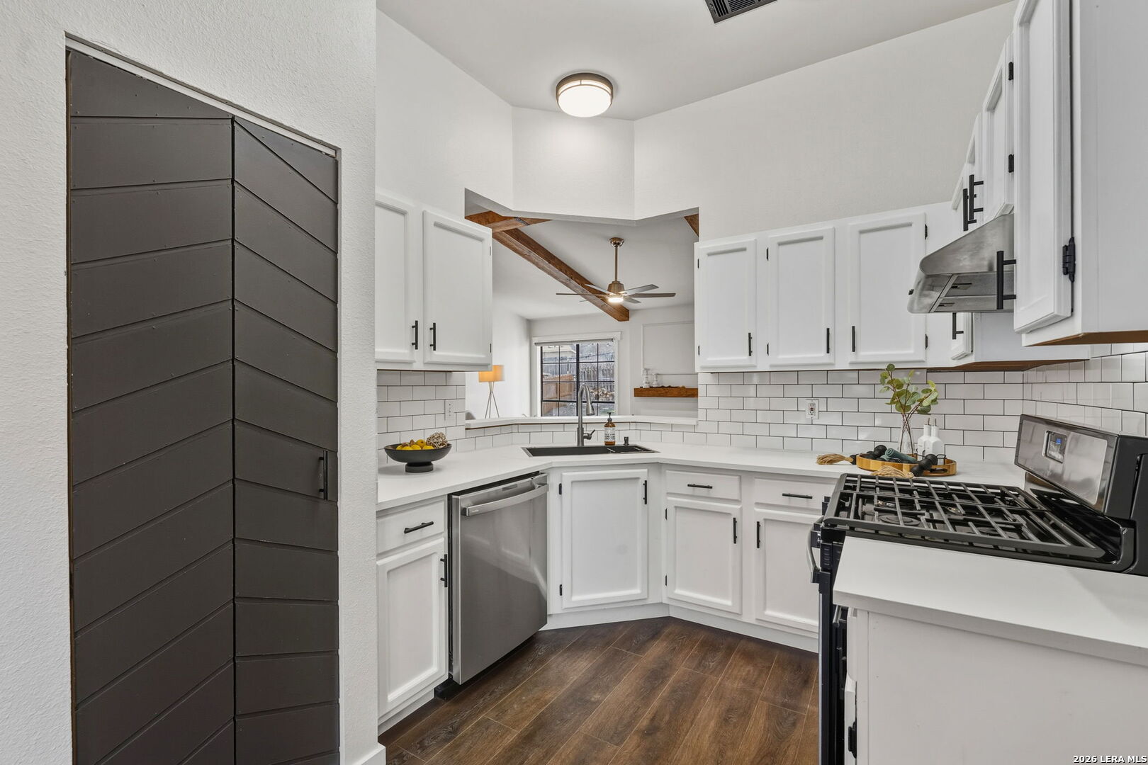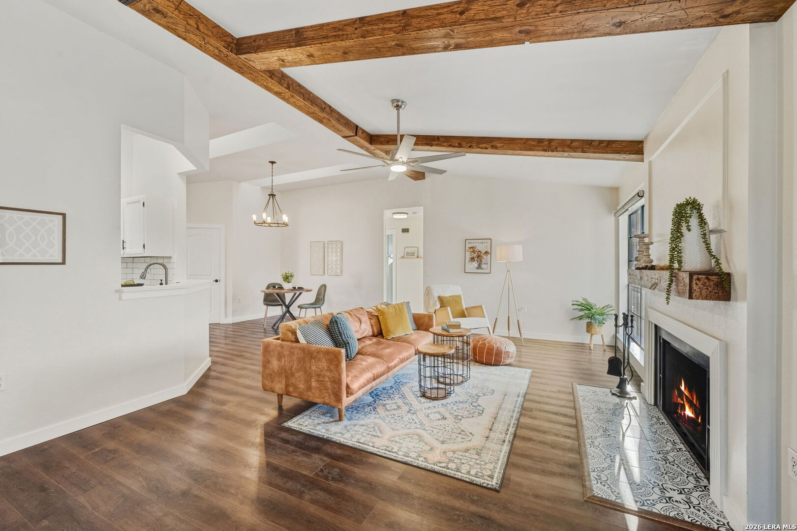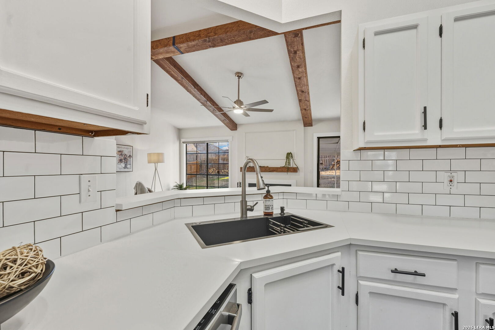 Recently renovated and absolutely adorable! This home has been thoughtfully updated with fresh interior paint and all-new flooring throughout (no carpet). The refreshed kitchen features freshly painted cabinets, new countertops, subway backsplash, stainless steel appliances, and a bright eat-in area with a charming bay window. Wood beam accents add warmth and character to the overall design. Bathrooms have been remodeled with new vanities, updated tile tub surrounds, and modern finishes. Additional upgrades include all new interior doors and updated light and plumbing fixtures. Step outside to a covered backyard patio with a fire pit - perfect for morning coffee, evening gatherings, or relaxing nights at home. If you love a Pinterest-worthy home but don't want to take on a renovation project, this one is for you!