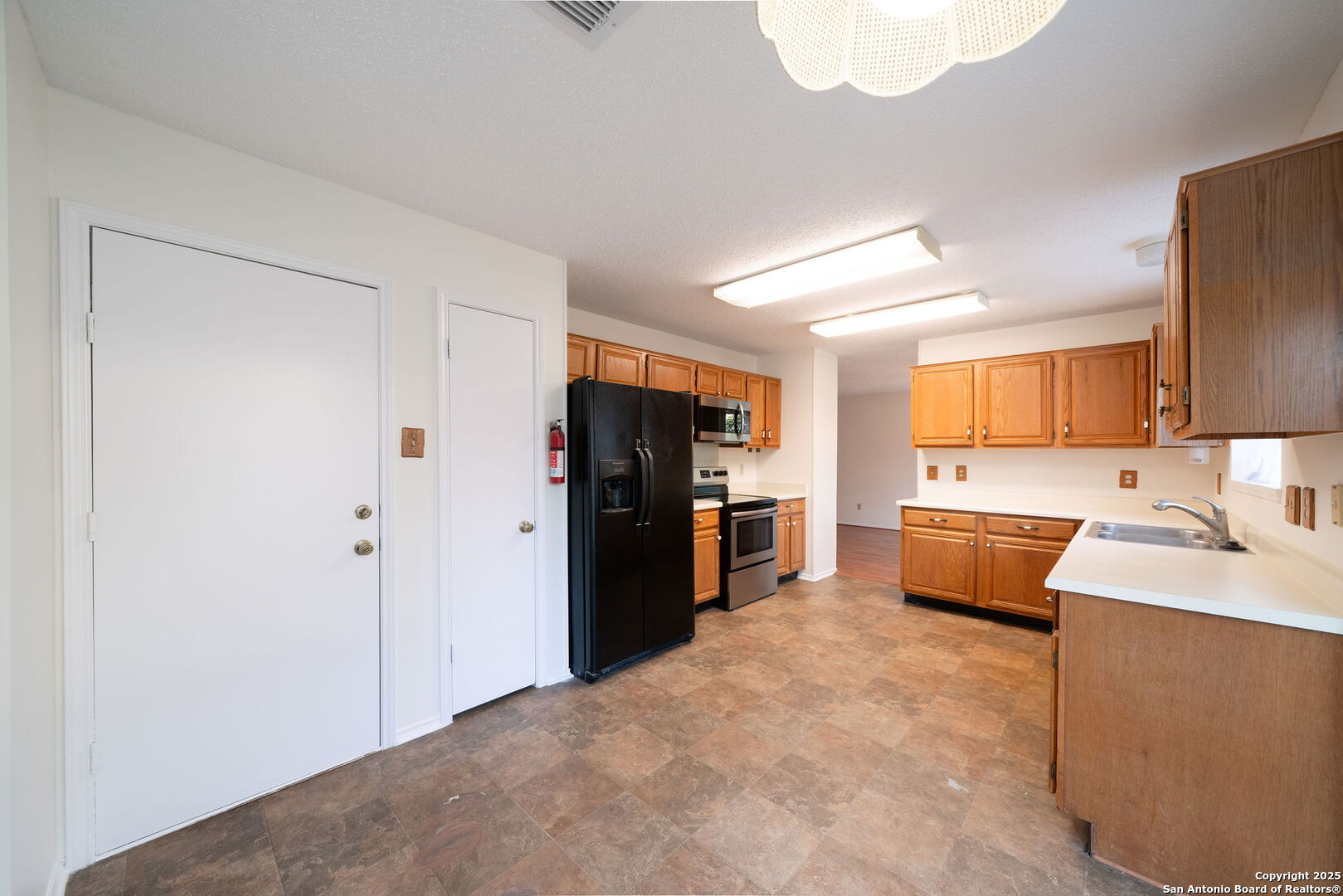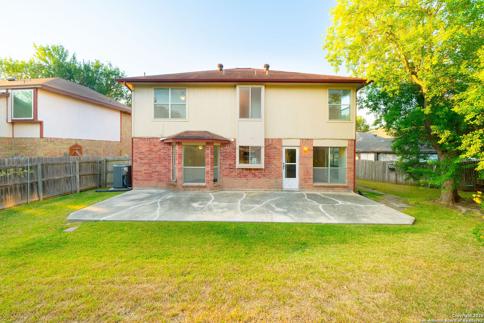 Charming home in Woodland Oaks neighborhood. This beautifully maintained two-story brick home is situated on a quiet cul-de-sac. Offering 3 spacious bedrooms and 2.5 bathrooms, this residence features an open concept living and dining area, highlighted by a cozy fireplace that adds warmth and character to the space.The generously sized kitchen provides ample counter space and storage, with its own dining area, making it perfect for both everyday living and entertaining. The primary suite offers a relaxing retreat with en-suite bathroom with a dual-sink vanity, separate standing shower, and soaking tub. Recent updates include brand new carpet and fresh interior paint throughout. Step outside to a private, fully fenced backyard with a patio slab ideal for outdoor gatherings or quiet evenings. This inviting home blends comfort, space, and functionality. Conveniently located to I35, 3009, Randolph AFB, and various dining and shopping options. Schedule your showing today!