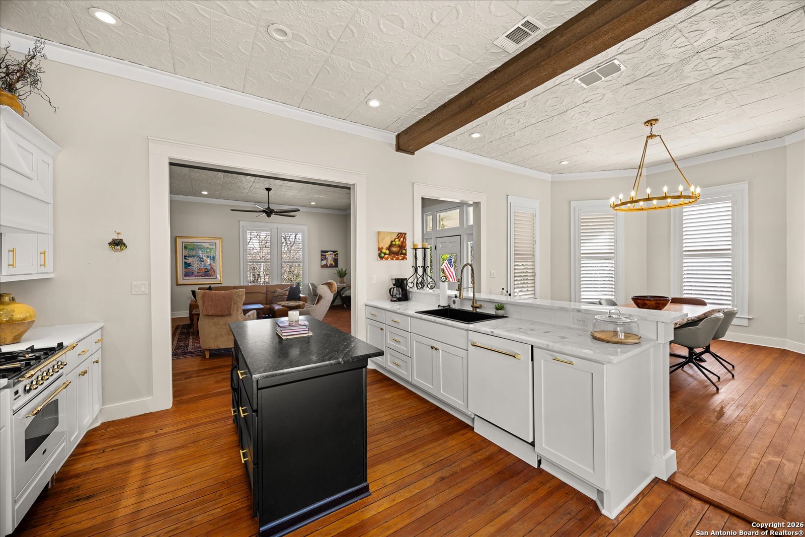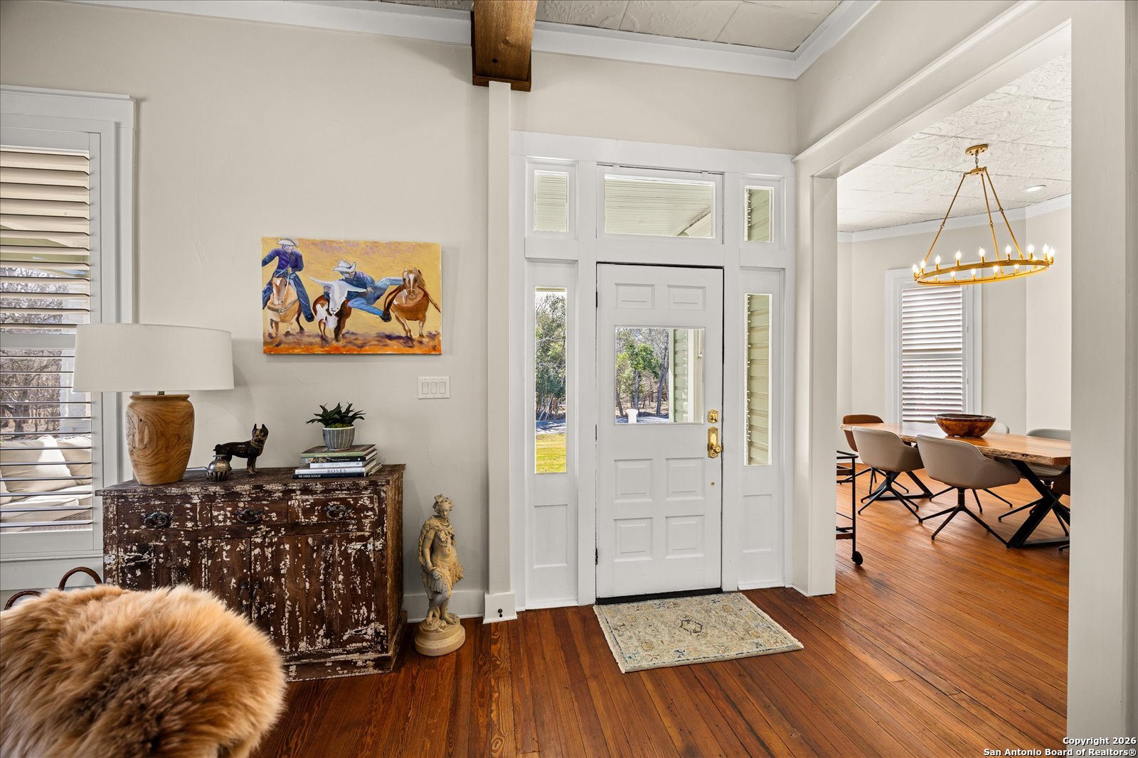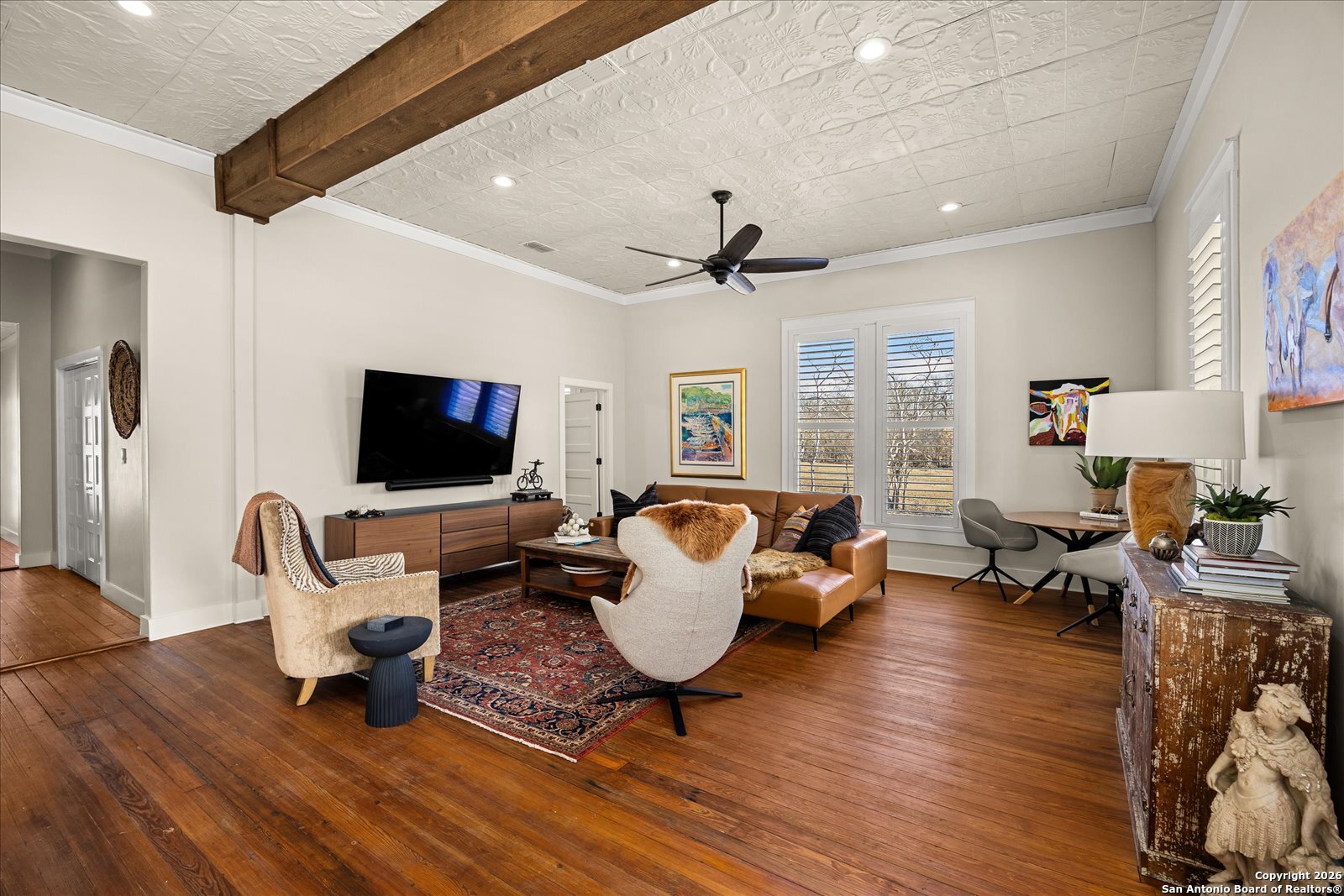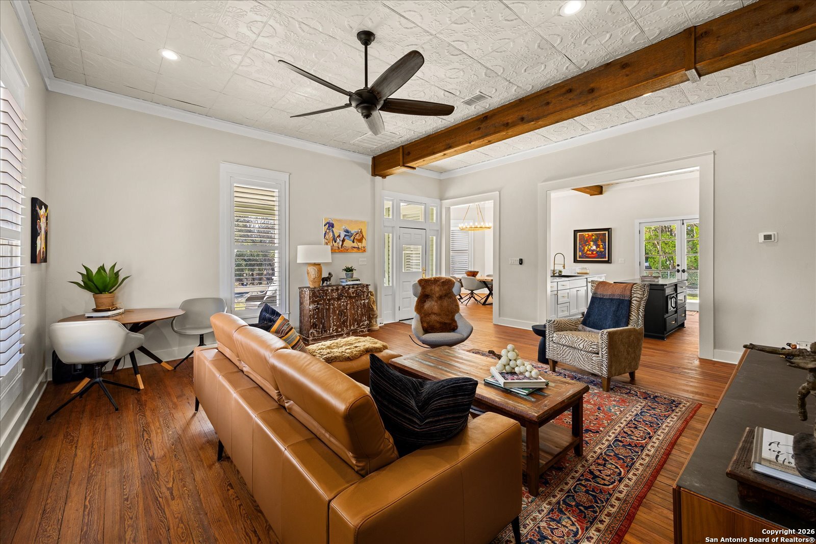 Beautifully restored 3 bed, 3 bath Folk Victorian located on the coveted High Street in the heart of downtown Comfort, where classic charm meets modern luxury. Tax records show 1940, but this is an early 1900's build that was relocated to this lot at least a half a century ago. Now included is the lot next door giving you almost half an acre to do as you please. High quality total renovation includes new roof, HVAC, plumbing, electrical, interior walls, and insulation. High ceilings with original long-leaf pine wood floors in the main living areas create a warm, open, and airy feel, while the reimagined floor plan and modern updates make it perfect for entertaining and everyday living. Light and bright! The chef's kitchen features top-of-the-line appliances, a breakfast bar, and a dedicated dining area. Bedrooms are generously sized, with two offering private en-suite baths. Enjoy quiet mornings and relaxed evenings on the expansive front porch, or unwind on the back patio-ideal for a fire pit under the stars, or put in a pool. Walking distance to Comfort's shops, restaurants, library, and entertainment. This property could make for a great short-term rental investment in one of Comfort's most desirable locations. Property is located in the 100 year flood plain near the confluence of Cypress Creek and the Guadalupe, but previous floodwaters on record have only reached the bottom corner of the extra lot.