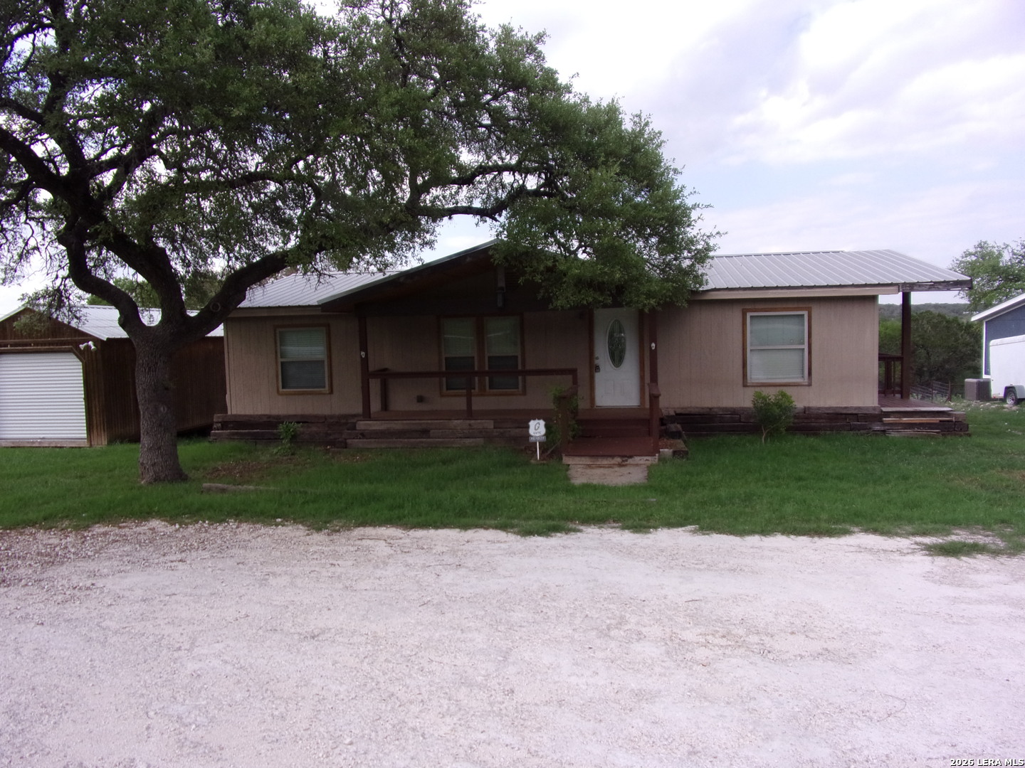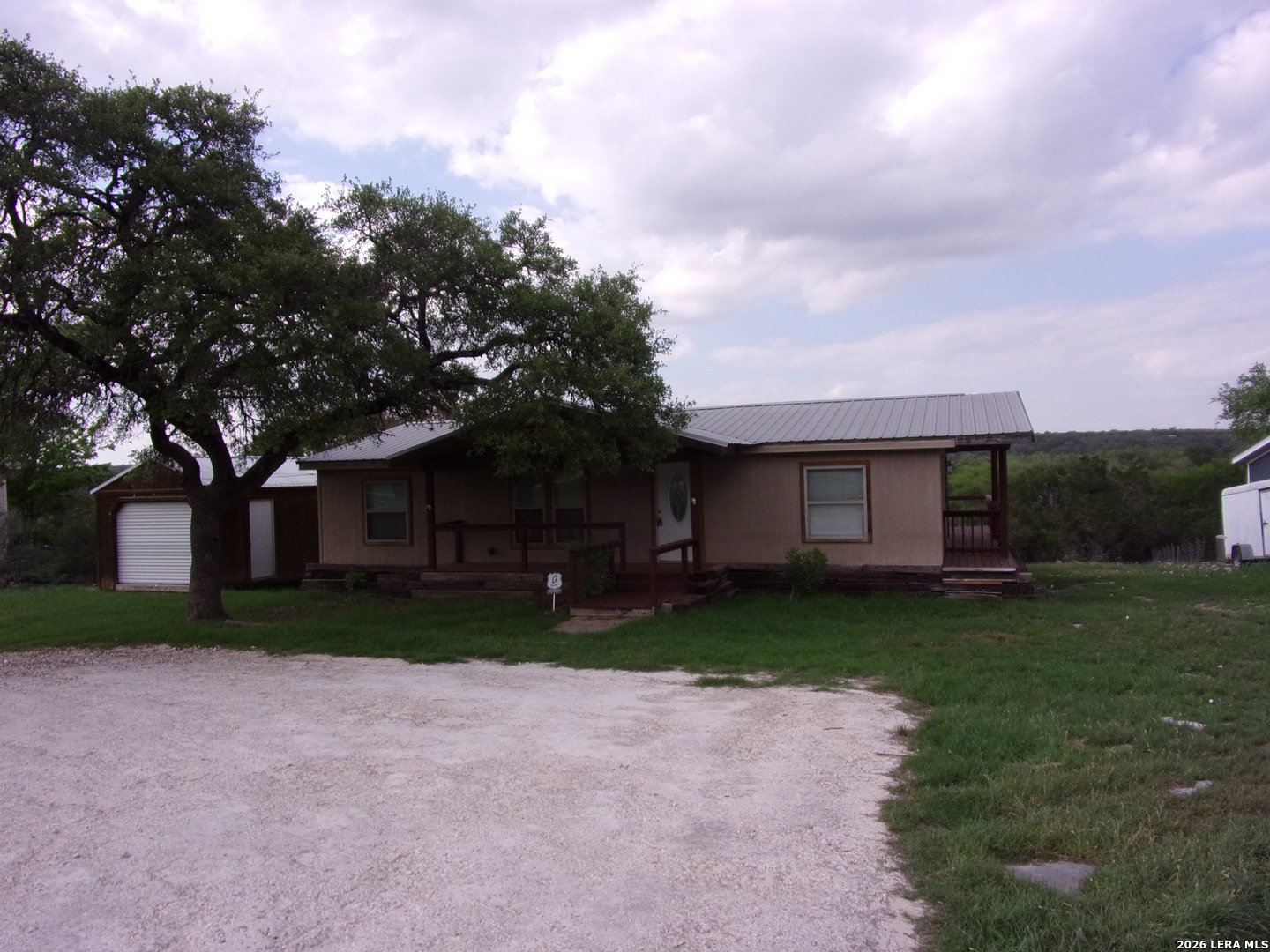 Updated 3/2 double wide mfg. home with hill country views! Home has been lovingly cared for & well maintained. Metal roof for durability. Open floorplan w/split bedroom layout. Laminate flooring in living areas & carpet only in the bedrooms. 15x17 Family room. Kitchen has maple cabinets, granite counters, ss appliances & pantry. Frig, washer & dryer are negotiable items. Master bath has double vanity & walk-in shower with multiple heads. BIG covered deck area off the back of the home. Chicken coop conveys! Detached 12x30 storage building has power. Circular driveway and gorgeous shade tree in front. Located across the street from Rebecca Creek Golf Club. Home has alarm system & appointments must be made in advance for all showings. Home is clean & ready for new owners today - take a look & bring us an offer!