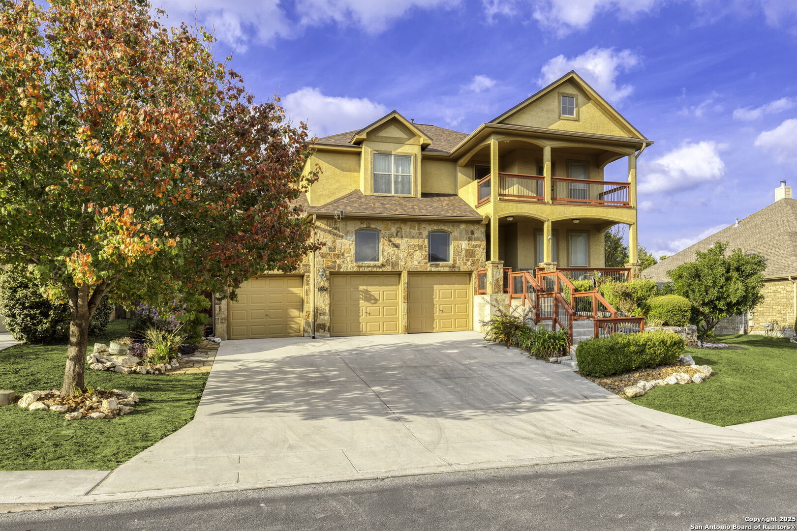 A superbly maintained 5BR 3.5 BA Whitestone Custom home. This home is complete with multiple decks/balconies to relax and have a spectacular view of the city and fireworks. Upgraded Oklahoma Stone/Stucco. Surround Sound in game and family Room. Floor to ceiling rock surround at fireplace. Outdoor oversized covered deck for entertaining or just relaxing. Well designed layout with Study/Office near front door followed by separate dining room. The 3 car garage is true benefit for storage or those additional recreational vehicles. A must see!!!