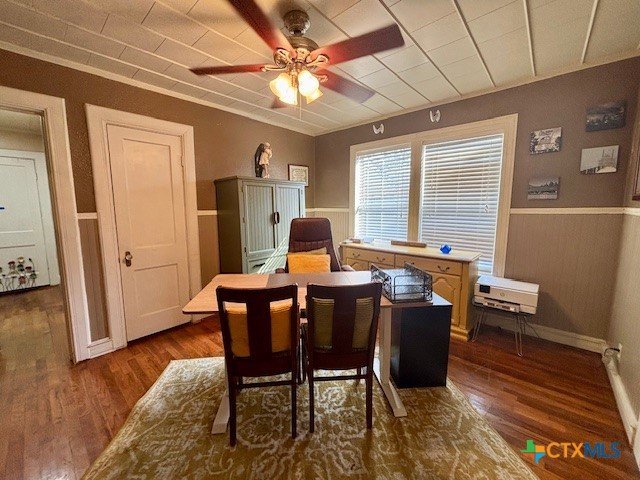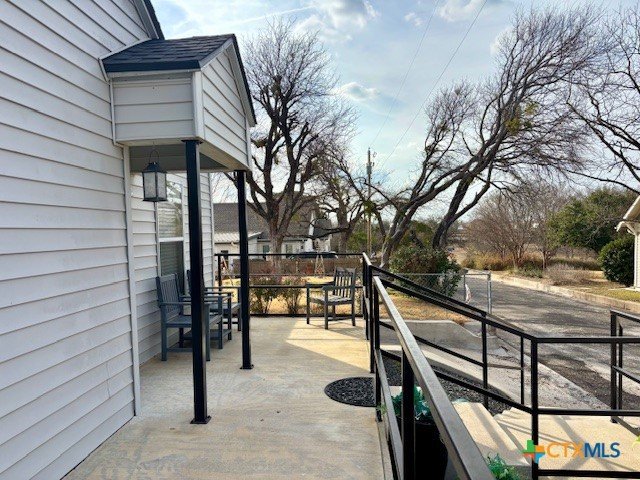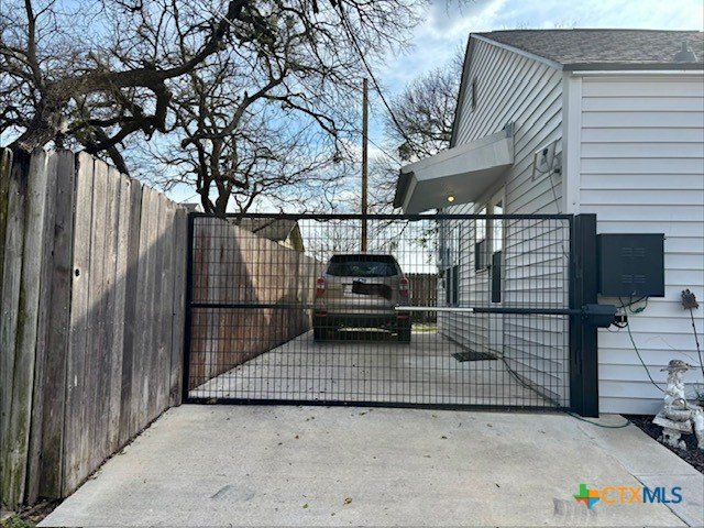 Located in the heart of Gatesville, this charming older home offers a beautiful view of historic Raby Park right from the front patio. This home is rich in character with wide white trim, wood doors, hardwood floors, and beadboard walls throughout much of the home. The inviting living room features built-in bookshelves and elegant French doors that open into the dining room, creating a warm and connected living space. The dining room, also accented with beadboard walls, is perfectly positioned between the living area and kitchen. The kitchen continues the home’s charming style while offering modern conveniences, including a gas range, built-in microwave, stainless steel refrigerator, and separate pantry cabinetry. Direct access to the concrete side driveway adds ease and functionality. All three bedrooms are generously sized. The third bedroom is currently used as an office and serves as a flexible space that could function as a den, sitting room, office, or bedroom. Both bathrooms offer a true spa-like feel with beautiful tile work, stylish vanities, modern fixtures, and updated mirrors. Just off the master suite is a ceramic-tiled multipurpose room ideal for use as a laundry area, master closet, or utility space. A 6 x 12 attached storage area at the rear of the home provides additional space and opens to the backyard. The backyard is designed for both privacy and relaxation, featuring a privacy fence, a charming, shaded flagstone patio area, and just enough room to enjoy the outdoors. The side driveway offers easy and secure access through a metal automatic gate. The upgraded front patio and sidewalk have been thoughtfully designed to complement the elevated entry and enhance the home’s curb appeal. This property offers the perfect blend of historic charm, modern updates, flexible living space, and an unbeatable downtown location near the parks, pool, splash park, food trucks, restaurants, library, and the town square.