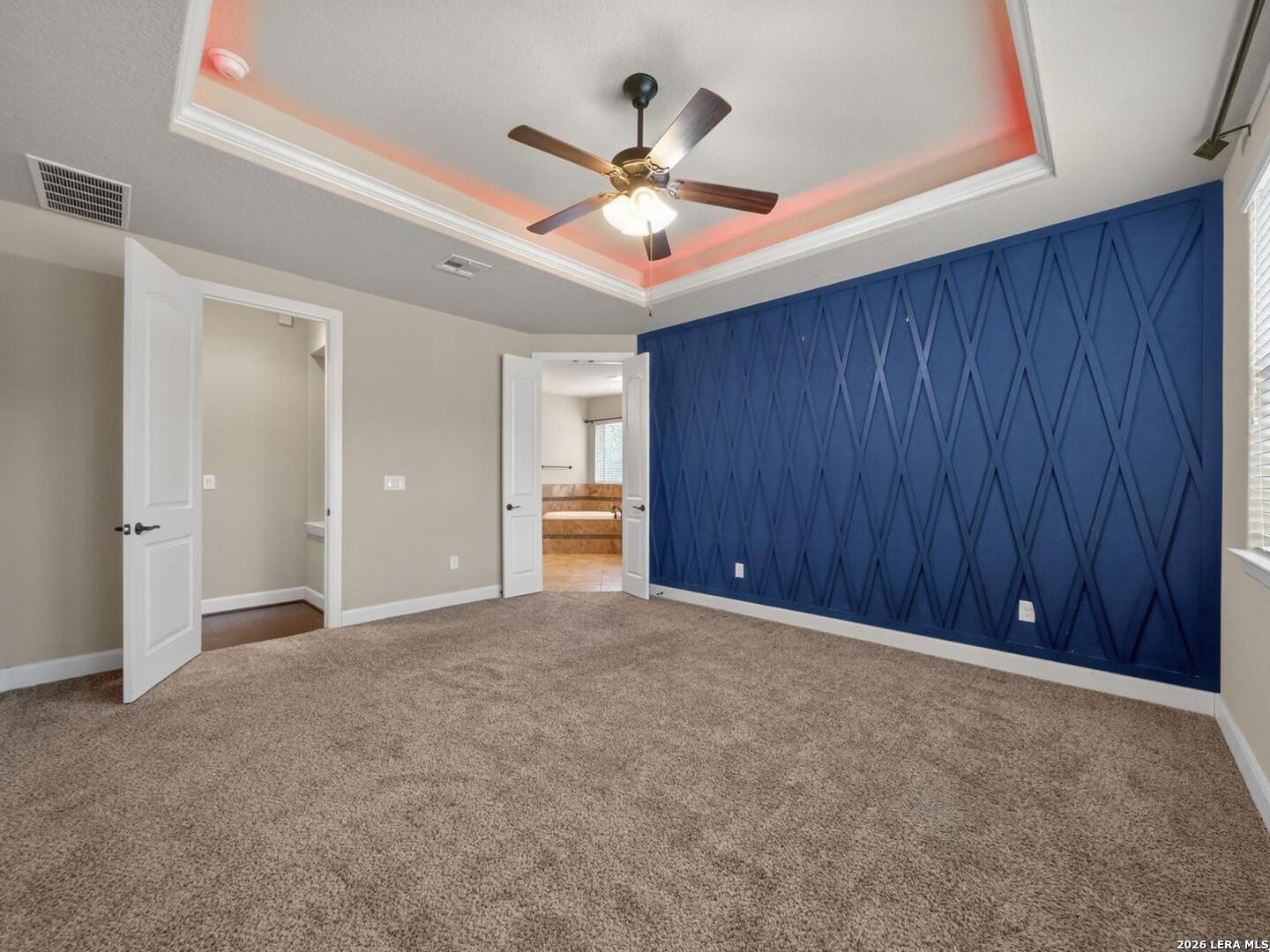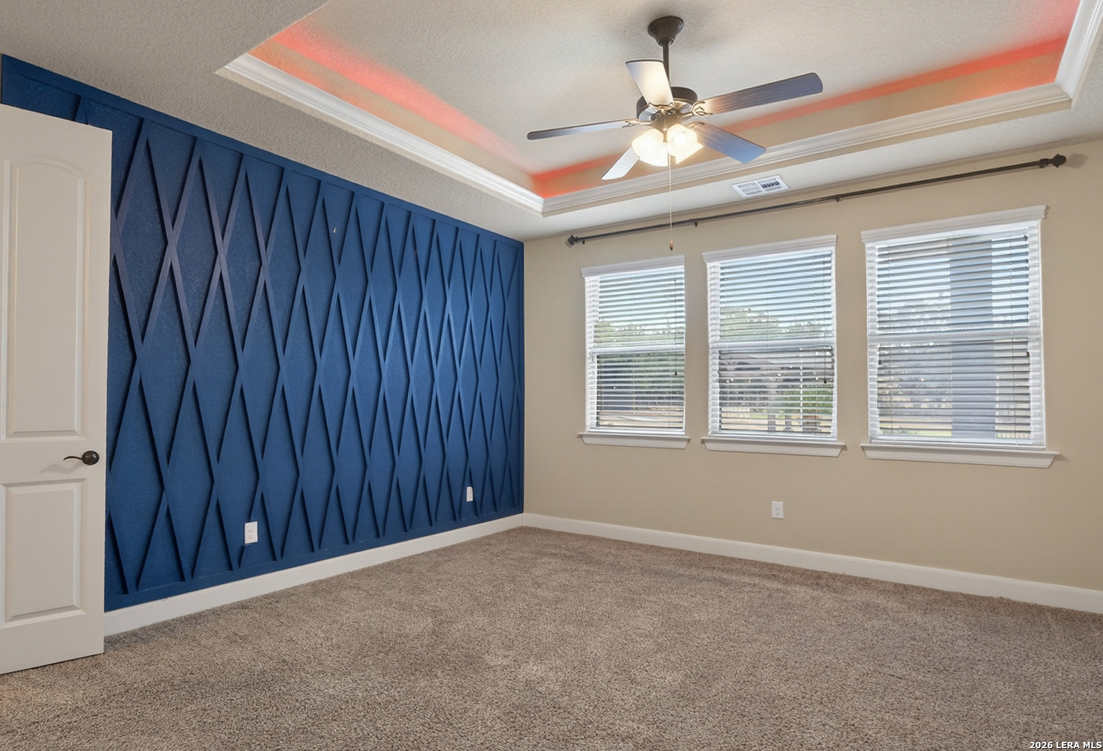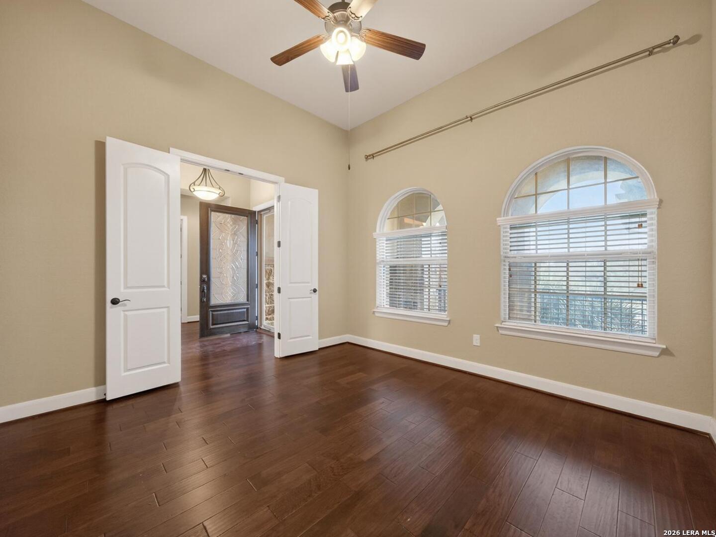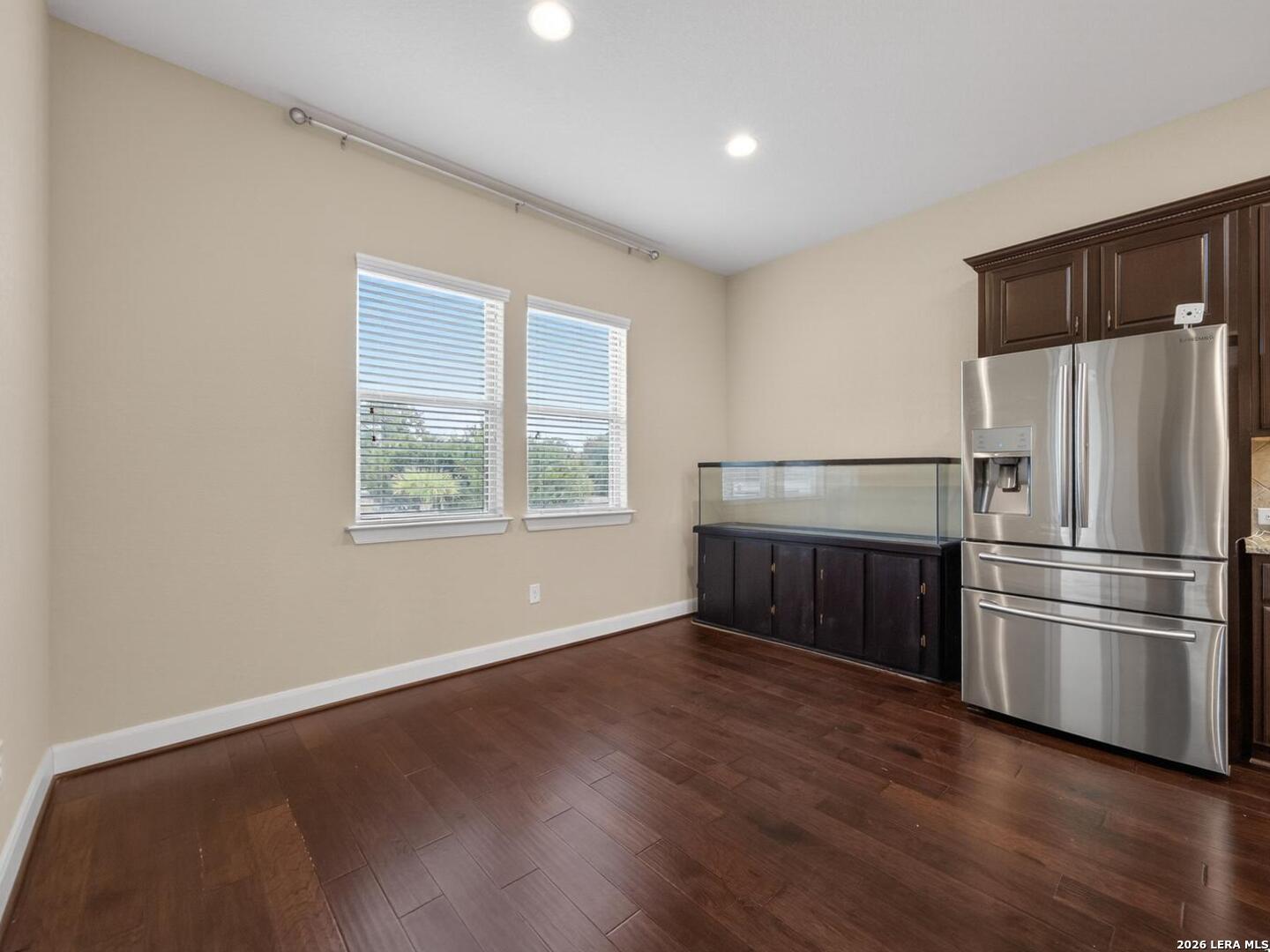 Welcome to your private 1.02 acre Texas retreat! This beautifully designed 4-bedroom, 3.5-bathroom custom home sits on a corner lot in a gated community, offering privacy, luxury, and space to entertain both inside and out, well-kept landscaping. Inside, the home features tall ceilings, crown molding, and beautiful floors throughout the main living areas. The open-concept layout includes a spacious living room with a stone fireplace and large windows overlooking the backyard. The gourmet kitchen is a dream for any chef, complete with granite countertops, dark cabinetry, stainless steel appliances, gas cooktop, and large island perfect for gatherings. Just off the kitchen, the sun-drenched breakfast area offers peaceful views of the backyard, while the formal dining room adds a touch of elegance for entertaining guests. The primary suite is a true escape, featuring a large bedroom with soft natural light and a spa-inspired bathroom with dual vanities, a soaking tub, a walk-in shower, and plenty of customized storage. Each of the additional bedrooms is generously sized, and the layout includes a private study, ideal for working from home. Step outside to enjoy your own backyard oasis. The large covered patio features a full outdoor kitchen perfect for entertaining year-round. Cool off in the sparkling in-ground pool or relax under the trees while enjoying the peaceful greenbelt view behind the home. This property blends upscale finishes, thoughtful design, and outdoor living in one incredible package. It's not just a home-it's a lifestyle!