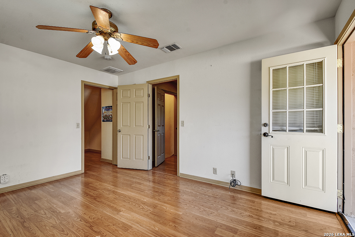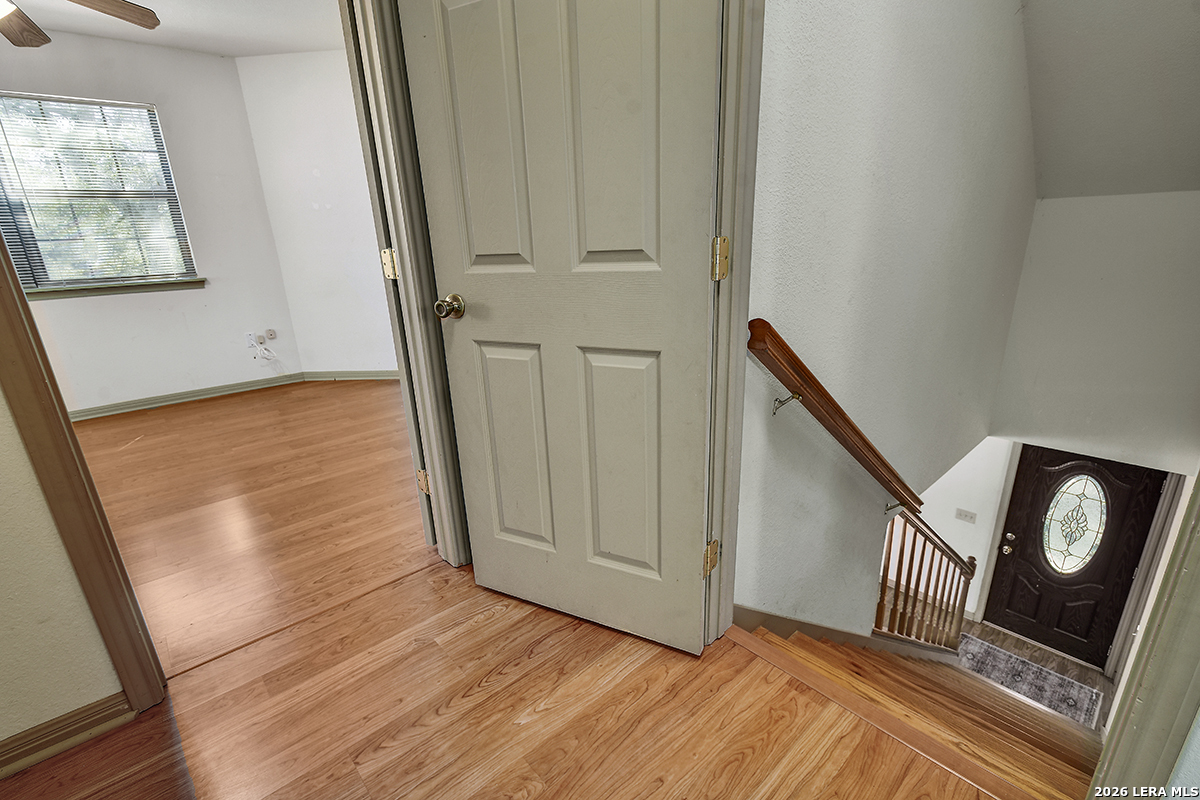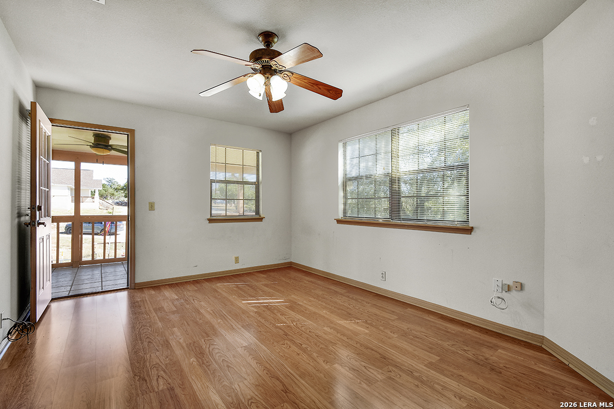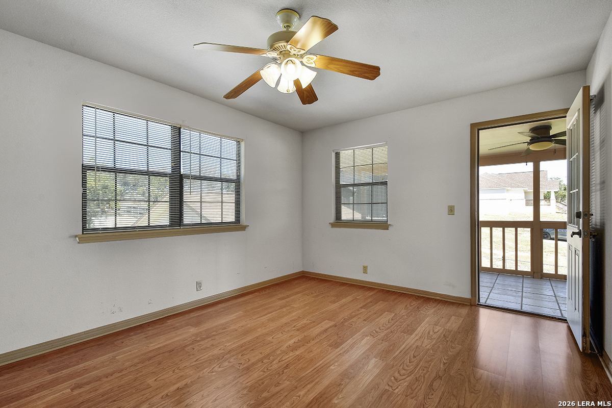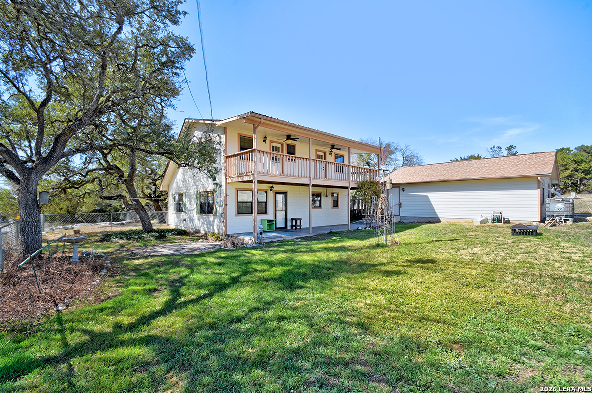 Charming 2-Story Hill Country Home on a Prime Half-Acre Corner Lot in Cypress Cove! Welcome to this spacious two-story gem nestled in the desirable Cypress Cove community, offering easy access to Canyon Lake recreation, Comal ISD schools, and peaceful wooded surroundings. Main level features include a master suite downstairs for ultimate convenience, open living areas, and everyday functionality. Upstairs, enjoy a versatile bonus room perfect for a game room, office, or guest retreat, plus a rare second-story outdoor balcony/porch-ideal for morning coffee or evening relaxation with breezy views. Generous walk-in attic storage, a detached garage workshop for hobbyists or projects, and an extra storage building perfect for your boat, car, or extra gear. Sitting proudly on a half-acre corner lot with room to roam, this property combines privacy, space, and community amenities like nearby lake access, parks, and clubhouse.