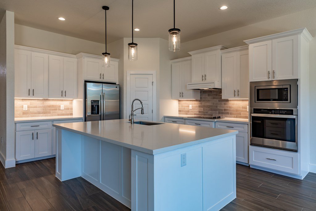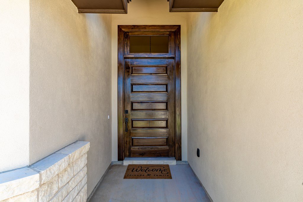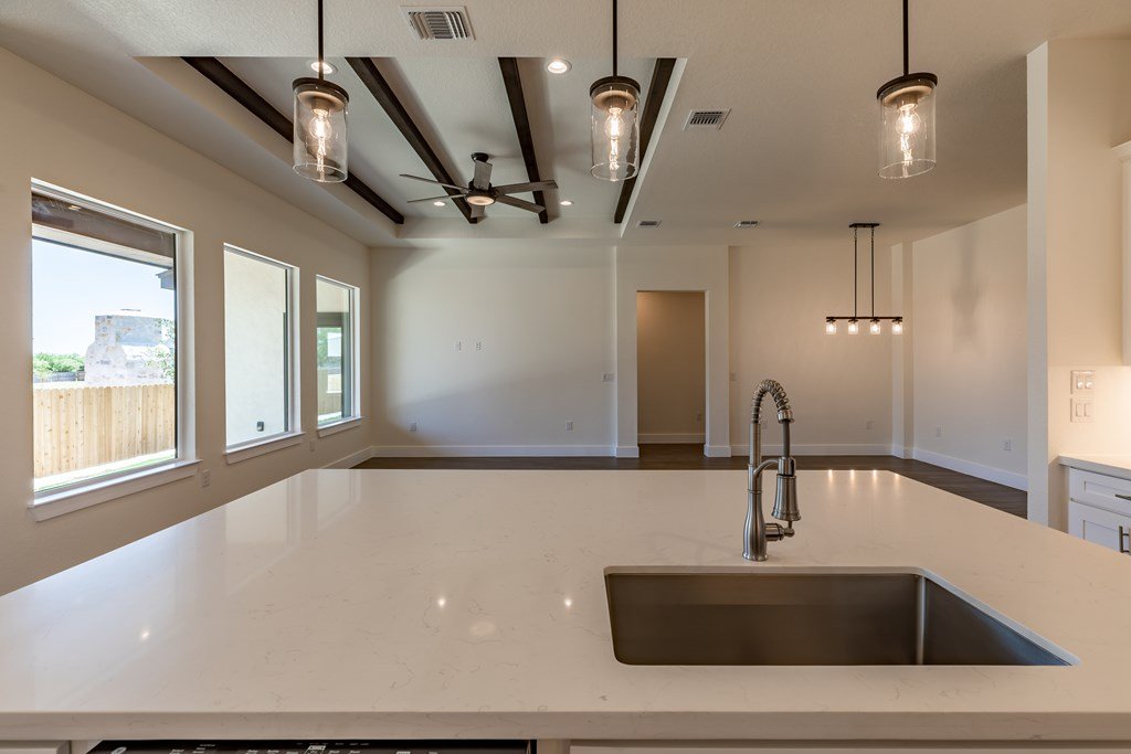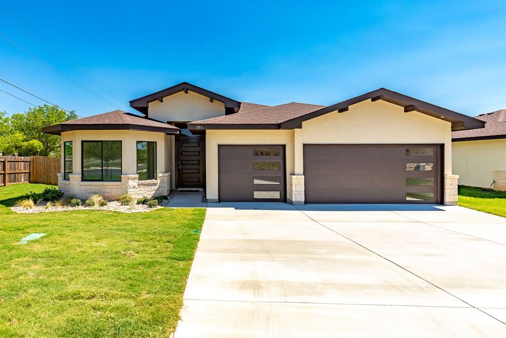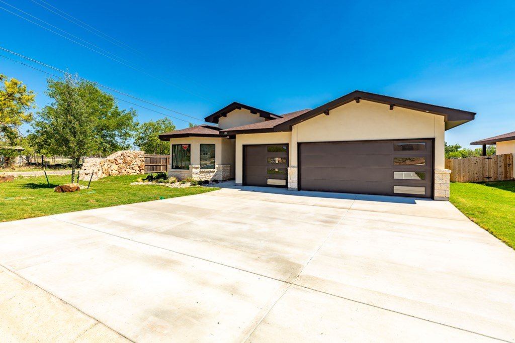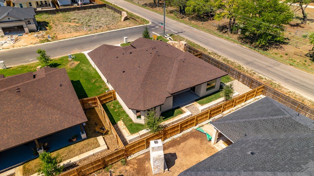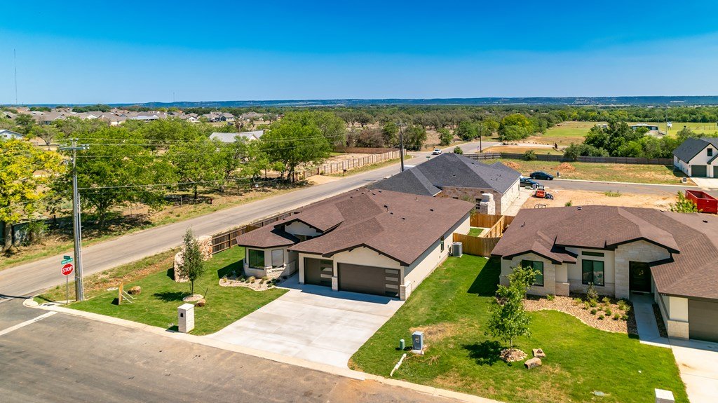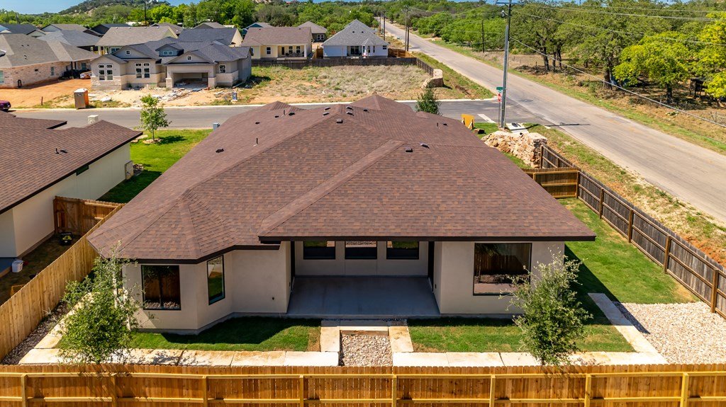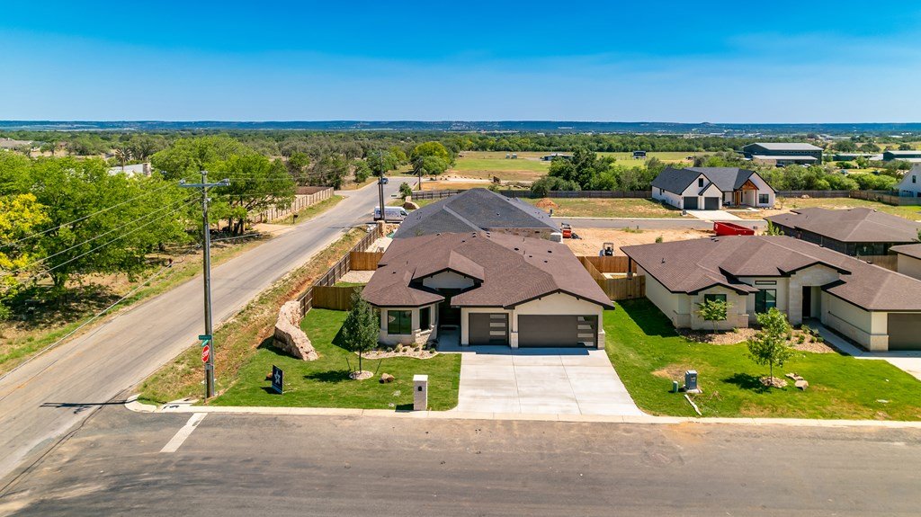 MOVE-IN READY! Enjoy this lightly lived in light, bright home on a great corner lot located in the Texas Hill Country Town of Fredericksburg. This open concept home features quartz counters, tile floors and 9' and 10' ceilings throughout. The kitchen has a large island/breakfast bar, pantry, lots of cabinets and includes a a range. The large primary bedroom includes a large en-suite with dual sinks, a generous roll-in shower, and walk-in closet. This is a split floorplan home and in addition to the primary suite there are 3 guest bedrooms -- one will make a great office, exercise room or media room. Plus an art-niche, drop-zone, utility room, and plenty of windows and a back patio to enjoy the Hill Country weather. Fenced back-yard. Landscaped yard and a 3-car garage.