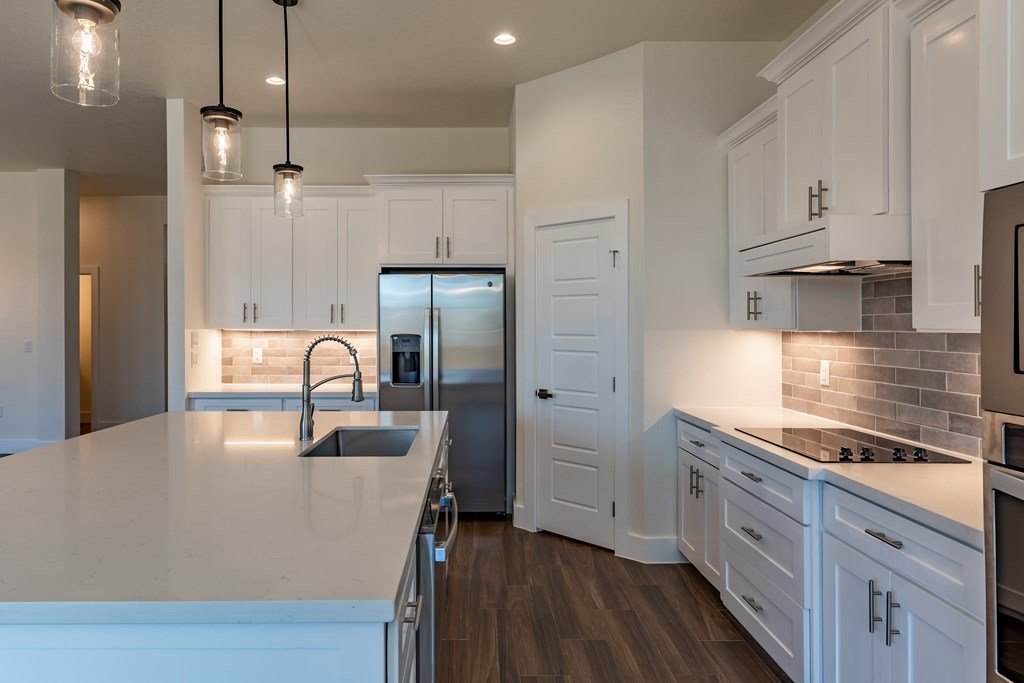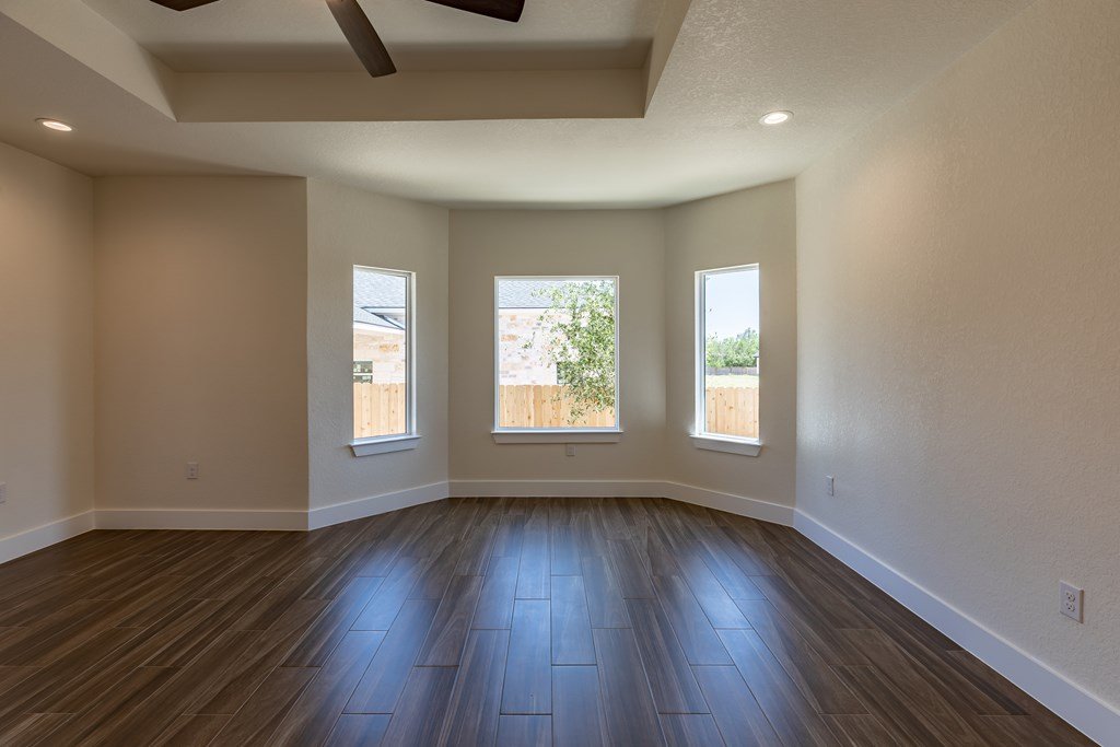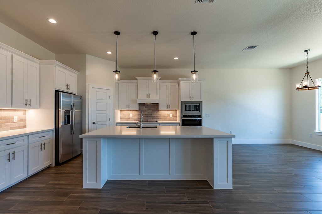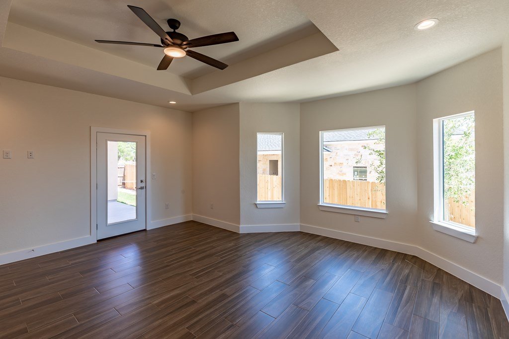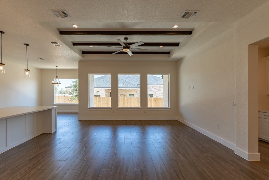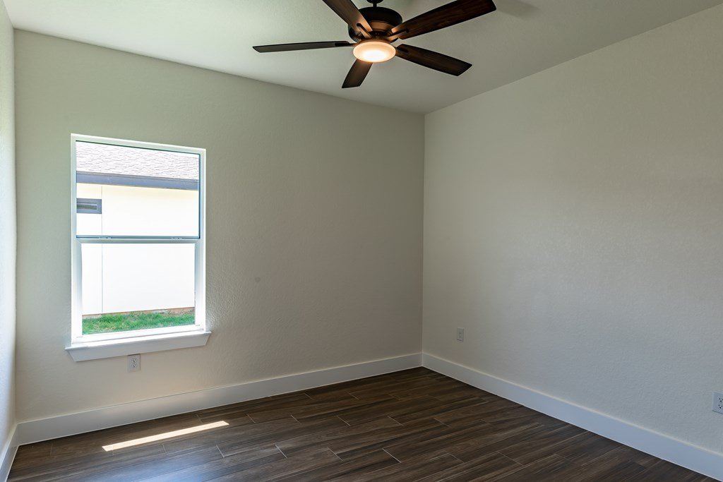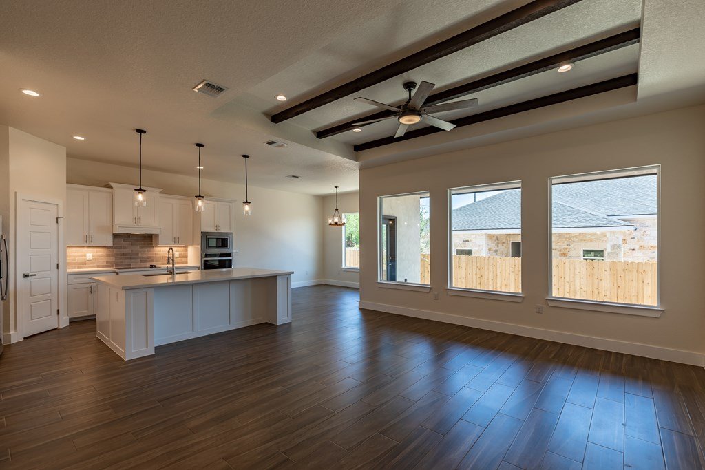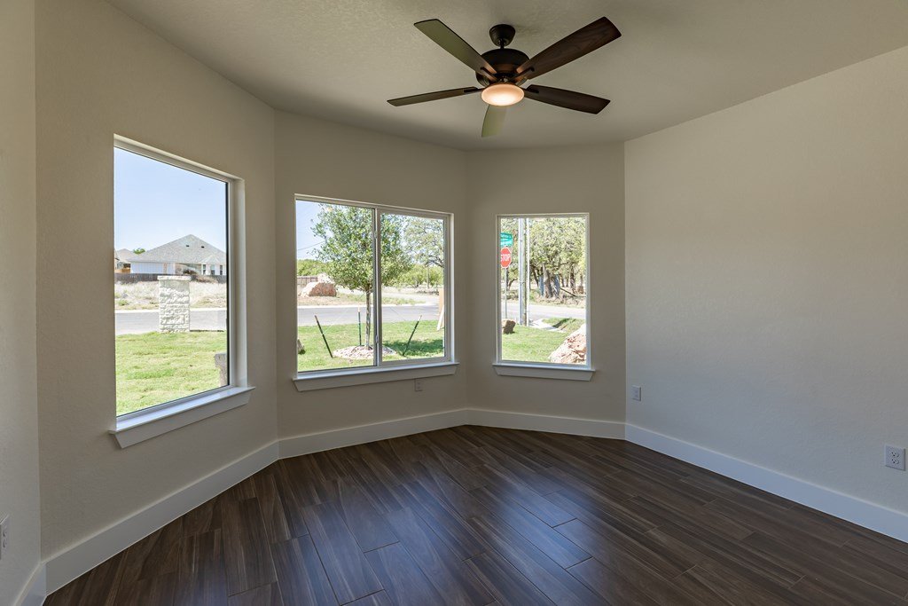 MOVE-IN READY! Enjoy this lightly lived in light, bright home on a great corner lot located in the Texas Hill Country Town of Fredericksburg. This open concept home features quartz counters, tile floors and 9' and 10' ceilings throughout. The kitchen has a large island/breakfast bar, pantry, lots of cabinets and includes a a range. The large primary bedroom includes a large en-suite with dual sinks, a generous roll-in shower, and walk-in closet. This is a split floorplan home and in addition to the primary suite there are 3 guest bedrooms -- one will make a great office, exercise room or media room. Plus an art-niche, drop-zone, utility room, and plenty of windows and a back patio to enjoy the Hill Country weather. Fenced back-yard. Landscaped yard and a 3-car garage.