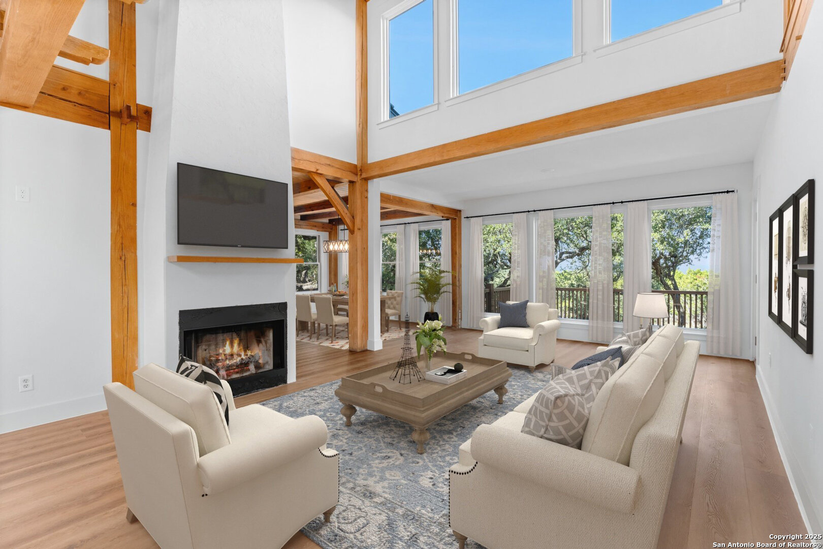 Welcome to an extraordinary residence that redefines Hill Country elegance on an elevated 3.19-acre private sanctuary. This stunning four-bedroom, three-and-a-half-bathroom home spans 3,373 square feet of thoughtfully designed living space, offering panoramic northern views over the picturesque Guadalupe River Valley. Step inside to discover an open floor plan enhanced by soaring ceilings and designer finishes that create an atmosphere of refined sophistication. Hand-crafted oak accent beams add dramatic architectural interest, while walls of light flood the interior with natural radiance. The recent complete remodel ensures every detail meets contemporary standards without the typical construction delays. The expansive outdoor living areas serve as natural extensions of the home's interior, featuring generous patios perfect for entertaining friends and family or simply savoring the tranquil beauty of the Texas Hill Country. Privacy and security are paramount with the property being fully fenced and gated, creating your own personal retreat. Nestled within the prestigious gated community of Cordillera Ranch, residents enjoy access to world-class amenities including championship golf, river access, parks, and equestrian facilities. This sought-after location combines the serenity of Hill Country living with convenient access to recreational pursuits and community offerings. The location provides additional advantages with award-winning Boerne schools serving the area. Texas residents benefit from favorable tax conditions, including no state income tax, no capital gains tax, no estate tax, and no inheritance tax. Kendall County maintains a competitive property tax rate of 1.39 percent. This remarkable property presents an exceptional opportunity to move into a completely renovated home immediately, avoiding the lengthy construction timelines currently facing new builds. The combination of quality craftsmanship, premium location, and turnkey readiness makes this residence particularly appealing for discerning buyers. The elevated lot position enhances both privacy and views while the sophisticated interior design creates spaces ideal for both daily living and special occasions. With its blend of luxury finishes, outdoor entertaining potential, and prime Hill Country location, this home represents the perfect marriage of comfort and elegance in one of Texas's most desirable communities.