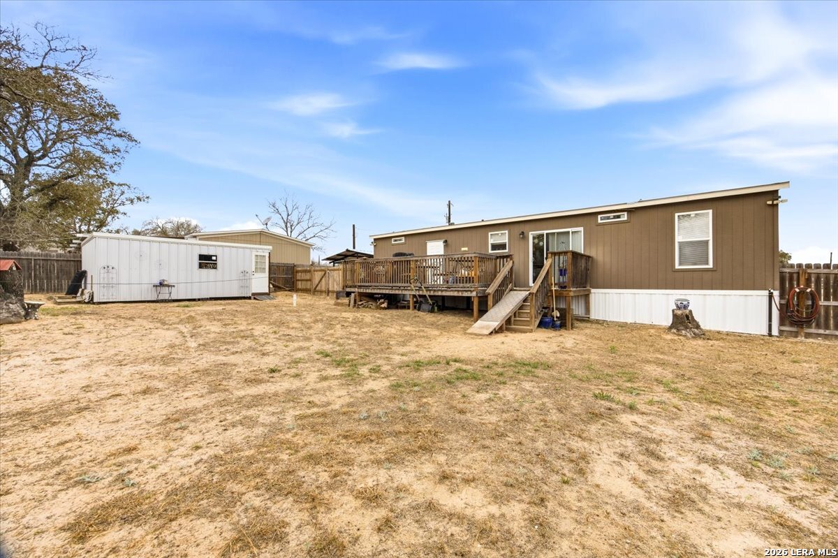 Enjoy peaceful country living just outside San Antonio at 101 Ricky Ridge! This 3-bedroom, 2-bath manufactured home sits on a spacious half-acre lot and offers the perfect blend of comfort, affordability, and room to spread out. Inside, you'll find an open living concept filled with natural light, creating a welcoming space for everyday living and entertaining. The kitchen offers ample cabinet and counter space, while the primary suite provides a private retreat with its own full bath. Two additional bedrooms and a second full bath offer flexibility for guests, or a home office. Step outside and enjoy both the front and back decks, perfect for morning coffee, evening sunsets, or weekend gatherings. The property features several mature trees that provide shade and character with string lights for added ambiance. And with the carport for covered parking and a storage shed for tools, equipment, or hobbies, you'll be set for this turnkey move in. With room for a garden, workshop, RV, or simply open space to enjoy, this property delivers the freedom of country-style living while remaining conveniently located near San Antonio amenities. Schedule your showing today and see the potential for yourself!