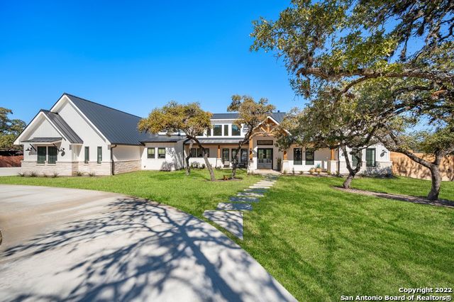 A stunning take on a modern farmhouse, exquisitely designed featuring grand-scale living spaces and elegant architecture setting the scene. Light-filled living with gorgeous hard wood floors, soaring cathedral ceiling and walls of windows for seamless indoor-outdoor living. The chef's kitchen features custom solid wood soft close cabinetry, oversized quartzite island / countertops and professional grade stainless steel appliances with gas cooking. The master retreat features a vaulted ceiling with shiplap / wood beam accents, outdoor access and a barn door leading you into the spacious bathroom illuminated by natural lighting with a double sided walk in shower / garden tub, large walk in closet with extensive built-ins. Impeccable craftsmanship prevails with three spacious guest bedrooms. Enjoy a large game room with a separate media room leading to the outdoors. An entertainer's delight with a resort style setting found outdoors complete with a premier Keith Zars pool with mosaic tile details, oversized covered patio with full outdoor kitchen and mature trees along the back creating a great buffer for added privacy.