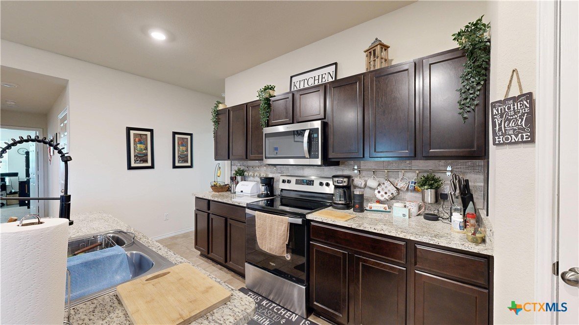 Gorgeous and very well taken care of home in Patriots Ridge now available at $225,000!! 3 large bedrooms, 2 full baths, 2 car garage welcome you to the neighborhood. Minutes away from Fort Hood this home boasts functionality and curb appeal. Tiled flooring throughout except for bedrooms, open floorpan with kitchen open to dining and living rooms, island, granite countertops, espresso stained cabinets, stainless steel appliances. Split floorplan for maximum privacy. Fully privacy fenced in backyard, covered patio for legendary Texas BBQs, immaculate landscaping, pavers and shed in the backyard. Hurry, contact your favorite agent to set up your private viewing today!