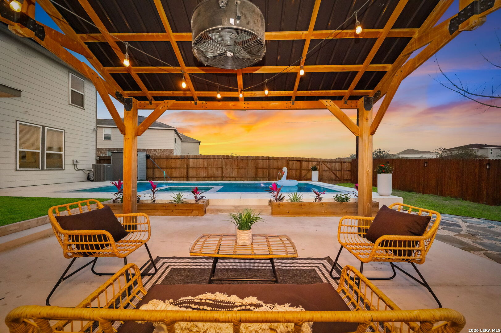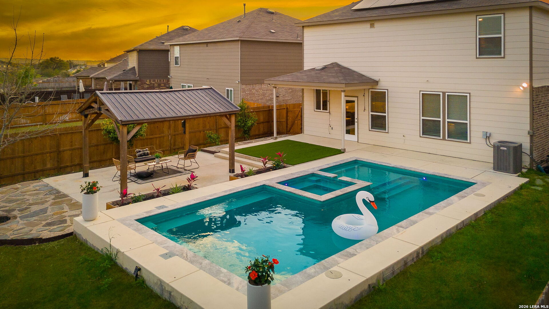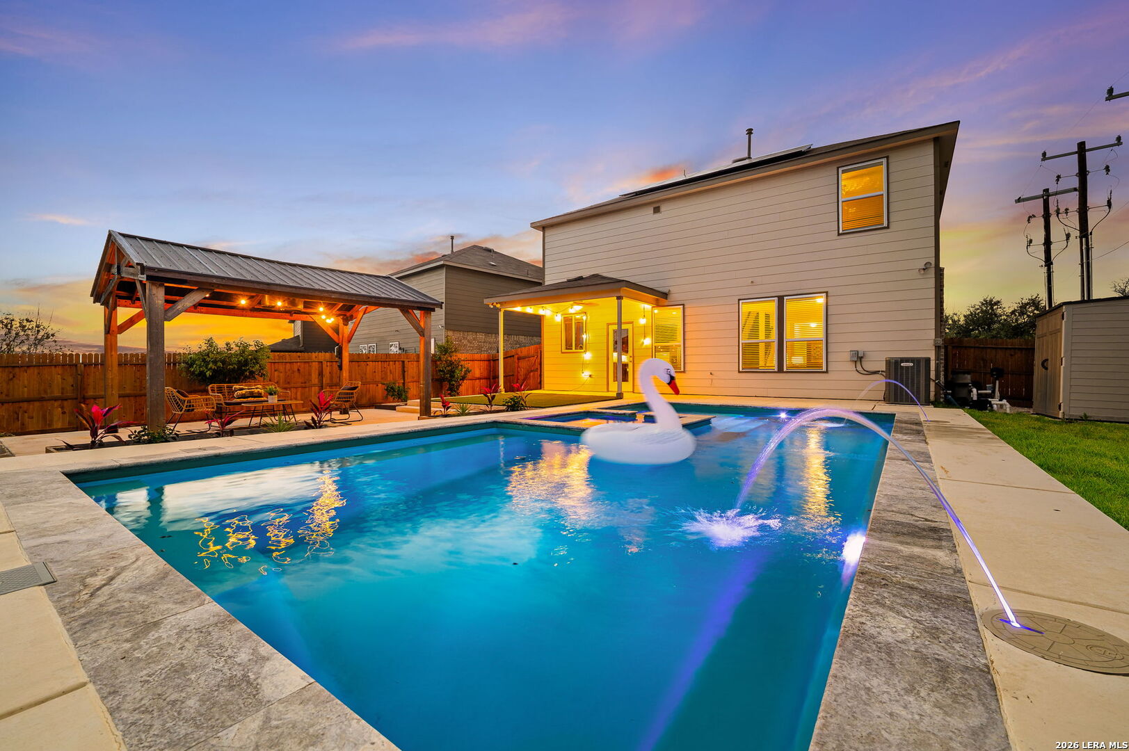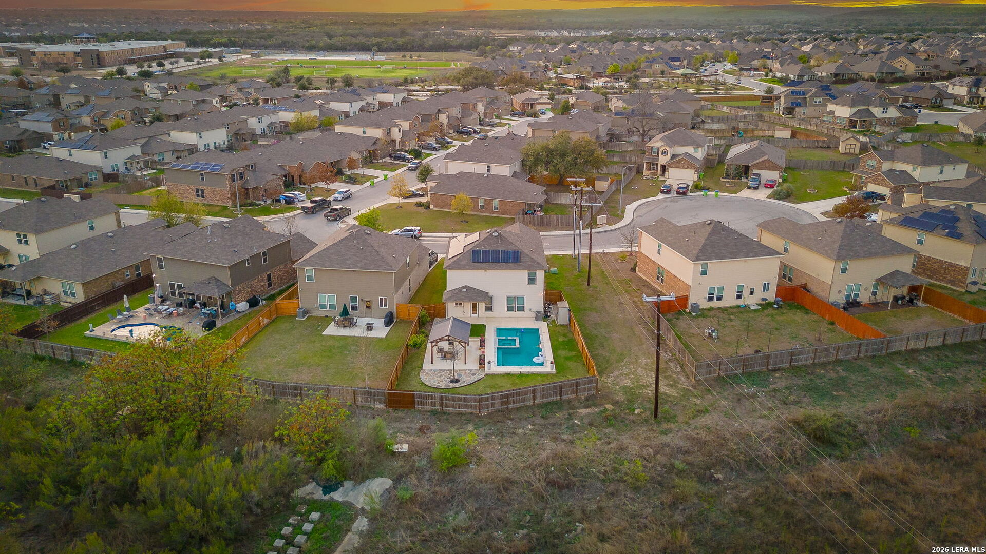 Backyard paradise awaits!!! This 2600 sq ft home boasts a stunning in-ground pool with an attached hot tub, a covered patio and cabana, and the privacy of no back neighbor creating the perfect space to entertain or relax. To make this home even cooler- it runs on solar panels!!! The floorplan checks every box- 4 bedrooms, 3 full bathrooms, an office, a loft, and a huge primary bedroom suite. The primary suite closet is so big it could be the 5th bedroom. The kitchen features gas cooking, sleek granite countertops, all stainless steel appliances, and 18 kitchen cabinets! For your convenience the refrigerator, washer, dryer, water softener, and blinds in every window is included. Located in the desirable Davis Ranch community that backs up to the sprawling wilderness of Government Canyon State Park with miles of hiking trails. An easy walk to the highly rated elementary and middle schools, and less than 2 miles to the new Sotomayor High School. This is truly a rare gem of a home that will likely sell fast, so book your tour today! Or come by the open houses this Saturday and Sunday 3/14 & 3/15 from 1-4pm.