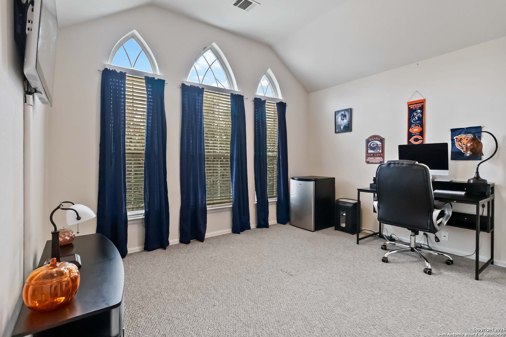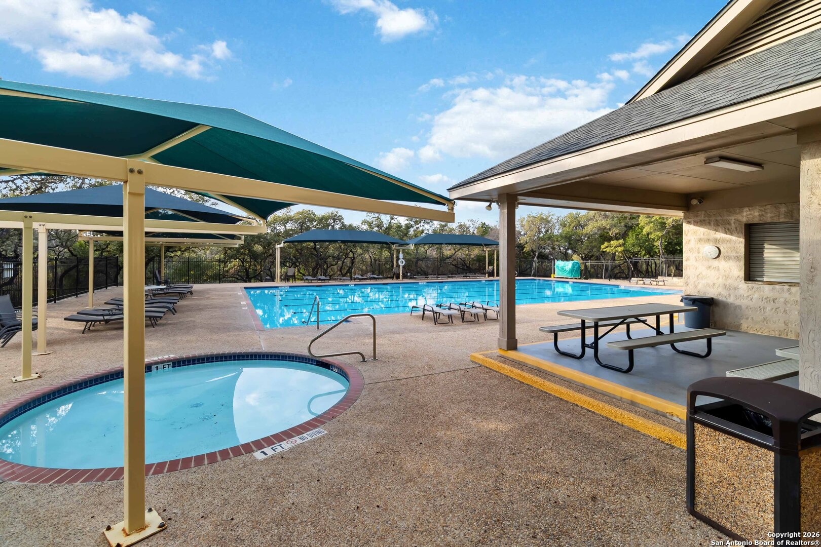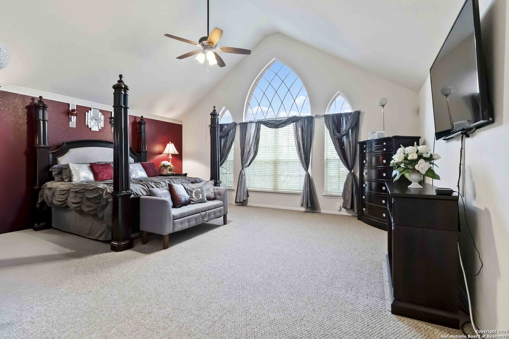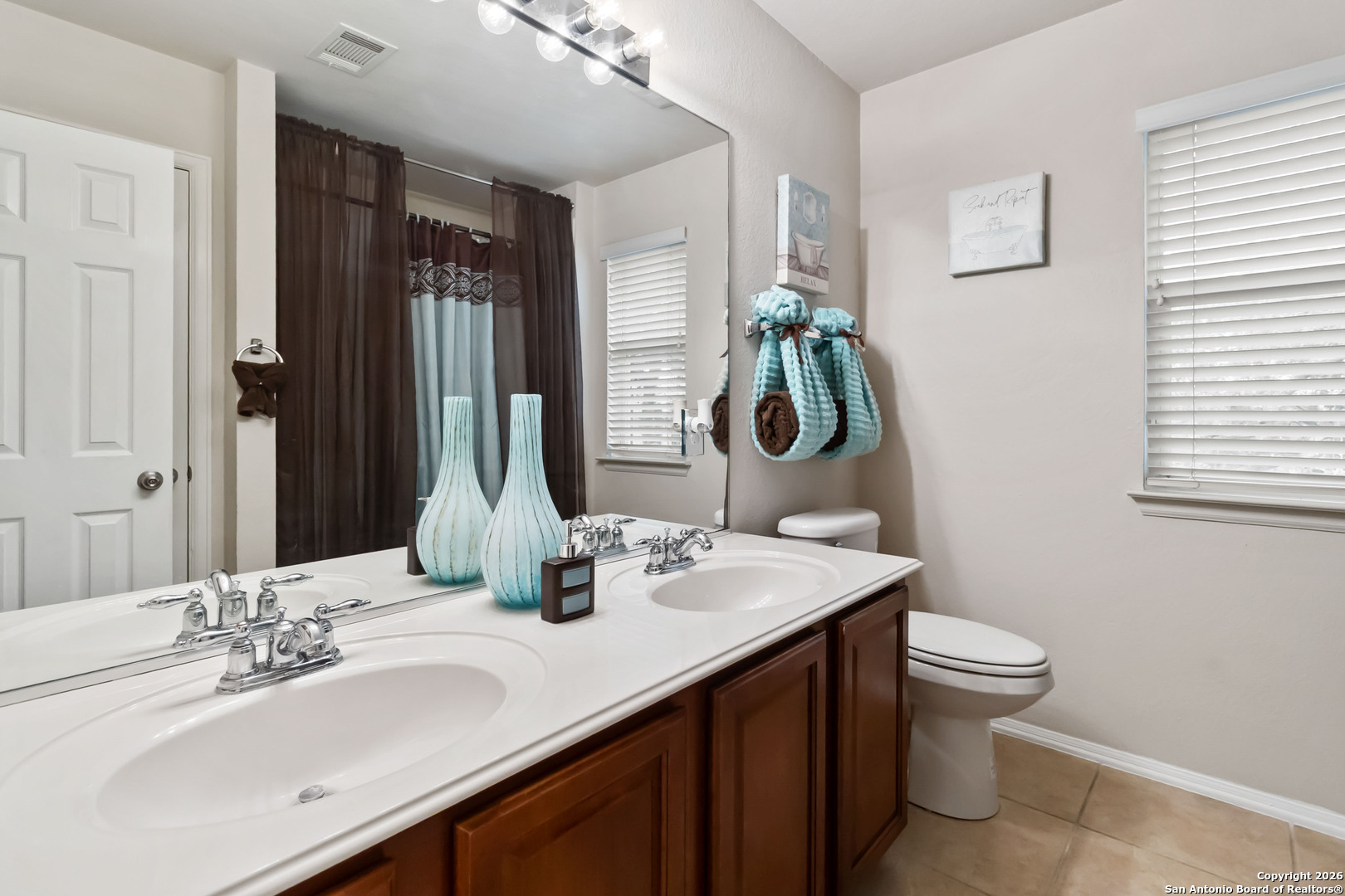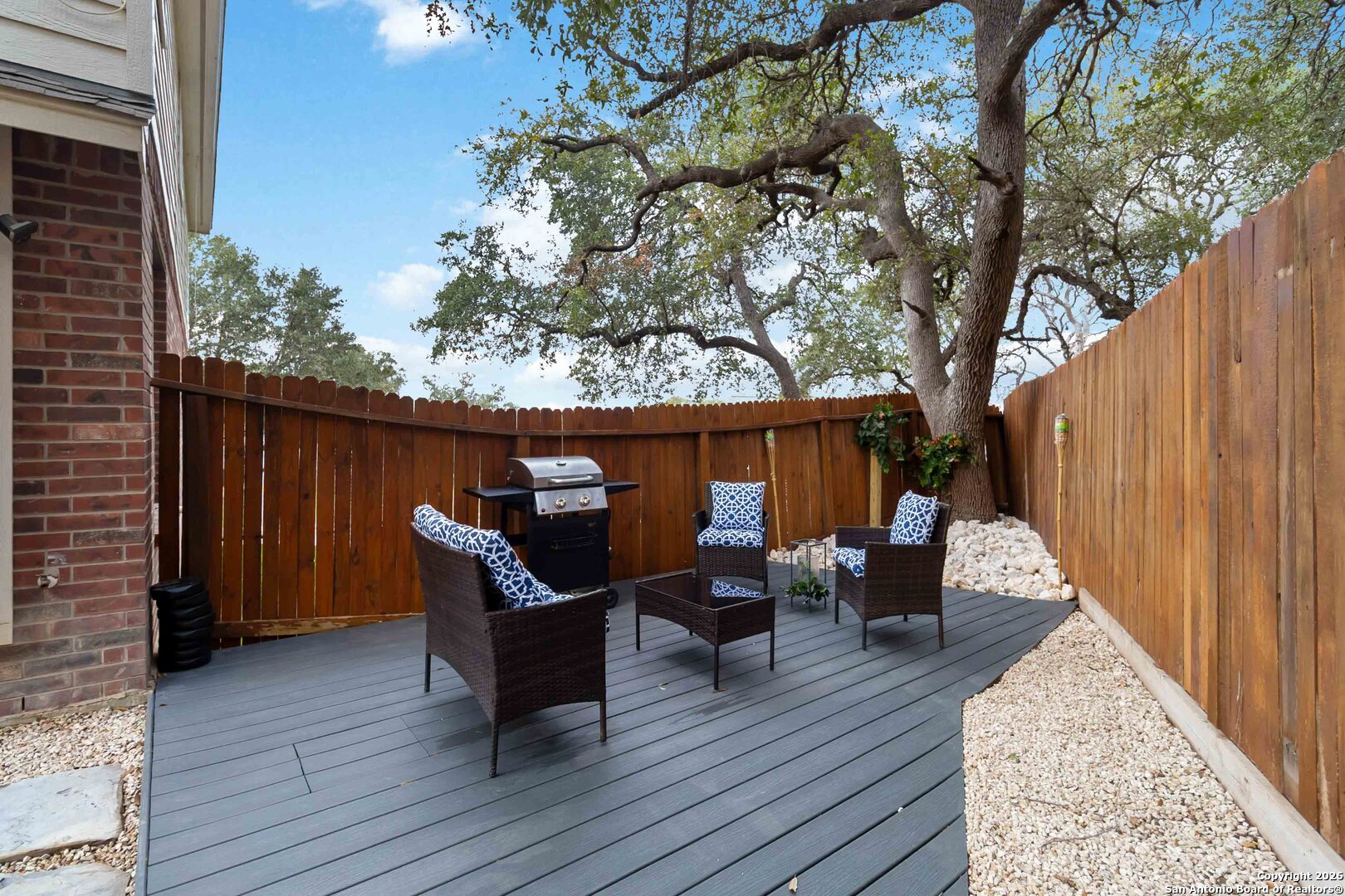 Professional movers are standing by to make your transition effortless into this pristine five-bedroom home, located in the highly sought-after Stonegate Hill community. This private, gated enclave is nestled in the serene Westover Hills area, surrounded by majestic old-growth trees that offer a peaceful retreat from city life. Inside, classic arched windows flood the home with natural light, creating a warm and welcoming ambiance. Relax in the cozy living room by the fireplace, host memorable gatherings in the elegant formal dining room, and enjoy cooking in the expansive, well-appointed kitchen. A convenient guest bedroom with a separate bath is located on the main level-perfect for visitors or multigenerational living! Upstairs, the secluded primary suite is a true sanctuary, featuring a luxurious bathroom en-suite with a jetted tub, double vanities, and a spacious walk-in closet with custom organizers. A second living/media room and three additional bedrooms complete the upper level, offering flexible space for work, play, or relaxation-five bedrooms in total to suit every need. This home sits on just over a quarter-acre and features a fully fenced, level backyard, offering ample space for outdoor fun, entertaining, or simply enjoying a quiet evening BBQ on the shaded patio. The current owners have meticulously maintained the home and have utilized an extended residential service program for annual maintenance and repairs-an added benefit that will transfer to the lucky new owner!! As a resident of Stonegate Hill, you'll enjoy exceptional amenities including a sparkling pool, tennis and basketball courts, a shaded playground, clubhouse, picnic areas, a community swim team, and year-round social events that truly foster a sense of community. Location truly sets this home apart. Enjoy close proximity to top-tier healthcare, shopping and dining, convenient freeway access, highly rated NISD schools, and popular attractions like SeaWorld and Santikos Movie Theater-all just minutes away. Don't miss this opportunity to own a beautiful home in one of the area's most desirable communities!