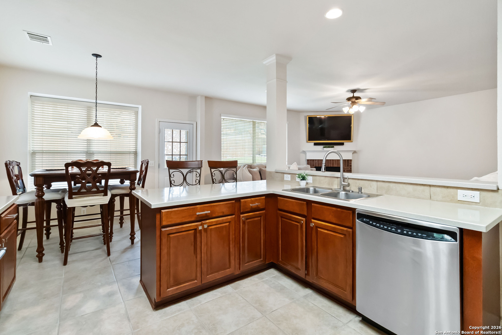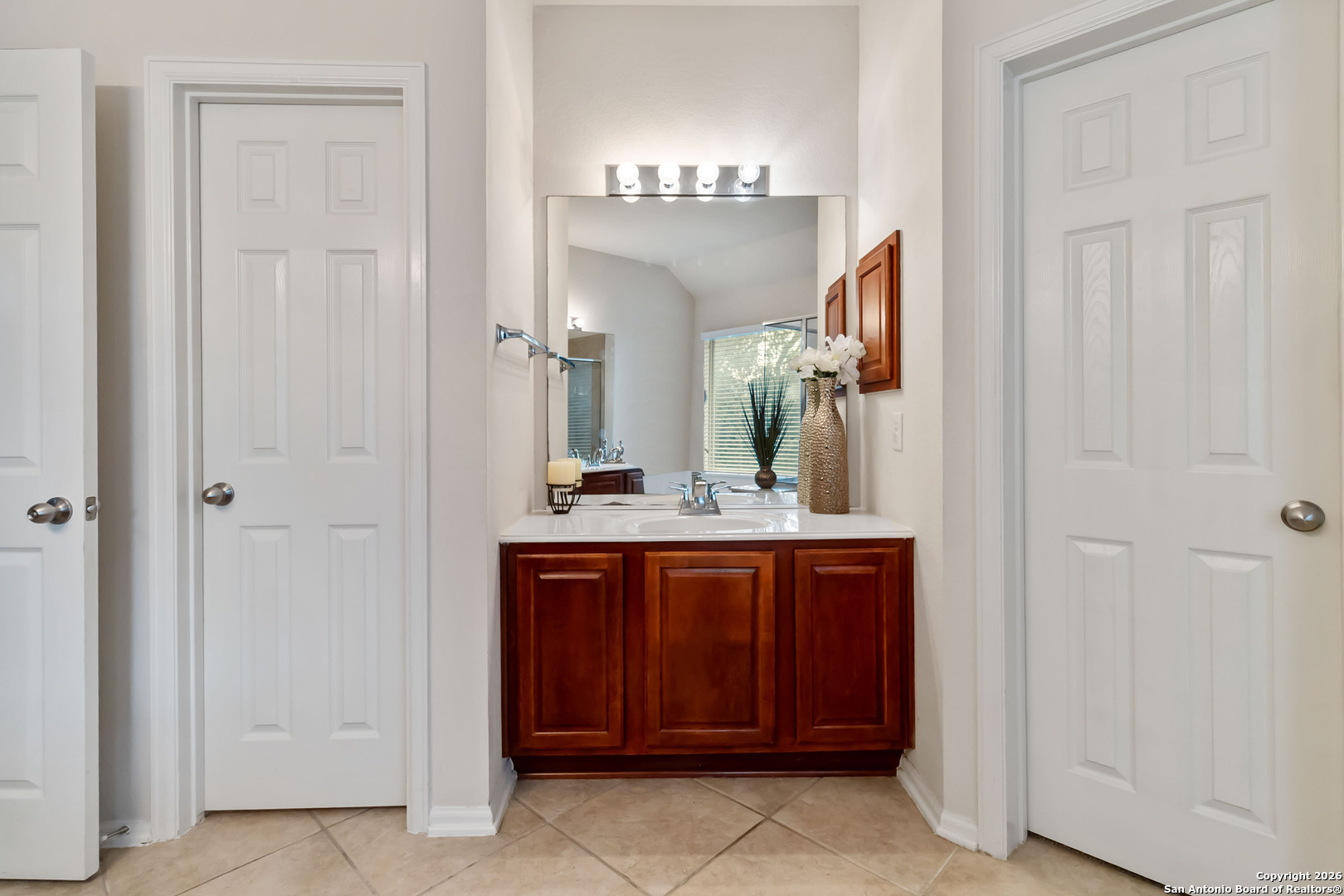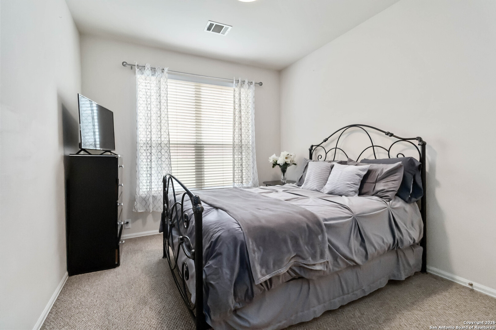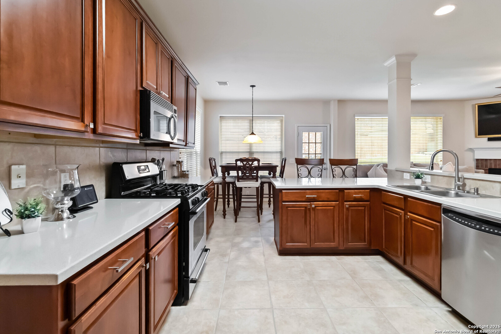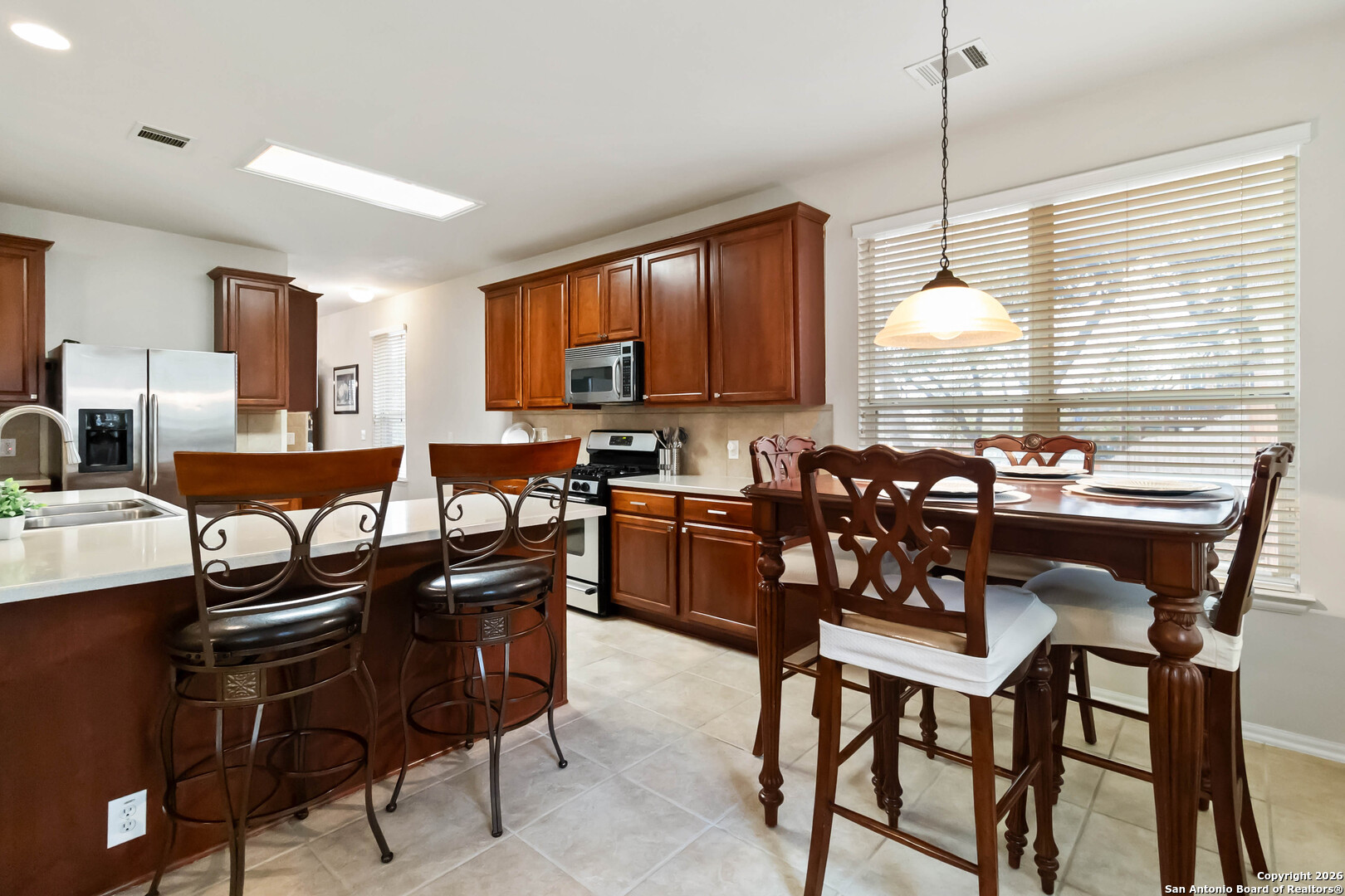Professional movers are standing by to make your transition effortless into this pristine five-bedroom home, located in the highly sought-after Stonegate Hill community. This private, gated enclave is nestled in the serene Westover Hills area, surrounded by majestic old-growth trees that offer a peaceful retreat from city life. Inside, classic arched windows flood the home with natural light, creating a warm and welcoming ambiance. Relax in the cozy living room by the fireplace, host memorable gatherings in the elegant formal dining room, and enjoy cooking in the expansive, well-appointed kitchen. A convenient guest bedroom with a separate bath is located on the main level-perfect for visitors or multigenerational living! Upstairs, the secluded primary suite is a true sanctuary, featuring a luxurious bathroom en-suite with a jetted tub, double vanities, and a spacious walk-in closet with custom organizers. A second living/media room and three additional bedrooms complete the upper level, offering flexible space for work, play, or relaxation-five bedrooms in total to suit every need. This home sits on just over a quarter-acre and features a fully fenced, level backyard, offering ample space for outdoor fun, entertaining, or simply enjoying a quiet evening BBQ on the shaded patio. The current owners have meticulously maintained the home and have utilized an extended residential service program for annual maintenance and repairs-an added benefit that will transfer to the lucky new owner!! As a resident of Stonegate Hill, you'll enjoy exceptional amenities including a sparkling pool, tennis and basketball courts, a shaded playground, clubhouse, picnic areas, a community swim team, and year-round social events that truly foster a sense of community. Location truly sets this home apart. Enjoy close proximity to top-tier healthcare, shopping and dining, convenient freeway access, highly rated NISD schools, and popular attractions like SeaWorld and Santikos Movie Theater-all just minutes away. Don't miss this opportunity to own a beautiful home in one of the area's most desirable communities!