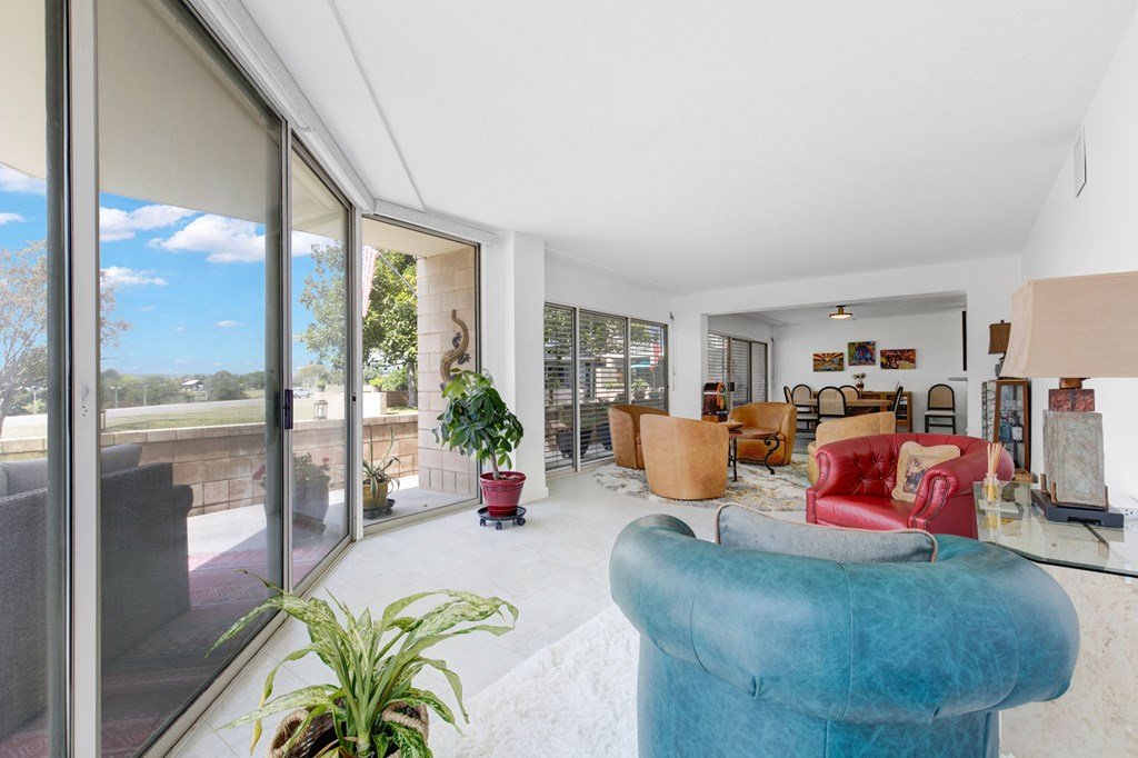 Welcome to this beautifully updated two-bedroom, two-and-a-half-bath condo on the first floor of Guadalupe River Condos. With over 500 square feet of veranda/patio space, you'll enjoy stunning views of the Guadalupe River from every room. Freshly painted with new flooring throughout, this light-filled home features a fully renovated kitchen with Silestone quartz countertops, all-new appliances, a top-of-the-line LG Washtower, and a whisper-quiet 39-decibel KitchenAid dishwasher. Thoughtfully upgraded for comfort and efficiency, the condo includes a serviced A/C, two new thermostats, two new water heaters, and two new circuit breaker boxes - all installed and inspected by the City of Kerrville. Custom closet built-ins, a new dining fixture, and a stylish accent wall add the finishing touches. Perfect for full-time living or a lock-and-leave lifestyle, this riverfront retreat checks all the boxes.