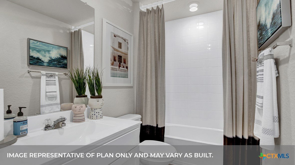 MOVE IN READY! NAVARRO ISD. The Lakeway is our most popular floorplan and is available at Swenson Heights in Seguin, Texas. This one-story home offers 2,034 square feet of living space across 4 bedrooms, 3 bathrooms, a study, and 2-car garage. Our homes in Swenson Heights feature farmhouse exteriors. As you enter the home from the covered front porch, you’ll step into the spacious foyer and will find the open study, bathroom 2 and bedroom 2. Use the study as a home office, library, or extra play area for the kids. Stepping further into the home, you’ll discover the dining room, kitchen and family room laid out in an open concept design. Built to make cooking, eating, and entertaining a pleasant experience for family and friends, you’re sure to make many memories in this beautiful space. The kitchen includes granite countertops, a large island facing the family room, a walk-in pantry, stainless-steel appliances and 36’’ upper cabinets. Located privately off the dining room are bedrooms 3 and 4, as well as bathroom 3. The primary bedroom is at the back of the house, off the family room, and includes a private bathroom. This relaxing bathroom space features a 5’ walk in shower, vanity, private toilet area with a door, and a walk-in closet. The utility room is outside the primary bedroom, allowing for the laundry chores to be completed with ease. The Lakeway includes vinyl flooring throughout the common areas of the home, and carpet in the bedrooms. All our new homes feature a covered back patio, full sod, irrigation system in the front and back yard, and a 6’ privacy fence around the back yard. This home includes our America’s Smart Home base package, which includes the Amazon Echo Pop, Front Doorbell, Front Door Deadbolt Lock, Home Hub, Thermostat, and Deako® Smart Switches.