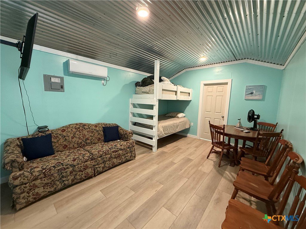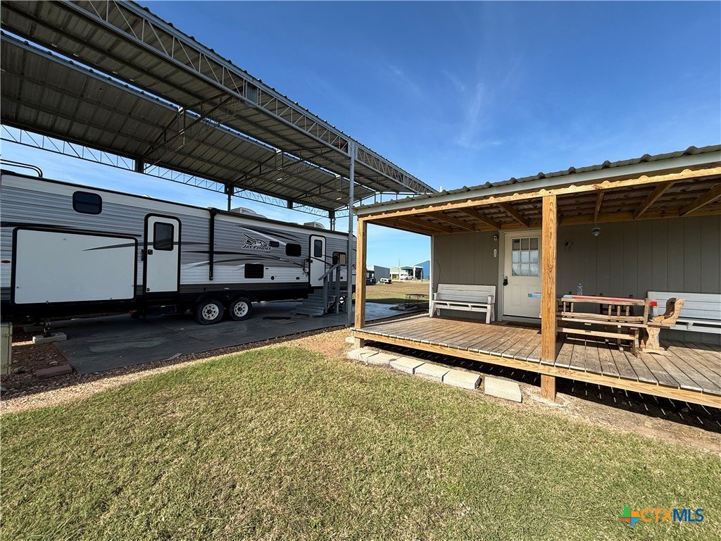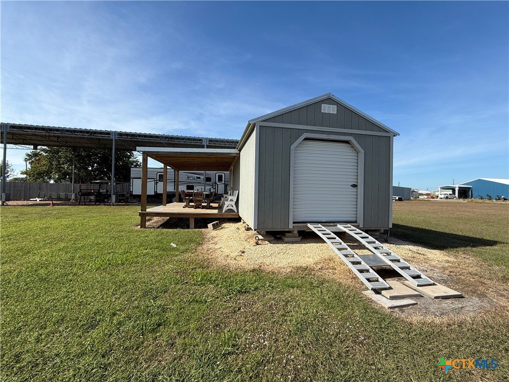 This unique coastal property in Seadrift, Texas, sits on five improved lots totaling approximately 0.41 acres and now features a recent price reduction along with the added value of an included RV. Designed for RV enthusiasts, weekenders, and fishing fans, the property has been raised and improved with dirt and gravel and includes an oversized RV cover with multiple RV hookups, along with a dual-gated driveway that makes access easy for RVs, boats, and larger vehicles. The converted outbuilding offers a comfortable cabin-style space with a covered front porch, built-in bunk beds, a bathroom with a shower, and a mini-split system for heating and cooling, and the cabin will remain furnished. The seller has also upgraded the washer and dryer area located behind the roll-up door on the opposite side of the outbuilding, which includes water hookups and additional storage space for lawn equipment and gear. Whether you are looking for a coastal weekend retreat or a convenient base for your fishing and outdoor adventures, this property is fully equipped and ready to enjoy from day one. The RV on-site is now included with the sale.