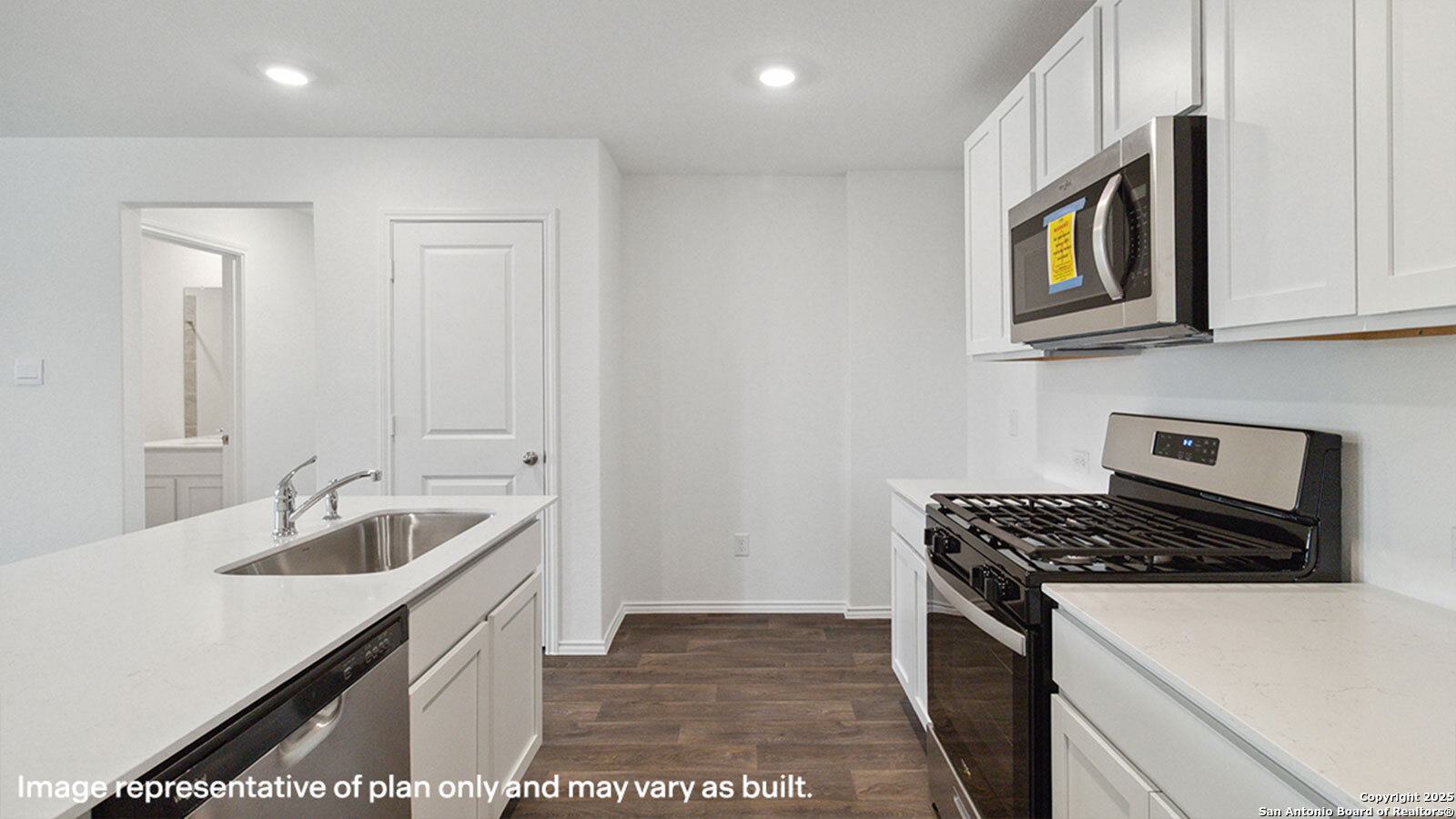 MOVE IN READY! NAVARRO ISD. Check out the Barton, one of our one-story floorplans available. This 3 bedroom, 2 bathroom home includes a 2-car garage all within 1,280 square feet of comfortable living space Our homes feature our modern farmhouse exteriors. From the front porch, step inside the home and cross through the foyer and hallway. The utility room is off the hall and connects to the garage, making it a perfect mud room. The heart of the home is the open concept living space. The kitchen, dining and family room flow seamlessly into the other, making this space perfect for creating lasting memories. The kitchen features an island with a stainless-steel sink, quartz countertops, 42" upper 'picture frame' cabinets, a pantry closet, and stainless-steel appliances. The primary bedroom is located at the back of the home. Unwind at the end of your day in this private ensuite. The attached bathroom includes a walk-in shower, cultured marble vanity with trench sink and a walk-in closet. The secondary bedrooms and bathroom are located off the kitchen. The bedrooms include carpet and closets with wood shelving. The secondary bathroom has a shower/tub combination and a cultured marble vanity with trench sink. This home features our America's Smart Home base package, which includes the Amazon Echo Pop, Video Doorbell, Front Door Key Code Deadbolt Lock, Home Hub, Thermostat, and Deako Smart Switches.