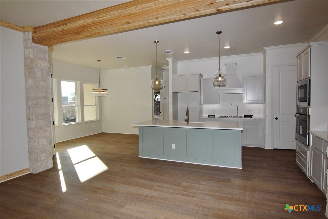 SPRING SALE! New to the market by Hodges Eagle Ridge Builders, Inc in Bella Charca. Lots of extras to include SPC vinyl floors, raised ceilings, fireplace with stone surround, stone & beamed interior accents, under mount sinks, crown molding, granite island in kitchen, gas cooktop, custom cabinets, walk-in pantry with lots of storage, large utility room with storage and sink, split master suite, mud area, foam insulation, vinyl windows, brick/stone exterior, covered back porch with fireplace and beadboard ceiling, 2 car garage plus a separate 1 car garage. Mature trees. Includes fence, sod/sprinkler. LIMITED SPECIAL OFFER! Builder will give $10,000 toward buyer’s closing costs with an accepted contract and close before April 15th.
