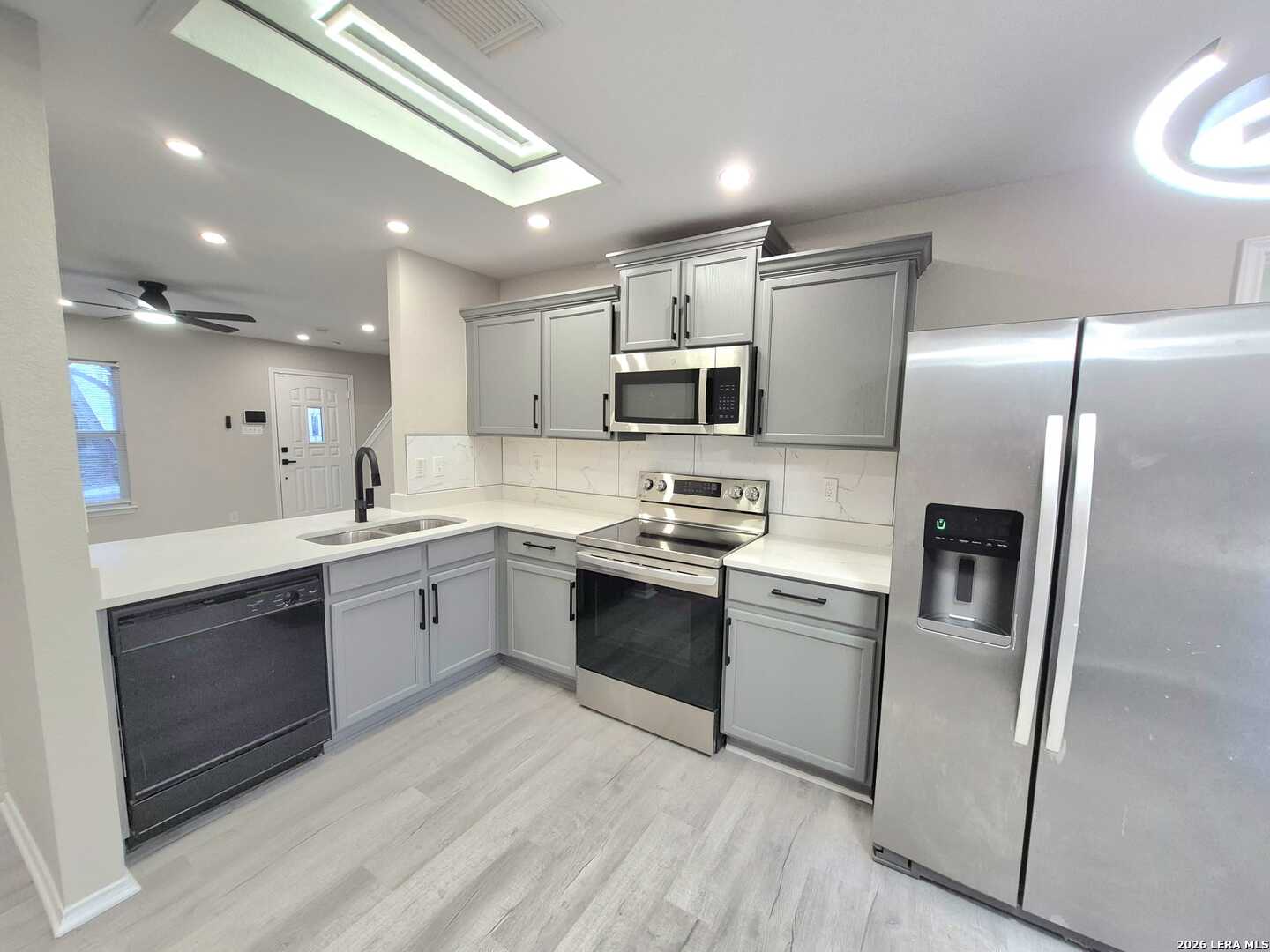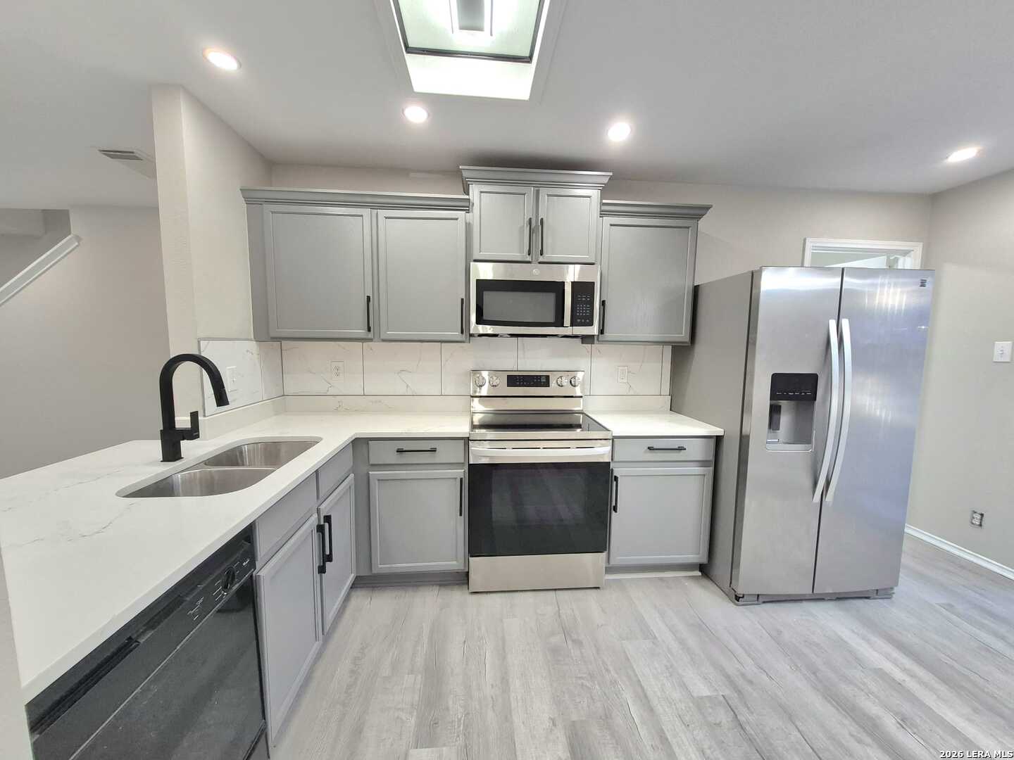 Beautiful and spacious 3-bedroom, 2.5-bath home in a highly convenient location with easy access to Hwy 151, Military Drive, Loop 410, and Loop 1604. This well-maintained property features a large upstairs primary suite and numerous updates throughout, including countertops, stainless steel dishwasher, updated restrooms. No carpet for easy maintenance and modern living. The nicely landscaped yard adds great curb appeal, and the home is move-in ready with refrigerator, washer, and dryer conveying. Conveniently located near shopping, dining, medical facilities, major employers, and recreational destinations, with quick access to Lackland AFB and surrounding amenities. A great opportunity in a desirable area-schedule your showing today!
