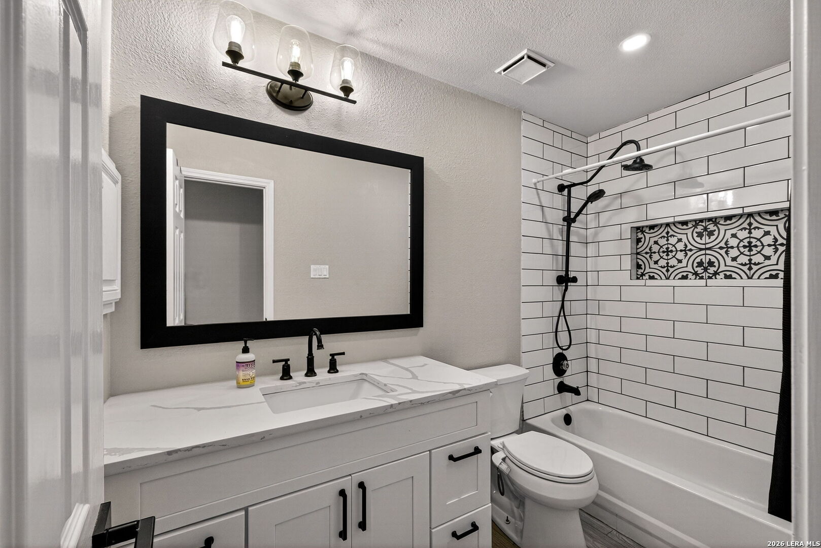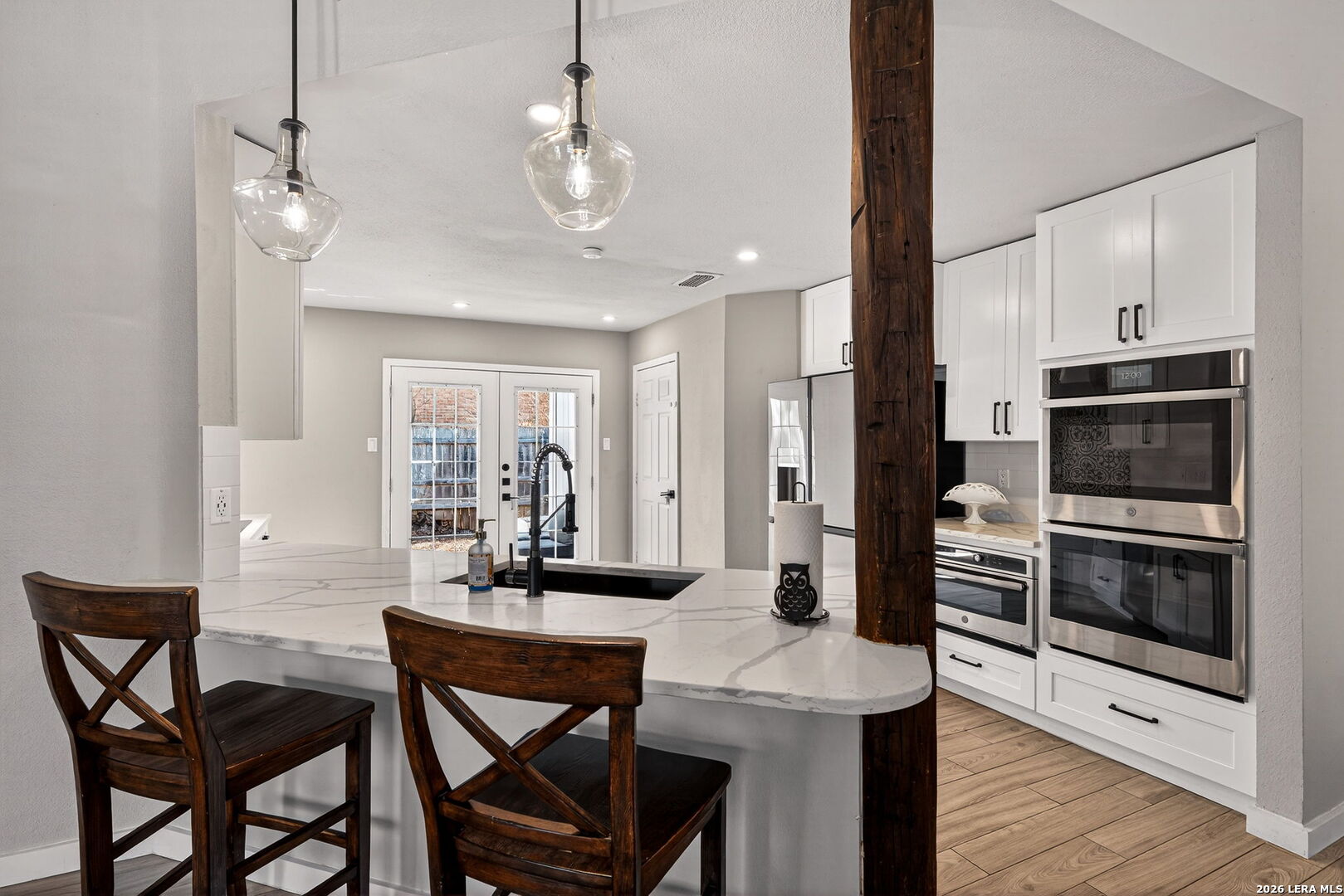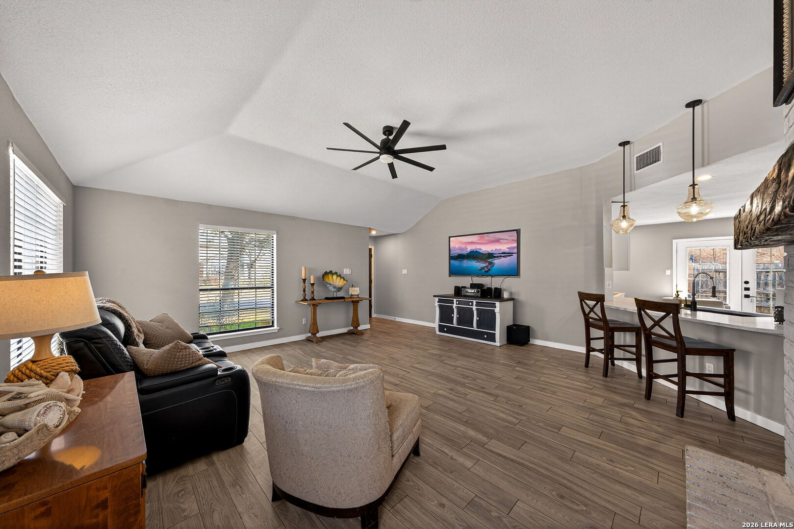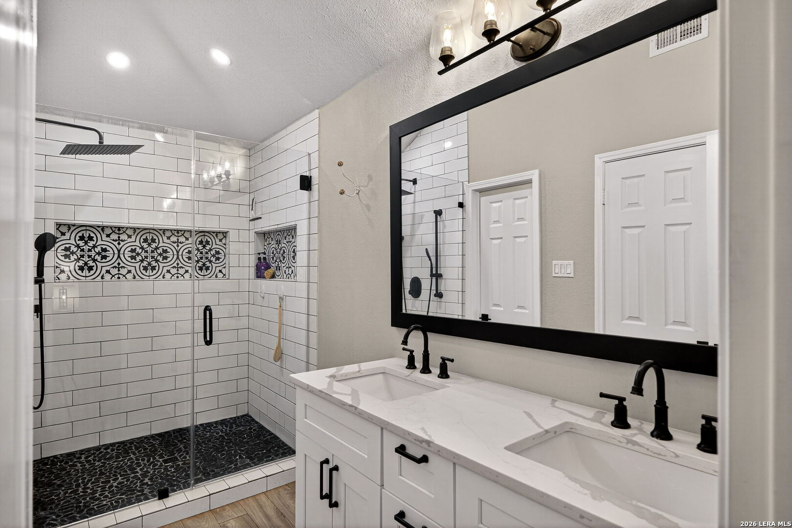Beautifully remodeled 1 Story Located in Stone Oak! Home Features - 3 Bedrooms * 2 Baths * Separate Dining Space * Wood Look Tile Throughout * Quartz Counter-Tops * Custom Cabinetry with Built in Stainless Steel Appliances * Brick Wood Burning Fireplace at Living * High Ceilings * Large Primary Suite with Dual Vanity Sinks and a Oversized Mudset Shower at the Primary Bath * Custom Closet Shelving * Upgraded Lighting Fixtures * 2" Faux Blinds * Garage Door Opener * Mature Trees and more! Roof was Replaced in 2023. Students will attend award wining North East Schools.