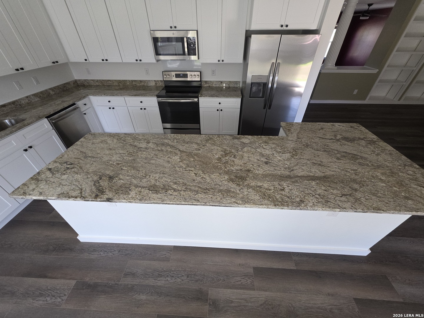 This beautifully updated move-in-ready home provides space and comfort to meet all your needs. The thoughtfully designed layout provides an open floor plan with multiple living areas, beautifully updated with decorator colors. A cozy wood burning fireplace adds warmth to the combined family/dining room. The eat-in kitchen is a chef's dream with new soft close cabinets. The large island boasts a beautiful, seamless granite countertop for ease in meal prep and cleaning. The stainless-steel refrigerator, stove, microwave and dishwasher give a beautiful finish to the space. A convenient coffee bar accents the updated kitchen. The laundry room was renovated, adding matching cabinets and shelf space. Modern, remote-controlled light fixtures with ceiling fans add the final touch to every room. The spacious primary bedroom allows room for a sitting area or reading nook. The primary bath features a jetted tub and separate shower with updated dual vanities and walk-in closets. The second bath, conveniently located for the remaining 3 bedrooms, is completely updated. The HVAC is 2 years old and under warranty, the upstairs floors are 3 years old, Rheem water heater 7 years old. The raised planters in the backyard are a great way to grow your own vegetables. This home has everything--Convenient to schools, parks, shopping, Randolph Air Force Base, and major highways making it easy to work, play or relax.