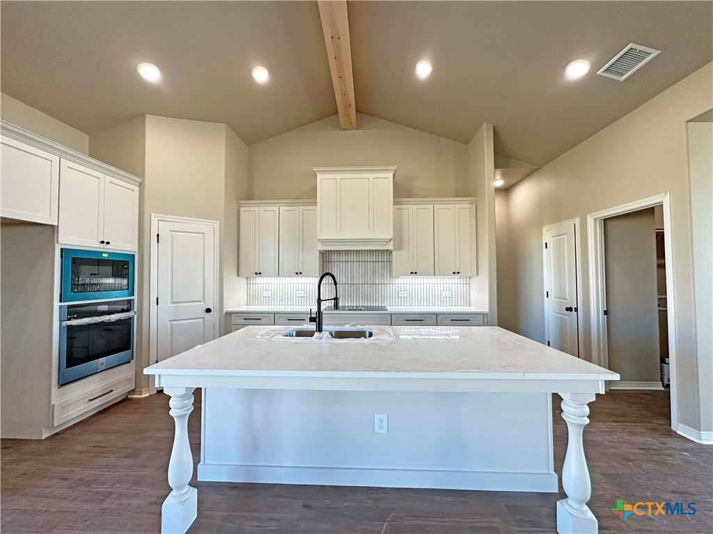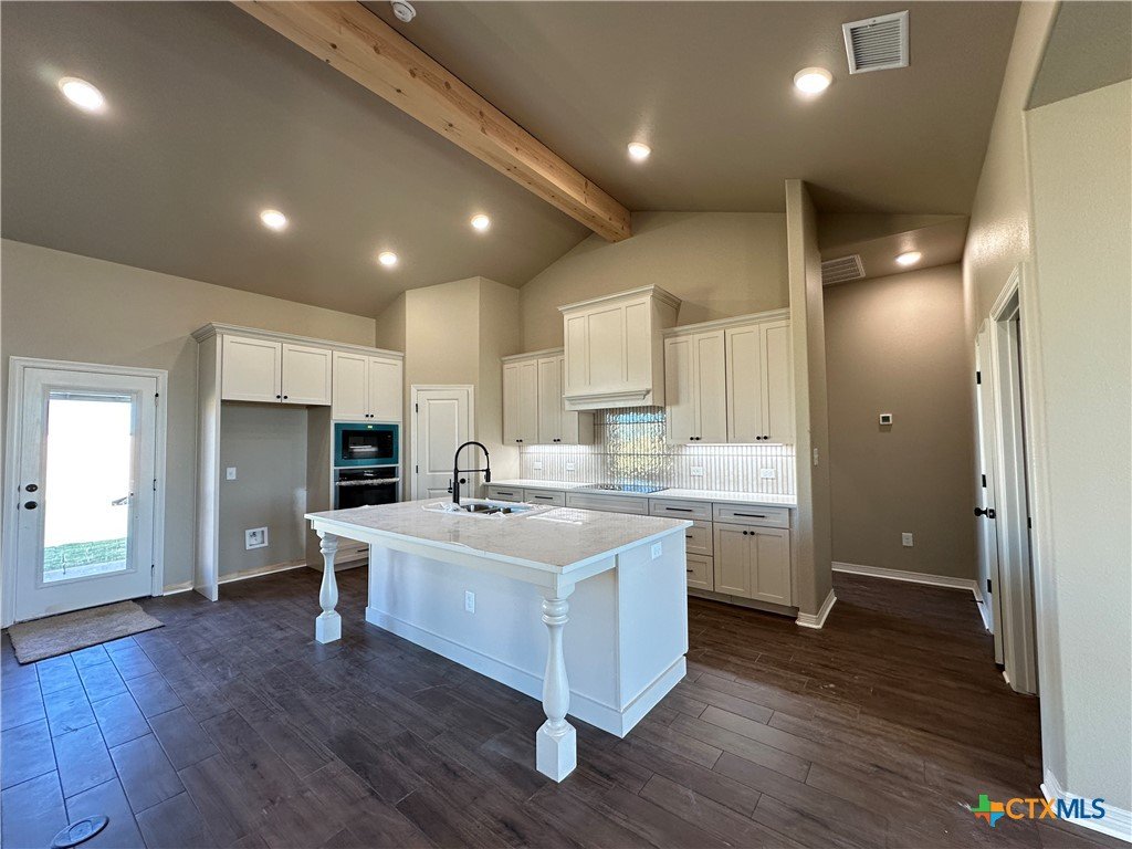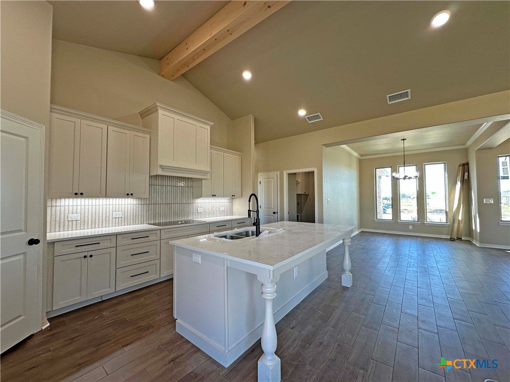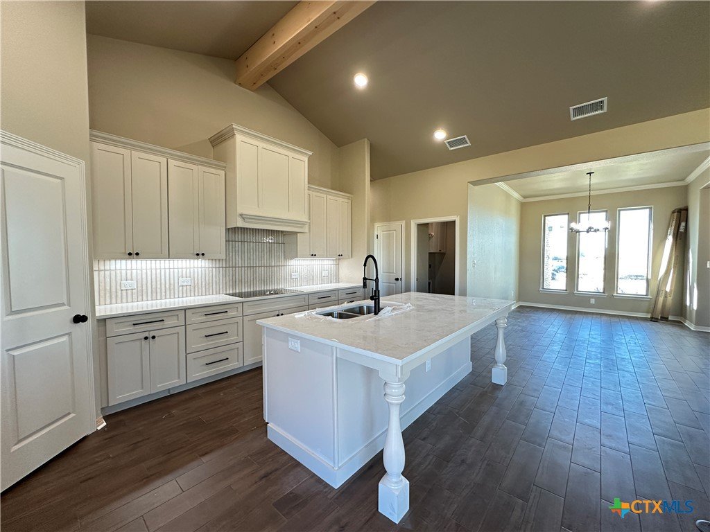 Welcome to the Luxor floor plan, a meticulously designed residence that blends the elegance of vaulted ceilings with a spacious, open layout. Upon entry, a beautiful formal dining room sets the tone for refined décor and memorable gatherings. At the heart of this exceptional home is the kitchen—a true centerpiece for family life and entertaining. It features soft-close cabinets and drawers, quartz countertops, an electric cooktop with a custom-designed vent hood, built-in electric oven and microwave, a spacious pantry, and a large island offering ample prep space and seating. The living room boasts tall, vaulted ceilings and an electric fireplace that adds warmth and ambiance. Unlike traditional fireplaces, this one can be enjoyed year-round with a flame effect that works even without heat—perfect for any season. The split-bedroom layout ensures privacy, with the master suite thoughtfully positioned on one side of the home and guest bedrooms on the other. Located in Temple's Hartrick Valley Estates and zoned to Academy ISD, this home sits on over a third-acre lot, offering both space and serenity. Come discover what makes this community a wonderful place to call home!