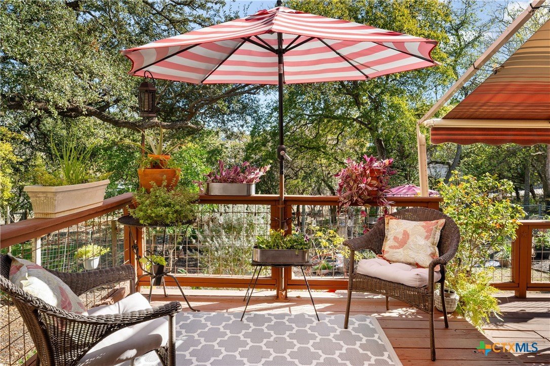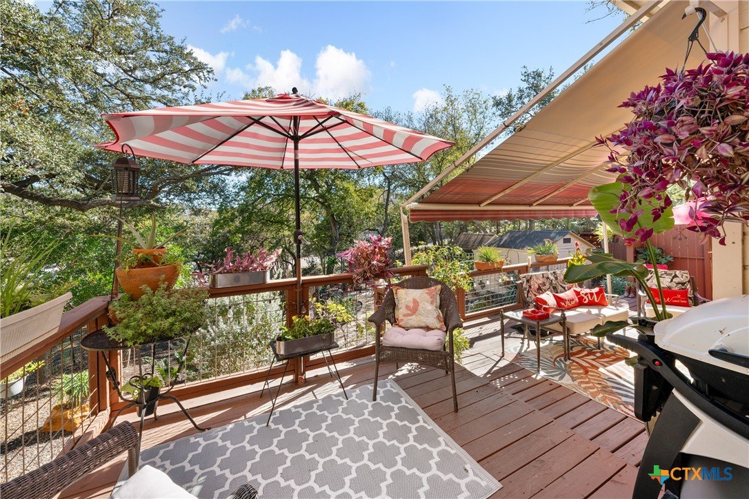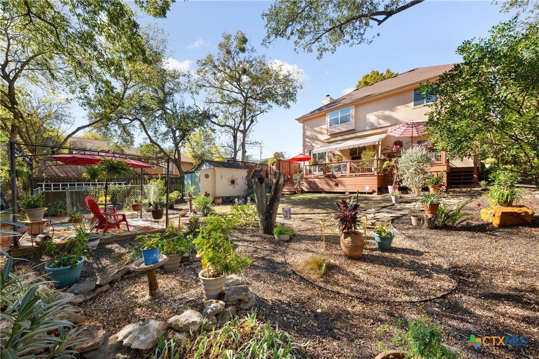 Live at the center of San Marcos energy and outdoor adventure! This beautifully maintained custom home sits less than a mile from Texas State University—perfect for attending class, catching concerts, plays, sporting events, or enjoying the vibrant campus scene any day of the week. Featuring 3 spacious bedrooms and 2.5 bathrooms, this home blends comfort with smart upgrades throughout. Enjoy peace of mind with recent improvements including tinted windows, a quiet-grade garage door, and window treatments on every window. Tile flooring and crown molding elevate the downstairs living areas, while plush carpeting adds comfort to the upstairs bedrooms. The outdoor lifestyle truly begins in your own backyard. Step into a private, professionally landscaped retreat complete with lush plantings, a park-like setting, and a three-tier deck capped with a retractable Sunsetter awning—perfect for morning coffee, evening gatherings, or year-round relaxation. NO HOA. And the best part? The North LBJ Trailhead is right behind the home, offering direct access to the stunning Spring Lake Natural Area—hundreds of acres of trails, views, and some of the best hiking and outdoor spaces in San Marcos PLUS enjoy the beautiful spring-fed San Marcos River! Move-in ready, low-maintenance, and surrounded by nature and campus life—this home delivers the ideal blend of convenience, charm, and adventure. Don’t miss it!