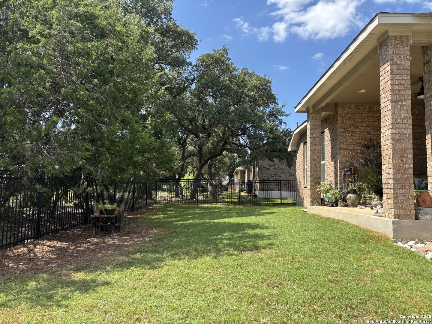 Live the Hill Country Dream in Boerne, Texas luxury! A dream home in the exceptional master-planned neighborhood of Esperanza that is LOADED with amenities that are included in the HOA fee- award-winning pools, a lazy river and splashpad, dog parks, walking trails and tons more! This classy single-story offers so many custom and high-end features and a back yard with natural privacy from the greenbelt trees. 4 bedrooms and 3 full baths surround a sleek and open kitchen with a massive custom quartz island. No detail or expense spared! Move right in to custom paint and shutters, luxury cabinetry and hardware, high-end light fixtures and fans, useful custom built-ins and a high-end sliding patio door. Gas fuels the cooktop, the fireplace with a blower and a duo of water heaters. The primary suite boasts a dual vanity, separate garden tub, a walk-in shower and a custom closet. Low-maintenance exterior with rock and stucco and well-designed native landscaping in the front yard and a big covered back patio. Of course there is a reverse osmosis system, a water softener system and in-wall pest control. Come see this immaculate and extremely well-appointed home that is better than a new build by a mile! Ask about seller incentives for closings cost or a rate buy-down...