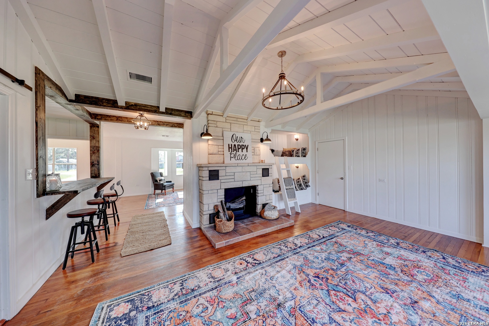 3 bedrooms, 2 baths, and 2,200+ square feet of Hill Country charm-all set on a full acre in the heart of Harper. Ideally located between Fredericksburg and Kerrville, this inviting home blends timeless character with thoughtful updates, offering privacy, space to breathe, and room to grow. A fence on three sides creates a peaceful retreat with convenient access to dining, wineries, shopping, and medical care. The charming stone exterior and metal roof provide instant curb appeal, welcoming you into sun-filled living spaces featuring original hardwood floors, rustic wood beams, and two striking rock fireplaces. Oversized windows fill the home with abundant natural light, creating a warm and inviting atmosphere throughout. Multiple living areas offer flexibility for relaxing or entertaining, while built-in bunkettes add unique character-perfect for guests, a cozy nook, or creative workspace. Recent updates to electrical, plumbing, and septic systems provide added peace of mind. Multiple storage sheds and impressive 888 sq ft party barn/workshop add incredible versatility for hobbies, storage, or entertaining.