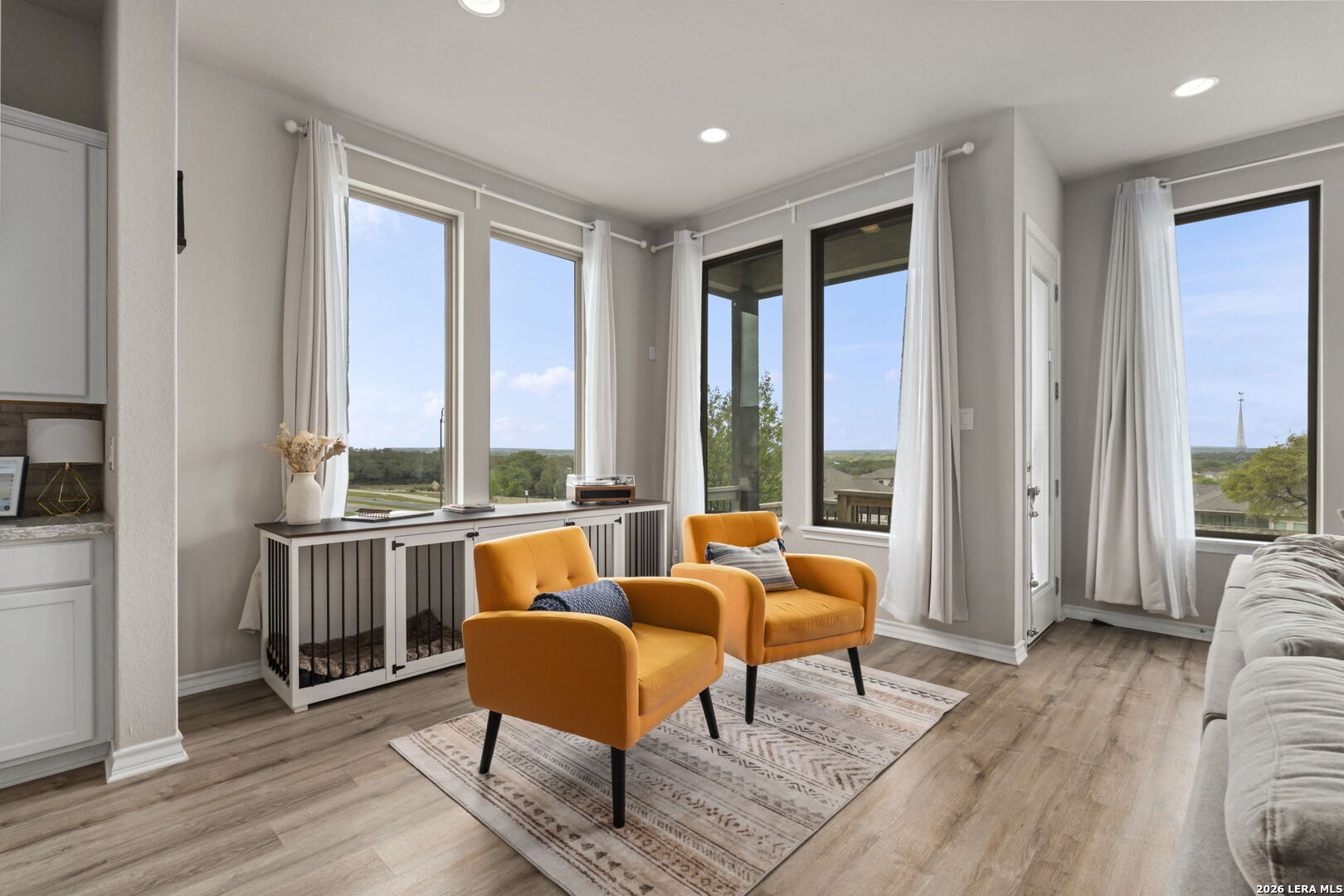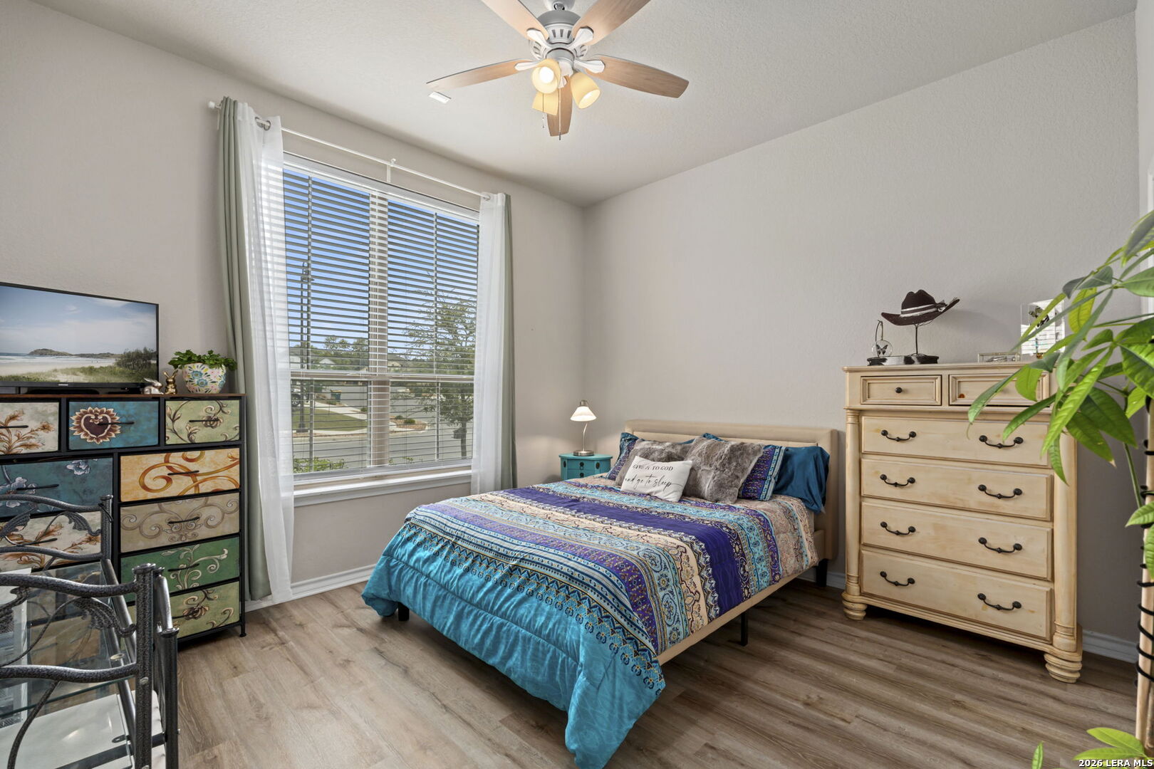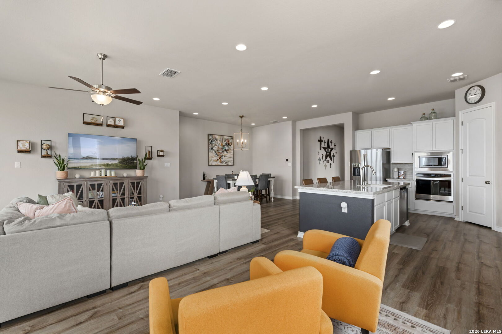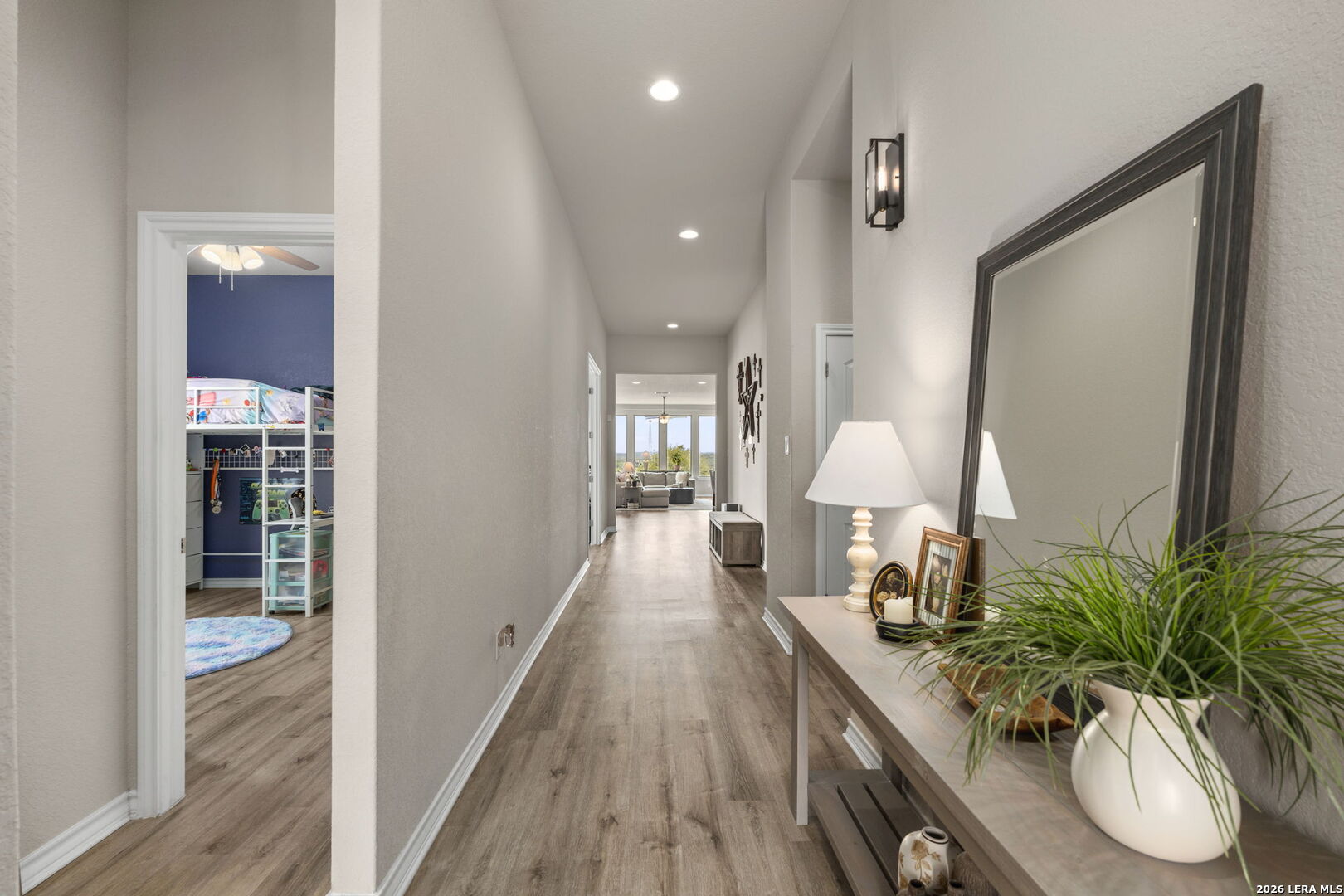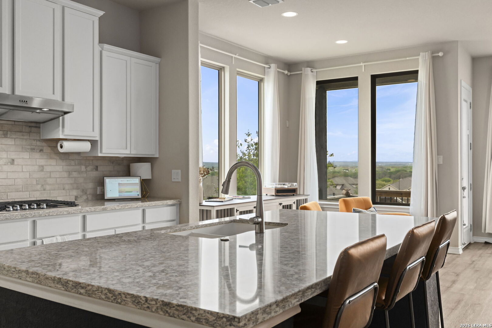 VIEWS, VIEWS, VIEWS! This beautifully maintained single-story home offers breathtaking panoramic Hill Country scenery and unforgettable sunsets that feel like a nightly masterpiece. Featuring 4 bedrooms, 3 bathrooms, and 2,540 sqft, this home provides a no-steps interior layout designed for both comfort and ease of living. From the moment you enter, you're welcomed by high ceilings, abundant natural light, and an open-concept design that creates a seamless flow between the living, dining, and kitchen areas. The kitchen is positioned at the heart of the home with generous counter space, ample storage, and easy connection to the main living areas, making it ideal for both everyday living and entertaining. The primary suite offers a peaceful retreat, while three additional bedrooms and two full bathrooms provide flexibility for guests or everyday living. A dedicated office adds even more versatility and can easily function as a guest room, playroom, or secondary living space depending on your needs. Step outside to a covered patio that overlooks the elevated backyard, perfectly positioned to capture sweeping Hill Country views. The yard features a combination of stone privacy fencing and wrought iron, allowing you to take in the scenery while still enjoying a defined outdoor space. Whether you're enjoying a quiet morning coffee or winding down at sunset, this home delivers a lifestyle that's hard to replicate. With its thoughtful layout, stunning views, and well-maintained condition, this is one you truly have to experience in person.