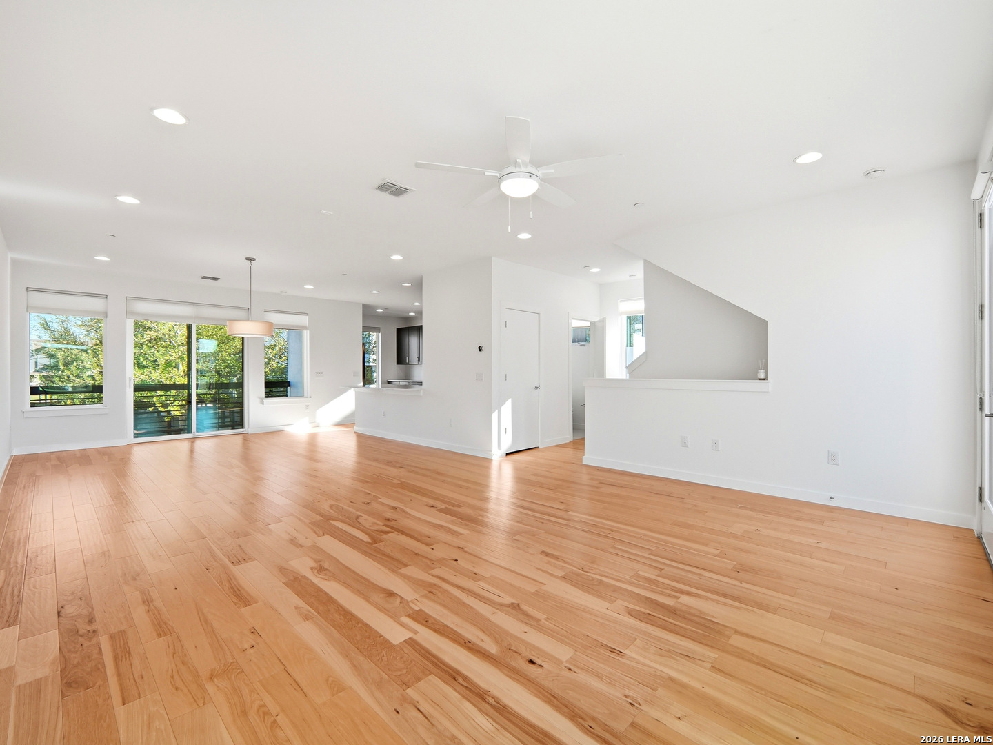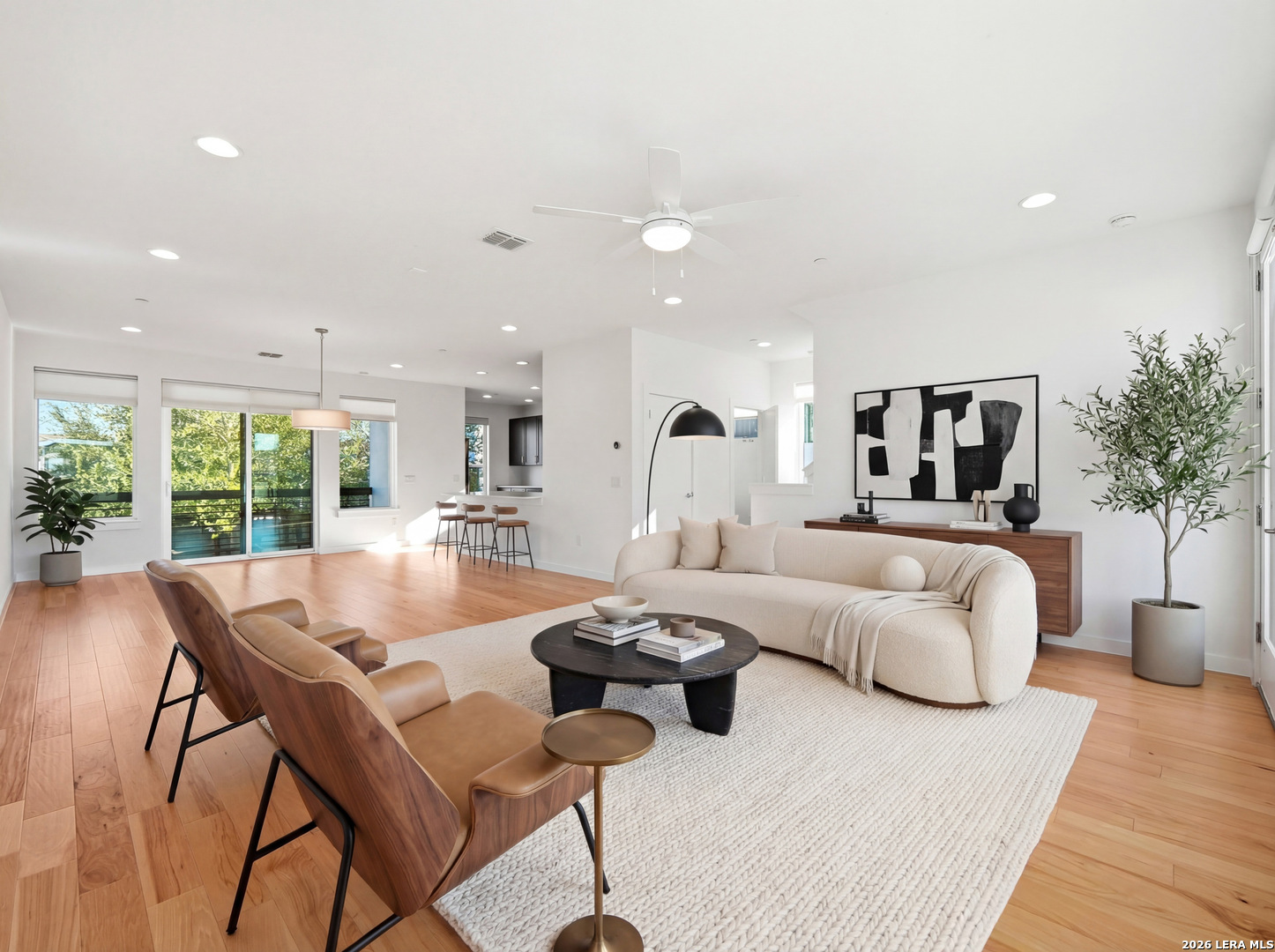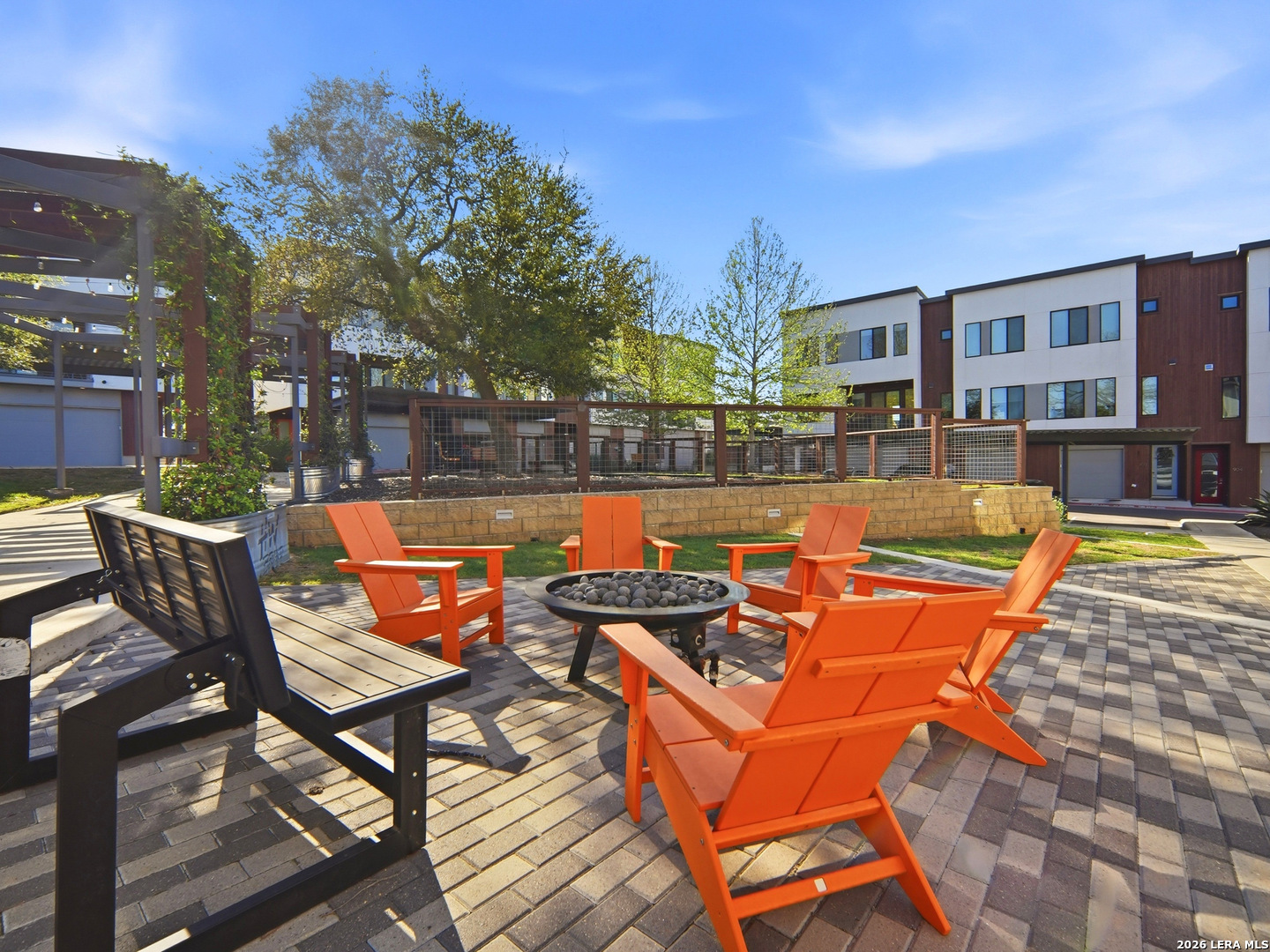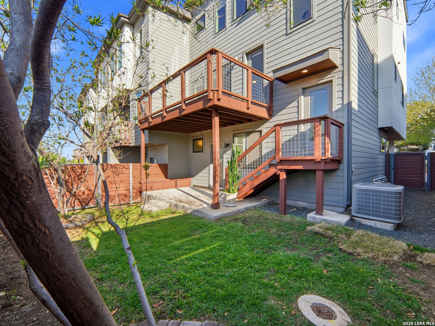 This well-appointed condo lives like a single-family home, with a thoughtfully designed three-level layout, 4 bedrooms, 3.5 baths, multiple outdoor spaces, and a two-car garage. Recently refreshed and move-in ready, the home features fresh interior paint, newly stained outdoor decks, high ceilings, abundant natural light, and a clean, neutral, timeless palette throughout. The first level includes a spacious two-car garage, a large under-stair storage area, and a private bedroom with a full ensuite bath, ideal for guests, multigenerational living, or a home office. This level also offers direct backyard access, along with exterior stairs leading to the second floor. The second level is designed for everyday living and entertaining, with an open-concept layout connecting the living room, dining area, and kitchen. A half bath, additional storage, and a private deck provide comfortable and functional indoor-outdoor living. On the third level, a convenient desk nook sits at the top of the stairs. The primary suite features an ensuite bath and walk-in closet, accompanied by two additional bedrooms, a full bathroom, and a dedicated laundry room.Located in Mahncke Park, this property represents one of the best values in the neighborhood and has been made to feel like new. Residents enjoy weekly landscaping services, along with amenities including a dog park with a wash station, a community fire pit, and a grill area. The location offers close proximity to Fort Sam Houston, University of the Incarnate Word, Trinity University, Landa Library and Park, The Witte Museum, San Antonio Zoo, San Antonio Botanical Garden, The DoSeum, Brackenridge Park, The Quarry, and the Pearl District, as well as easy access to Alamo Heights and HEB Central Market.
