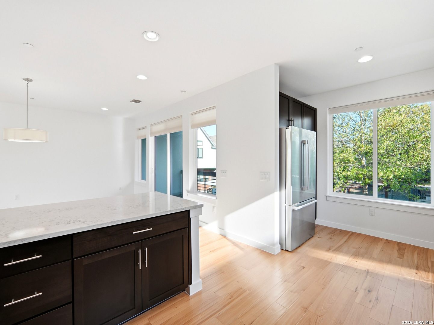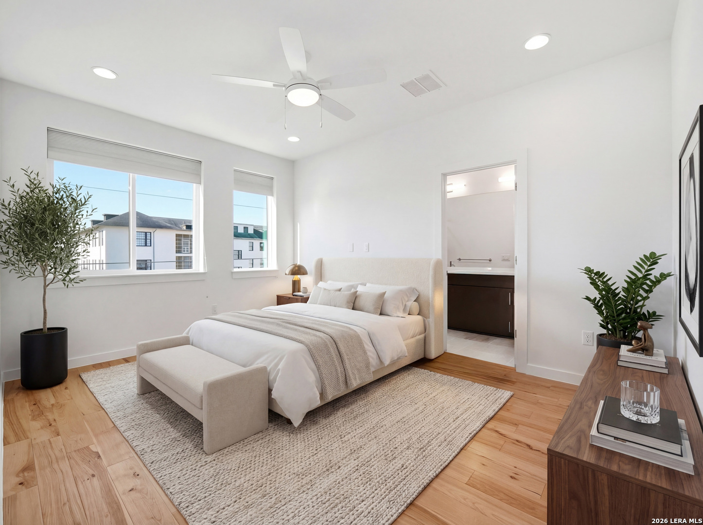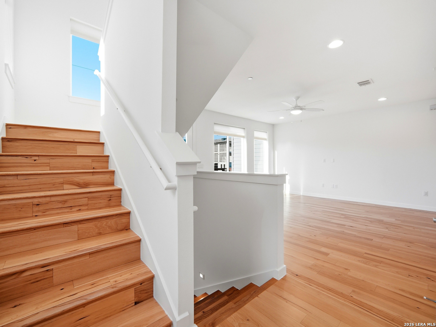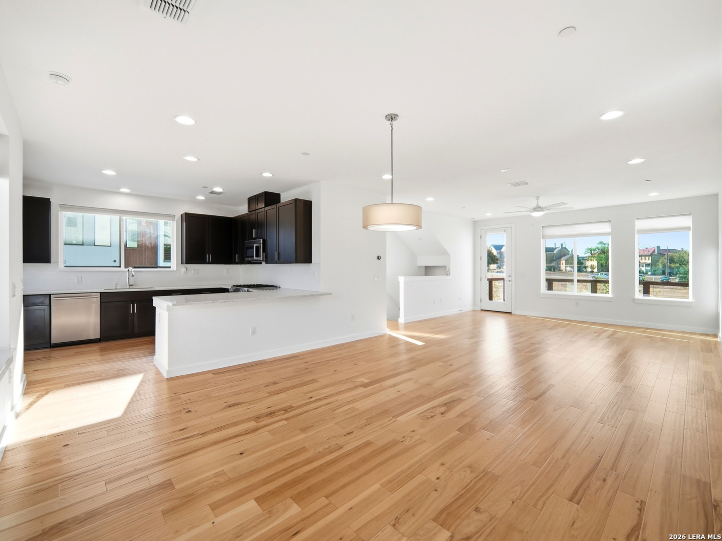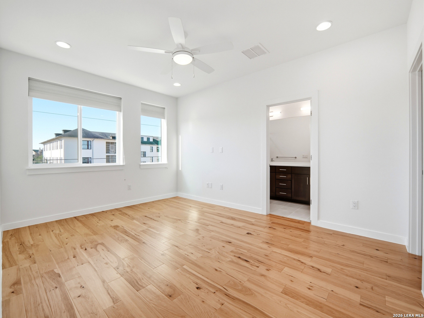 This well-appointed condo lives like a single-family home, with a thoughtfully designed three-level layout, 4 bedrooms, 3.5 baths, multiple outdoor spaces, and a two-car garage. Recently refreshed and move-in ready, the home features fresh interior paint, newly stained outdoor decks, high ceilings, abundant natural light, and a clean, neutral, timeless palette throughout. The first level includes a spacious two-car garage, a large under-stair storage area, and a private bedroom with a full ensuite bath, ideal for guests, multigenerational living, or a home office. This level also offers direct backyard access, along with exterior stairs leading to the second floor. The second level is designed for everyday living and entertaining, with an open-concept layout connecting the living room, dining area, and kitchen. A half bath, additional storage, and a private deck provide comfortable and functional indoor-outdoor living. On the third level, a convenient desk nook sits at the top of the stairs. The primary suite features an ensuite bath and walk-in closet, accompanied by two additional bedrooms, a full bathroom, and a dedicated laundry room.Located in Mahncke Park, this property represents one of the best values in the neighborhood and has been made to feel like new. Residents enjoy weekly landscaping services, along with amenities including a dog park with a wash station, a community fire pit, and a grill area. The location offers close proximity to Fort Sam Houston, University of the Incarnate Word, Trinity University, Landa Library and Park, The Witte Museum, San Antonio Zoo, San Antonio Botanical Garden, The DoSeum, Brackenridge Park, The Quarry, and the Pearl District, as well as easy access to Alamo Heights and HEB Central Market.