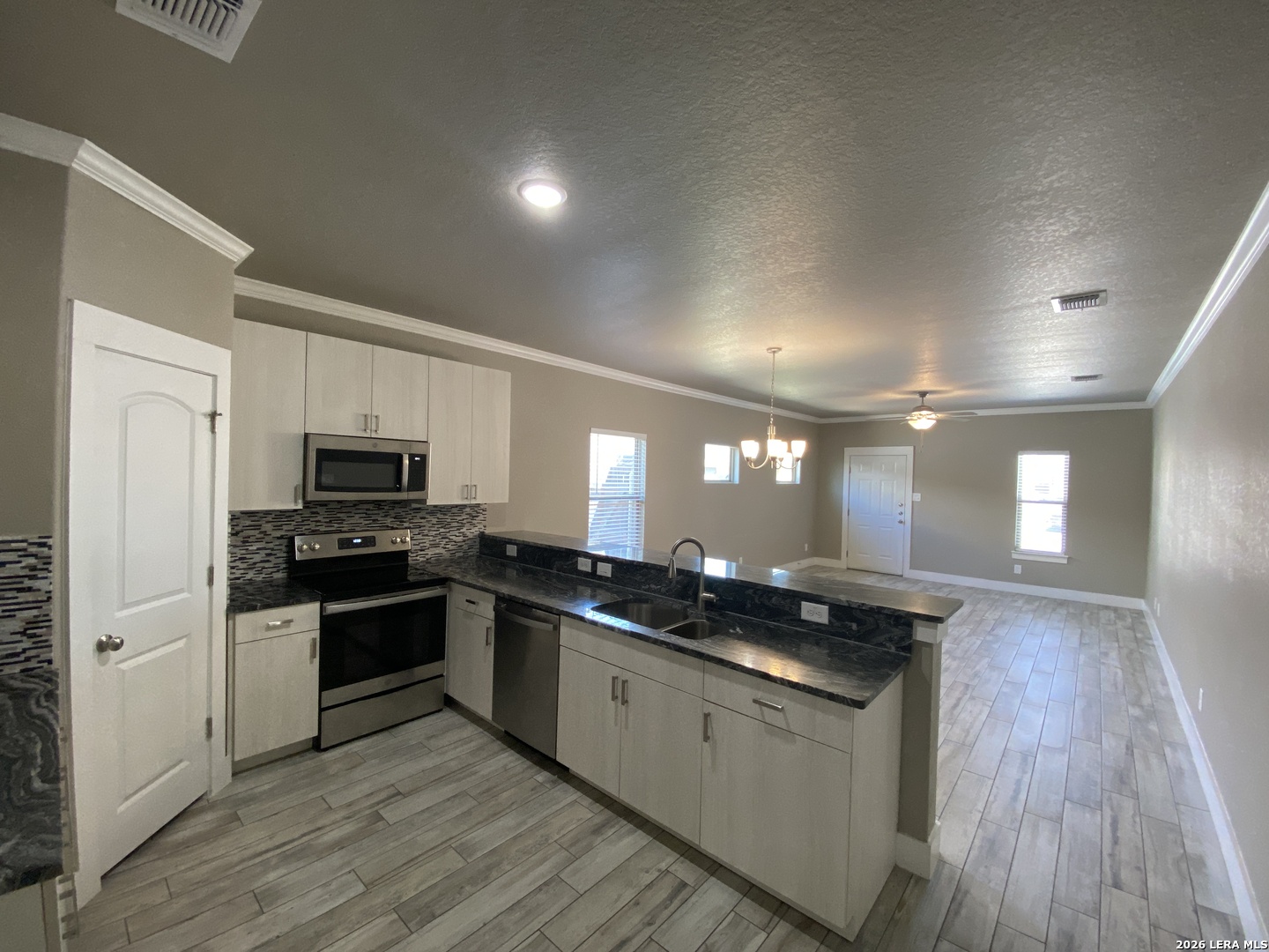 Located 1 mile from IH 35 / Resolute Hospital & the Creekside Shopping - Entertainment - Restaurant District. 3.7 Miles to Downtown New Braunfels. This duplex has a TON of upgrades. Custom tile work in both bathrooms. Laundry Room with a folding / charging station. Flooring is wood like tile / no carpet. Kitchen Includes: stainless steel appliances, dishwasher, built in microwave, granite counter tops, breakfast bar, pantry, & recessed lighting. Primary bathroom has double vanities, walk in shower with dual shower heads, walk in closet. Both bathrooms have upgraded tile work. Other features: ceiling fans, garage door opener, turf grass in front yard, normal grass in backyard, concrete walk way down side of property, and crown molding. Garage is Tandem ( 2 cars can fit 1 behind the other). Fenced in Back Yard. CISD 2 Pets ok ( max 50 lbs).
