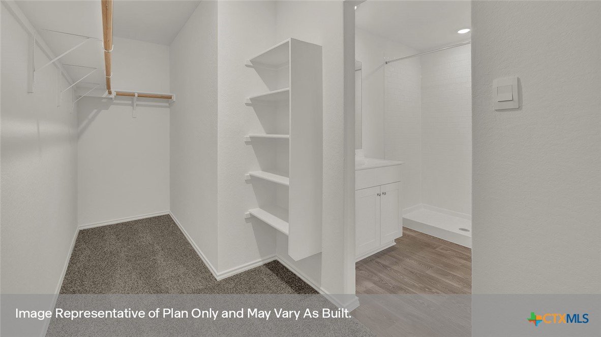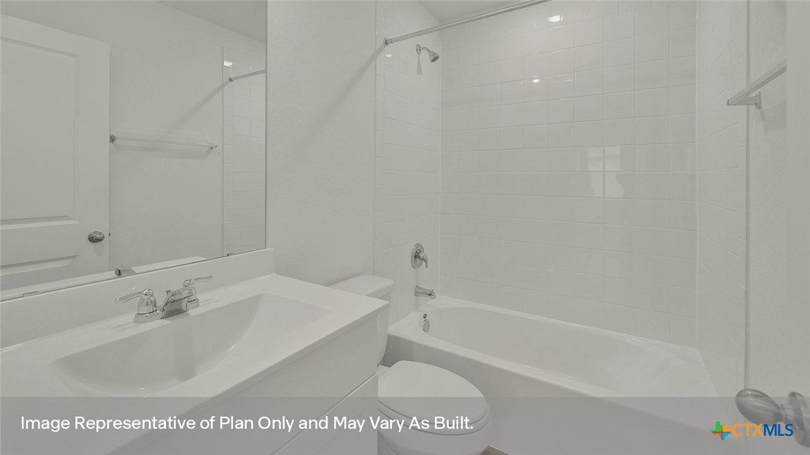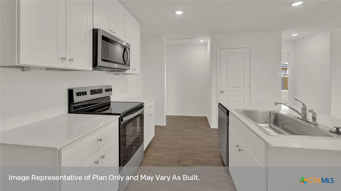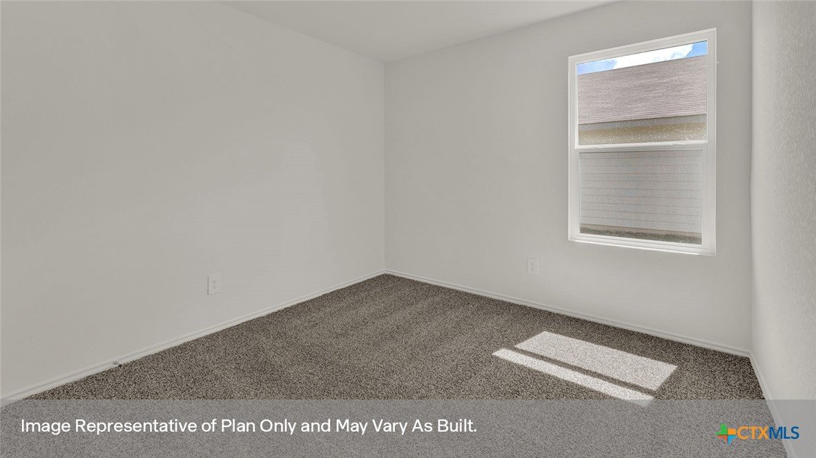 MOVE IN READY. NAVARRO ISD. Check out the Emma, one of our one-story floorplans available at Swenson Heights in Seguin, Texas. This new home offers 4 bedrooms, 2 bathrooms and a 2-car garage within 1,572 square feet of living space. Our homes in Swenson Heights feature our modern farmhouse exteriors and the Emma is available in 2 exterior options. As you enter the home from the front porch, you’ll cross the foyer to the open concept living area. The kitchen faces out to the dining room and family room, allowing for conversations to flow easily across the space as you make dinner and unwind from your day. The kitchen features an island with a stainless-steel sink, quartz countertops, 42” upper ‘picture frame’ cabinets, a pantry closet, and stainless-steel appliances. Two secondary bedrooms are located off the kitchen as well as the secondary bathroom. The utility room is in this part of the home and connects to the garage, creating an optional mud room. The other secondary bedroom is located off the dining room and all bedrooms include carpet and closets with wood shelving. The secondary bathroom features a shower/tub combination and a cultured marble vanity with trench sink. The primary bedroom is at the back of the home and includes an attached bathroom. This private ensuite is sure to become your oasis at the end of the day. Enjoy the walk-in shower, cultured marble vanity with trench sink and a large walk-in closet. This home features our America’s Smart Home base package, which includes the Video Front Doorbell, Front Door Deadbolt Lock, Home Hub, Thermostat, and Deako® Smart Switches.