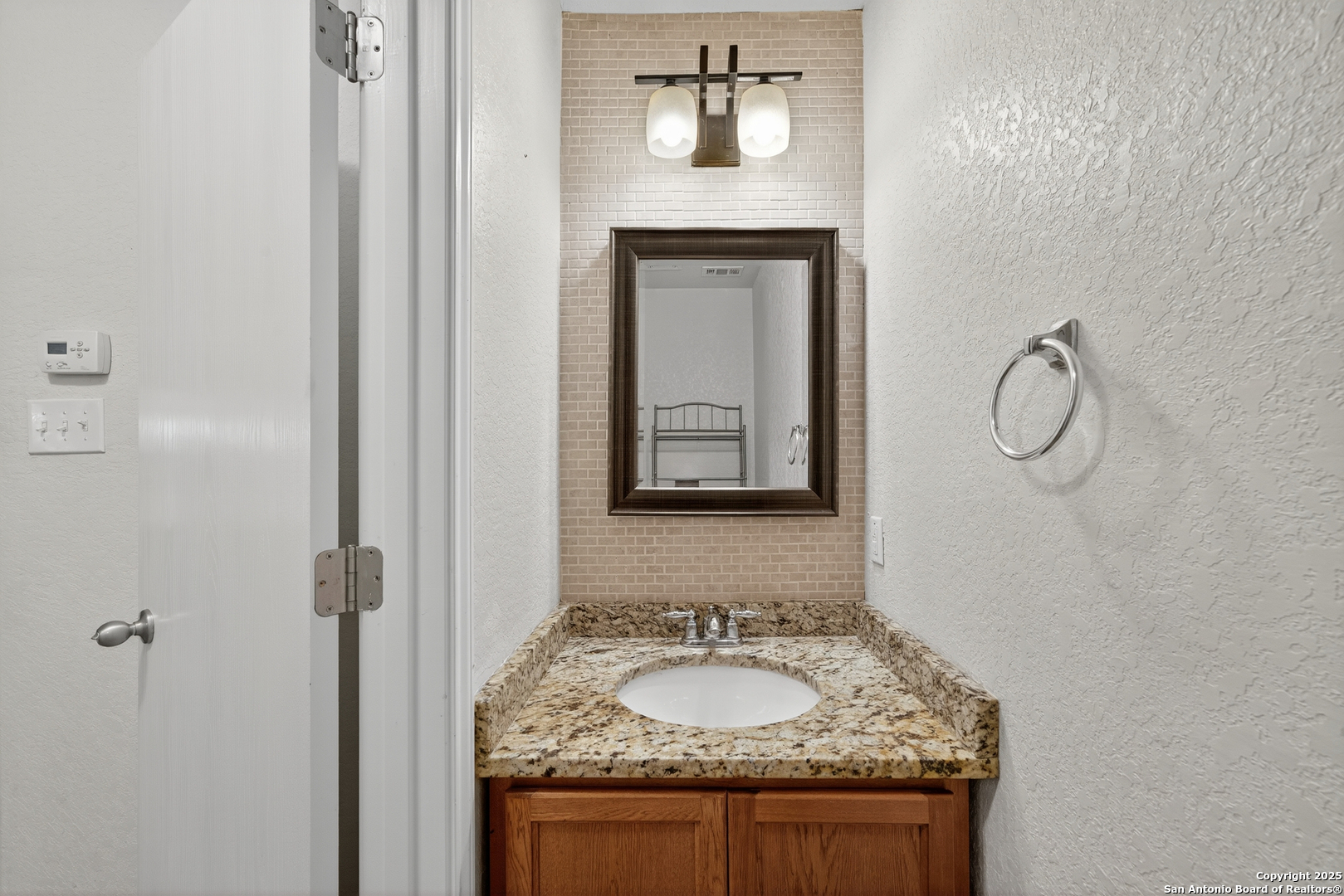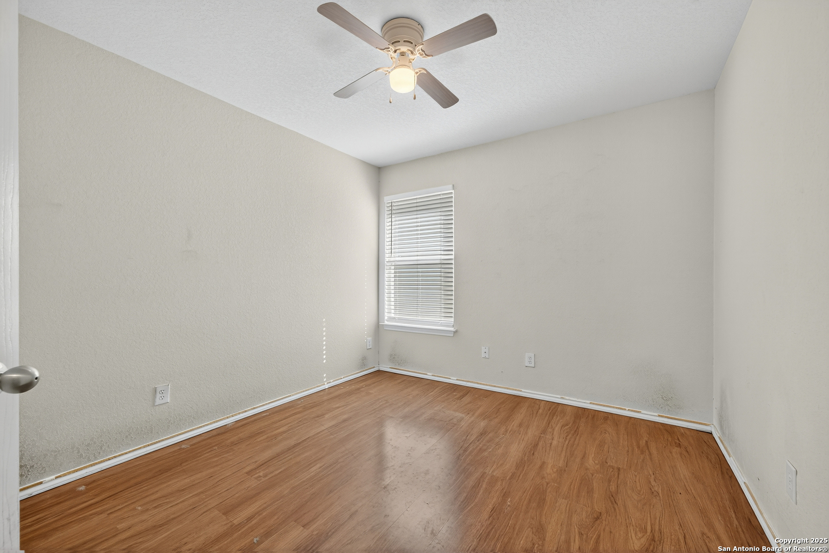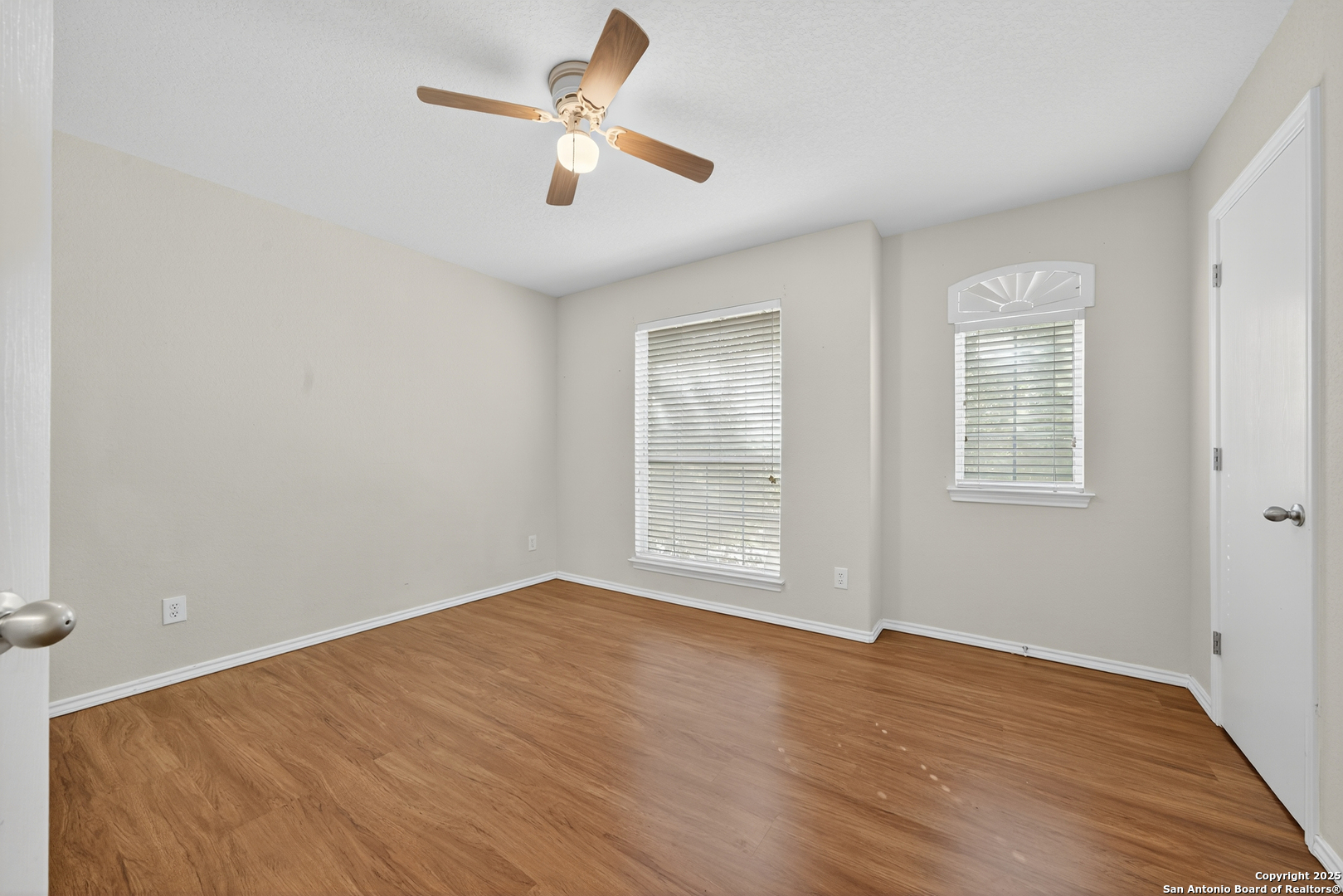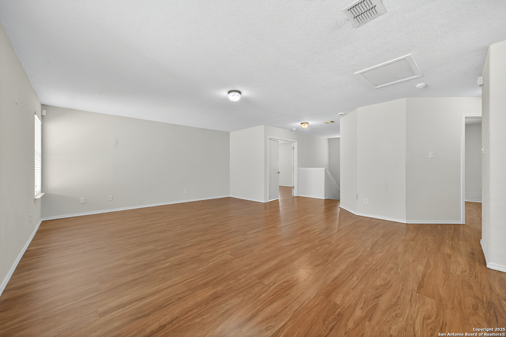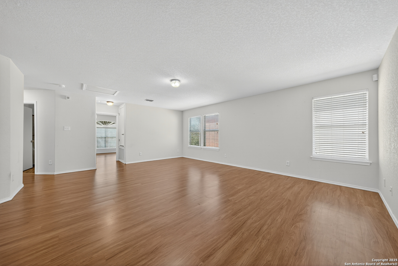 Beautifully updated 4-bedroom home in highly sought-after Laurel Canyon right at the Helotes line! Step into an open, airy layout with wood/laminate flooring throughout-no carpet anywhere. The kitchen features granite counters, stainless steel appliances, and a great breakfast-bar flow into the living area. All bedrooms are privately located upstairs along with a spacious game room perfect for movie nights, kids' space, or a second living area. The primary suite offers a true retreat with a large layout, separate garden tub and walk-in shower, and generous closet space. Out back, relax on the extended covered patio overlooking a peaceful greenbelt-ideal for quiet evenings or weekend BBQs. Neighborhood amenities include a pool, park, playground, covered swings, sand volleyball, basketball court, and community BBQ areas. Plus, you're minutes from Loop 1604, La Cantera, Helotes Marketplace, top dining, shopping, and entertainment. A fantastic Helotes-area find and we believe you will absolutely love it here!