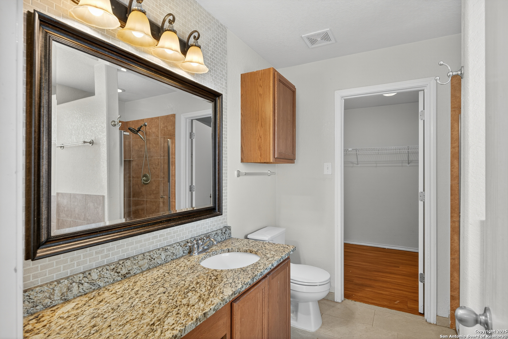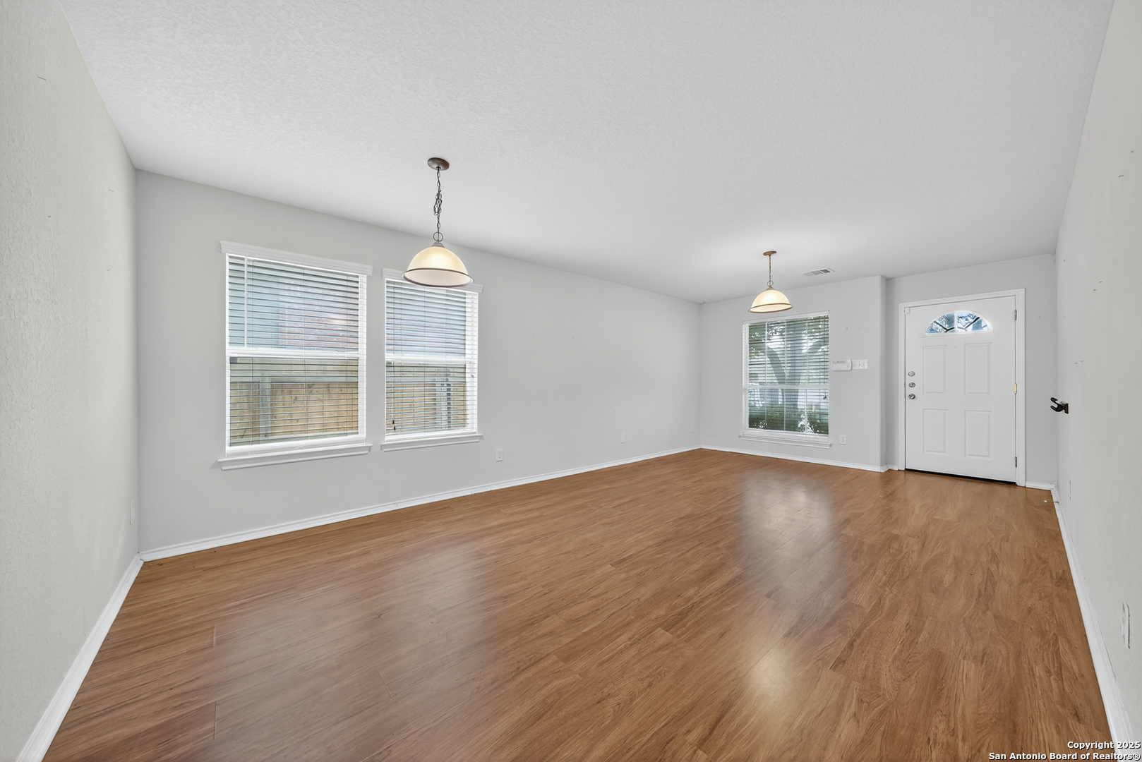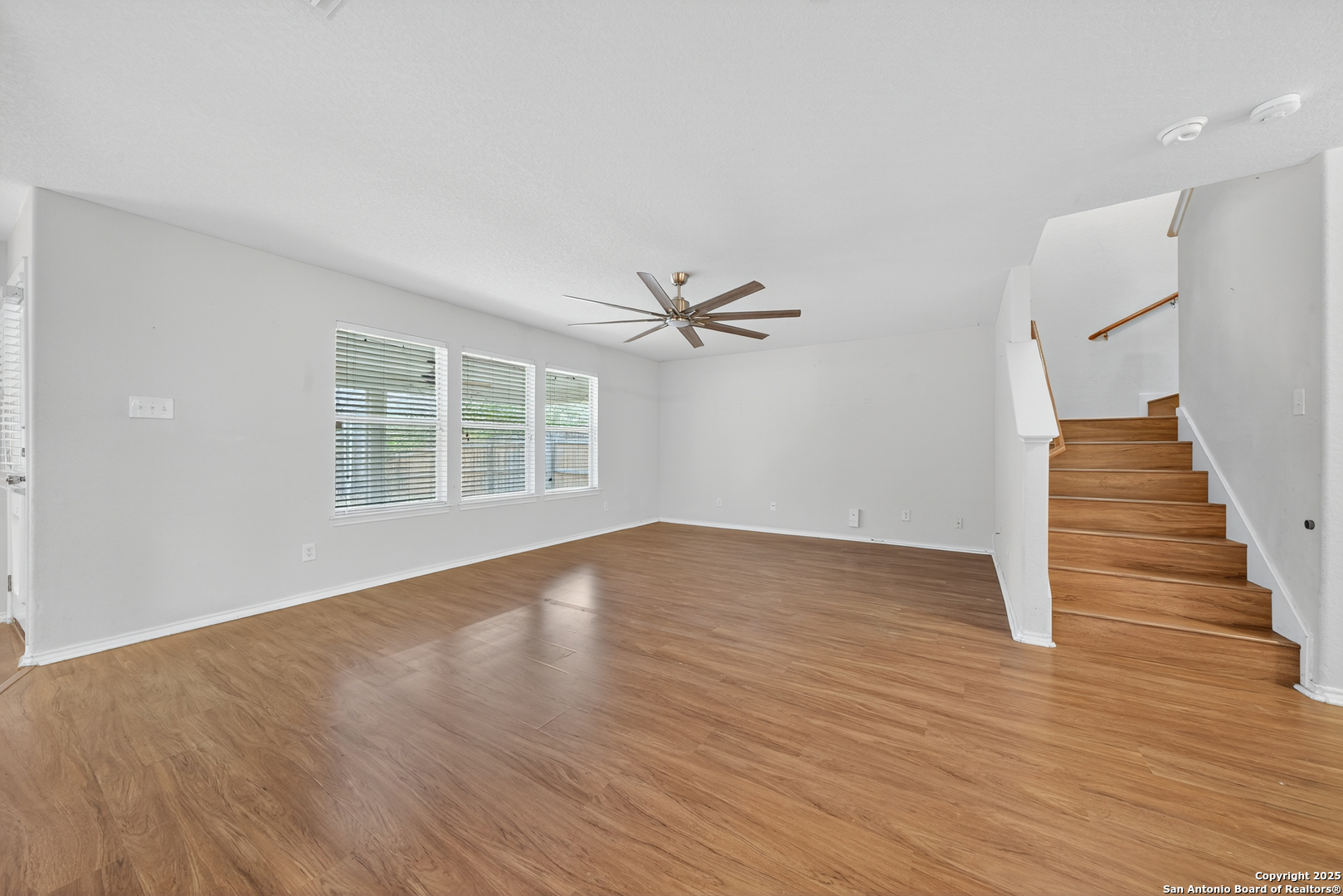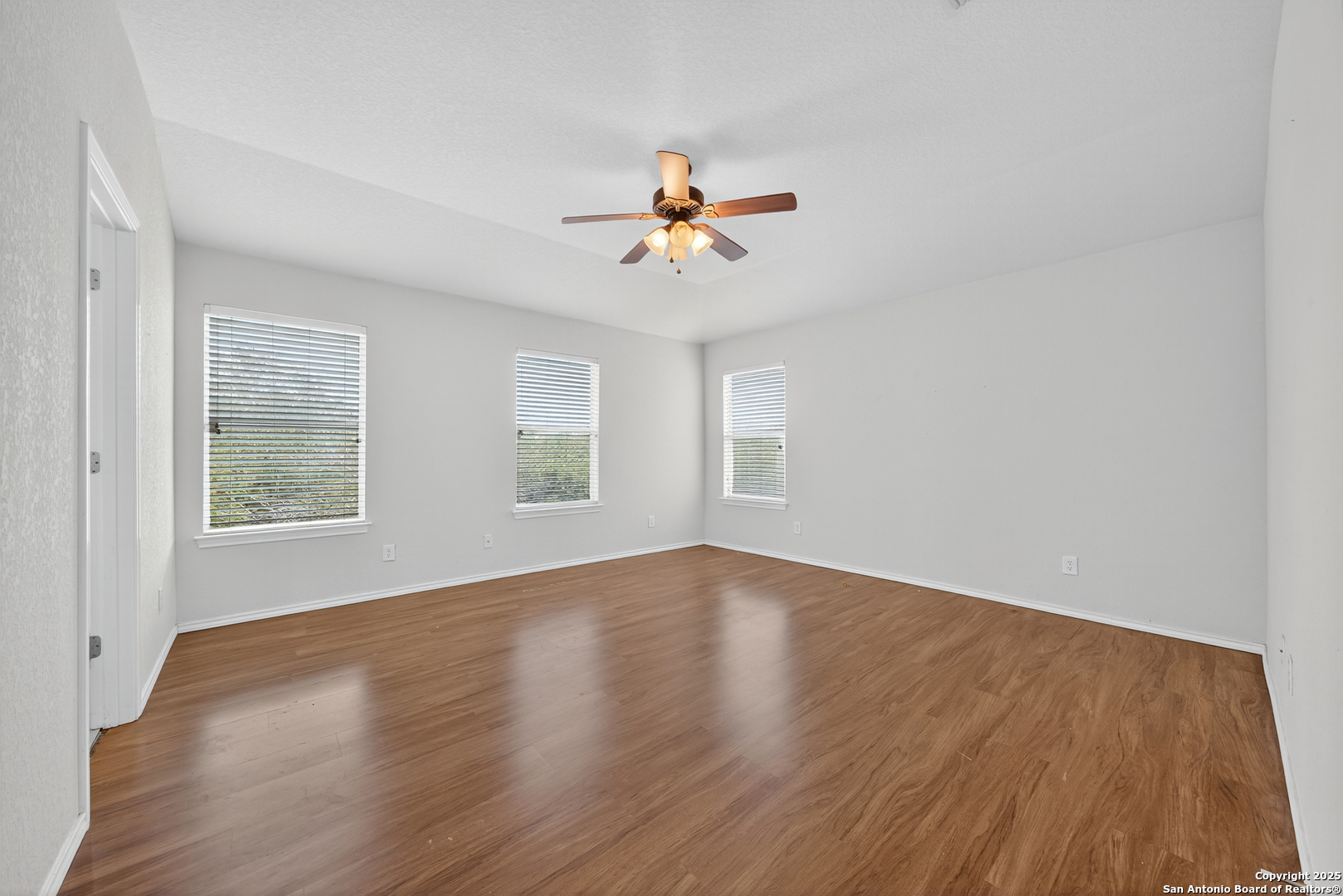 Beautifully updated 4-bedroom home in highly sought-after Laurel Canyon right at the Helotes line! Step into an open, airy layout with wood/laminate flooring throughout-no carpet anywhere. The kitchen features granite counters, stainless steel appliances, and a great breakfast-bar flow into the living area. All bedrooms are privately located upstairs along with a spacious game room perfect for movie nights, kids' space, or a second living area. The primary suite offers a true retreat with a large layout, separate garden tub and walk-in shower, and generous closet space. Out back, relax on the extended covered patio overlooking a peaceful greenbelt-ideal for quiet evenings or weekend BBQs. Neighborhood amenities include a pool, park, playground, covered swings, sand volleyball, basketball court, and community BBQ areas. Plus, you're minutes from Loop 1604, La Cantera, Helotes Marketplace, top dining, shopping, and entertainment. A fantastic Helotes-area find and we believe you will absolutely love it here!