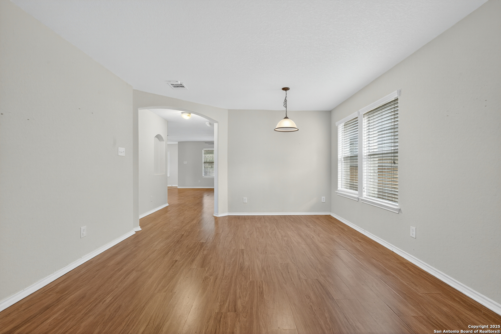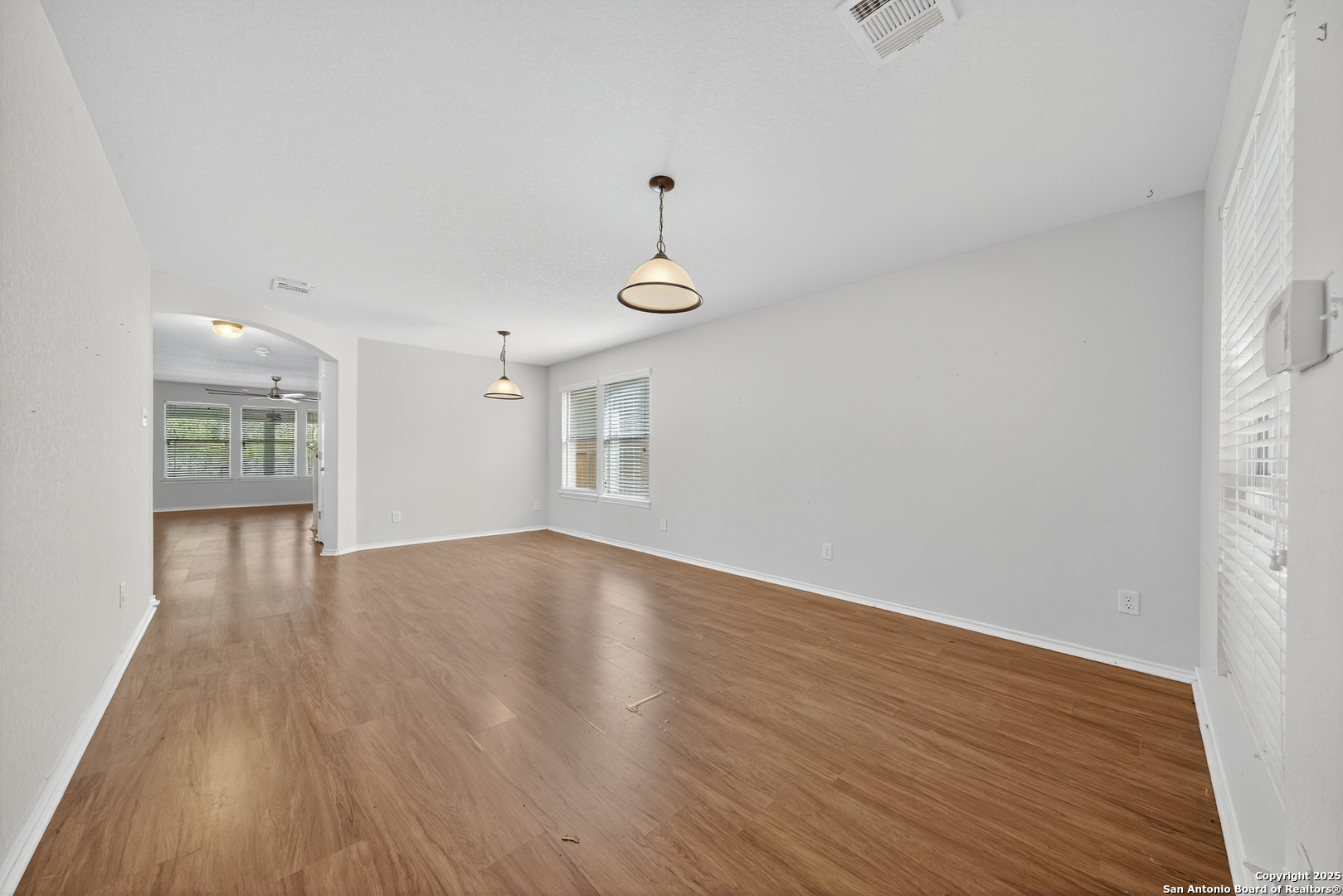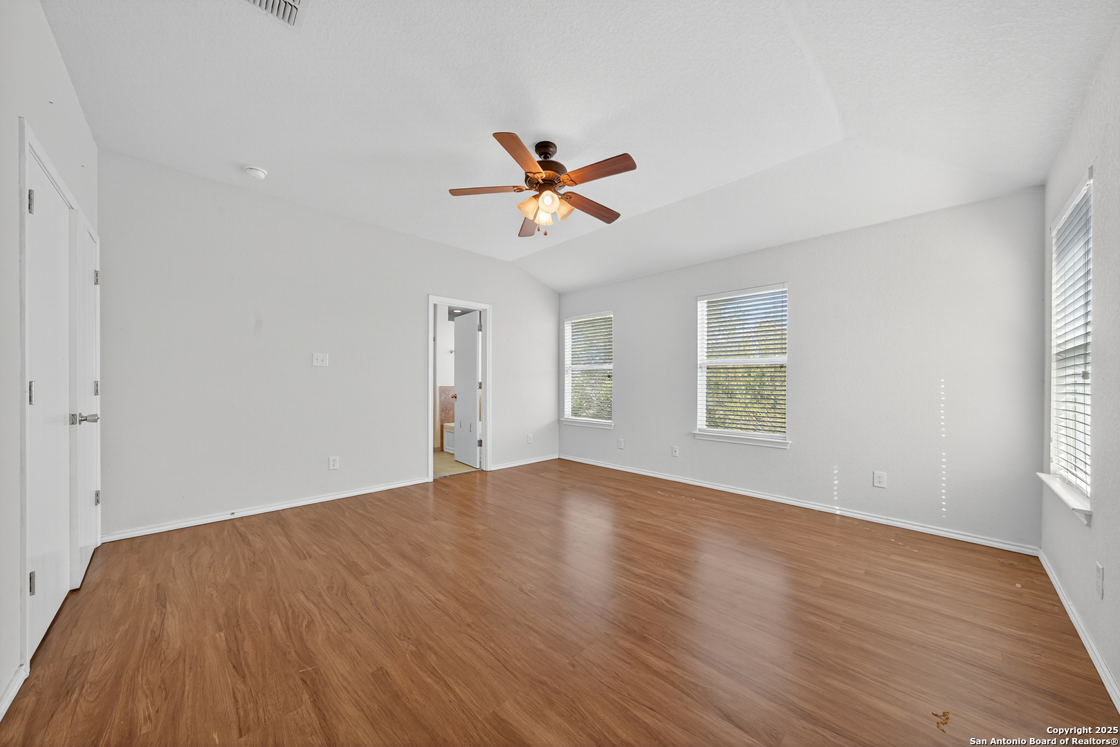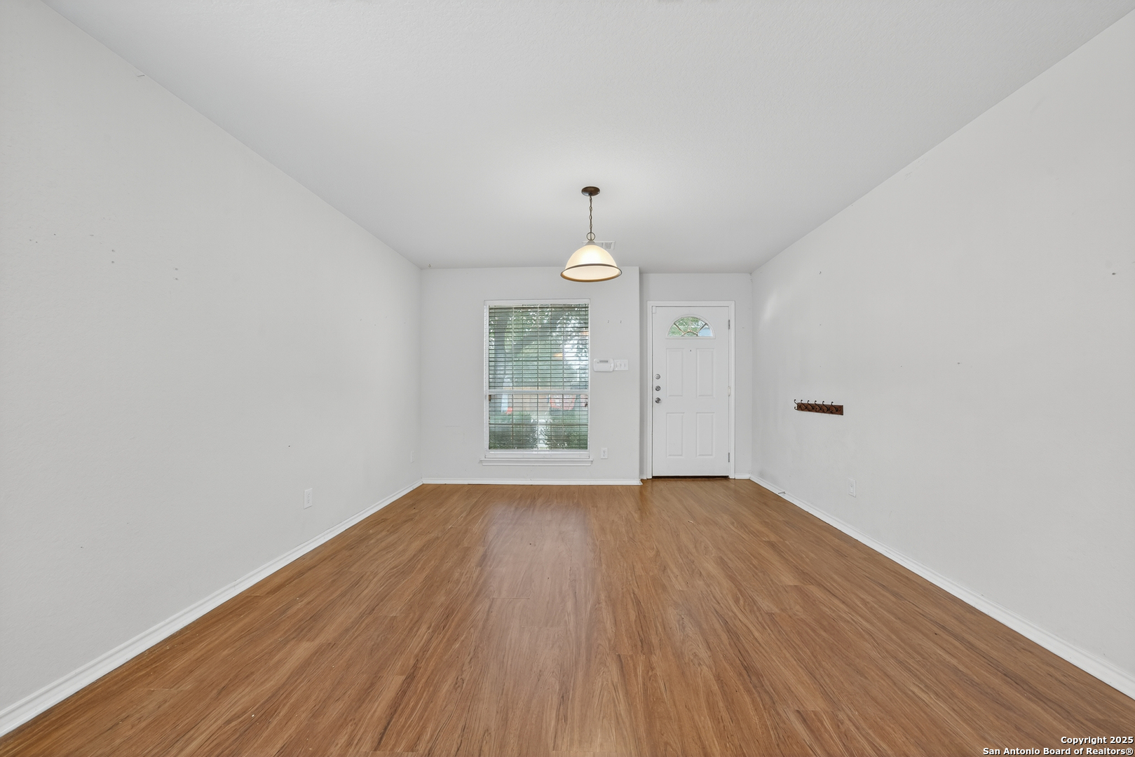 Beautifully updated 4-bedroom home in highly sought-after Laurel Canyon right at the Helotes line! Step into an open, airy layout with wood/laminate flooring throughout-no carpet anywhere. The kitchen features granite counters, stainless steel appliances, and a great breakfast-bar flow into the living area. All bedrooms are privately located upstairs along with a spacious game room perfect for movie nights, kids' space, or a second living area. The primary suite offers a true retreat with a large layout, separate garden tub and walk-in shower, and generous closet space. Out back, relax on the extended covered patio overlooking a peaceful greenbelt-ideal for quiet evenings or weekend BBQs. Neighborhood amenities include a pool, park, playground, covered swings, sand volleyball, basketball court, and community BBQ areas. Plus, you're minutes from Loop 1604, La Cantera, Helotes Marketplace, top dining, shopping, and entertainment. A fantastic Helotes-area find and we believe you will absolutely love it here!